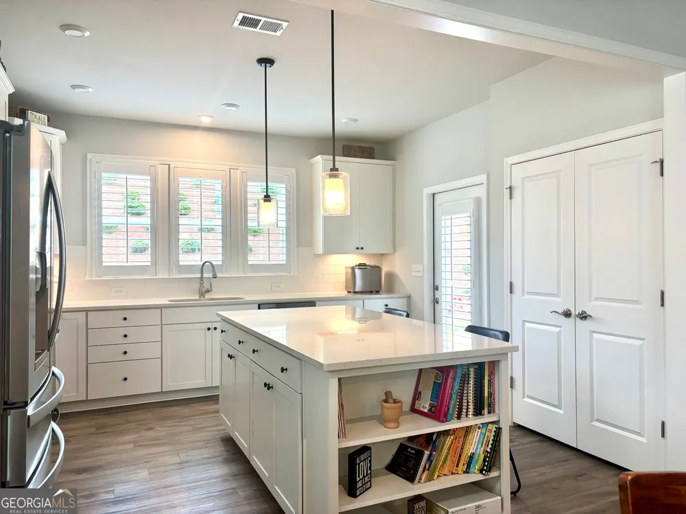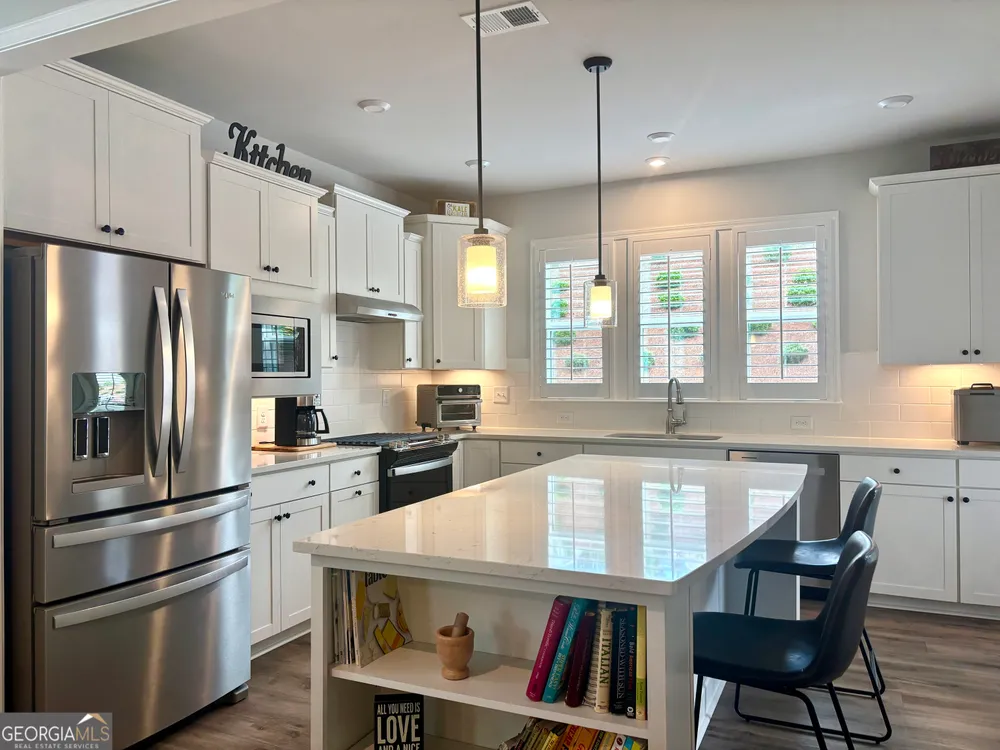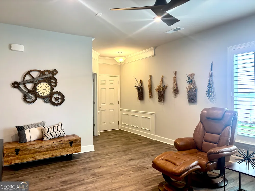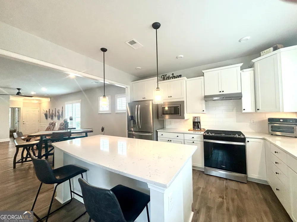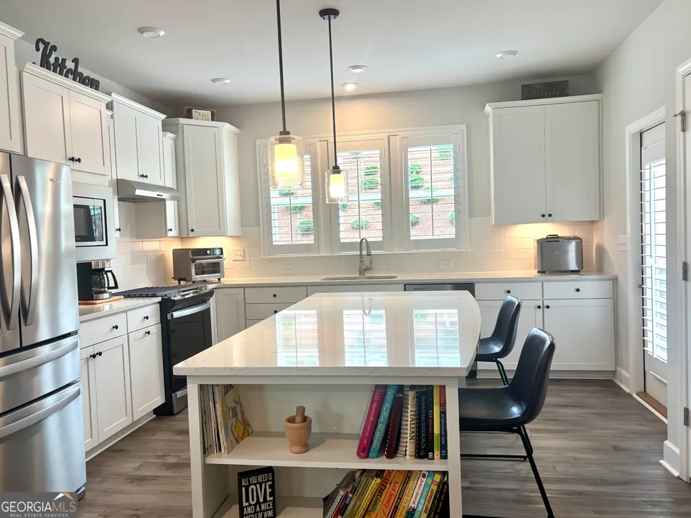 Imagine starting your mornings with coffee on a covered lanai, surrounded by the peaceful setting of one of Georgia's most welcoming 55+ communities. This beautiful 2023 Taft Street home isn't just a house-it's a lifestyle! Step inside and be greeted by an open, airy layout filled with natural light, timeless plantation shutters, and stylish upgraded flooring throughout. The heart of the home is the designer kitchen, where friends and family will naturally gather around the oversized quartz island. With white soft-close cabinetry, roller shelves, and stainless steel appliances, this kitchen is as functional as it is beautiful. Your owner's suite is a true retreat, featuring a tray ceiling, large walk-in closet, and a spa-like tiled shower with bench. There's also a flex office space-perfect for reading, hobbies, or working from home. And it doesn't stop there! The extended garage is a dream for storage and projects with epoxy flooring, custom-built shelving, attic access, and added security features. At Sun City Peachtree, you'll enjoy resort-style living every day-an 18-hole golf course, clubhouse, pools, pickleball, fitness center, walking trails, social clubs, concerts, and more. This is more than a home. It's the active, low-maintenance, fun-filled lifestyle you've been waiting for. Come see why 107 McKay Drive is the perfect place to call home.