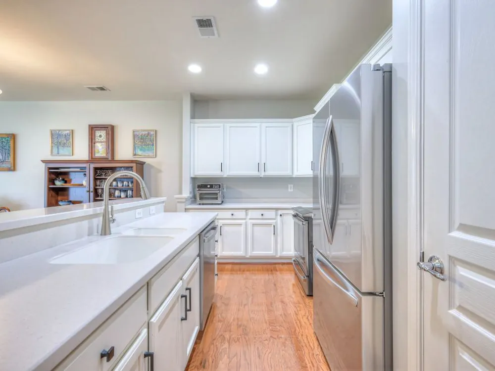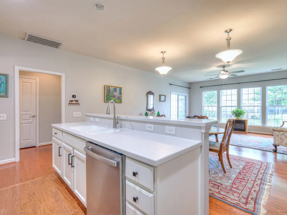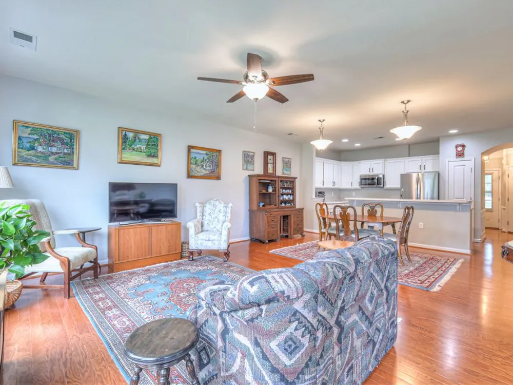 Enjoy the perfect blend of comfort, style, and location in this move-in ready Lakeshore villa, ideally situated directly across from the community lake in the sought-after 55+ Del Webb Lake Providence neighborhood. From your front porch, take in peaceful water views and the convenience of nearby visitor parking. Inside, the open floor plan is filled with natural light and features hardwood flooring in the main living areas. The updated kitchen showcases crisp white cabinetry, a brand-new refrigerator, dishwasher, and stove—ready for your culinary creations. The home has been updated with a 2022 dual-fuel HVAC system for year-round efficiency and comfort, and most of the interior has been freshly painted in a neutral palette to complement any style. Retreat to the spacious primary suite, where the walk-in closet doubles as a FEMA-rated storm shelter for added peace of mind. A new metal pulldown staircase was just installed too! The HOA fee for the Villas includes things like: lawncare, amenities, termite coverage, insurance of the structure, roof replacement, gutter/downspout replacement, exterior painting, and more. Located in one of Mount Juliet’s premier active adult communities, you’ll enjoy resort-style amenities including a clubhouse, indoor/outdoor pools, fitness center, walking trails, and a full calendar of social activities—all just steps from your door.