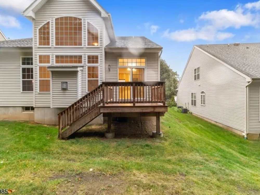 Welcome to this stunning colonial in the sought-after Nolan's Ridge 55+ community, offering 3 bedrooms, 2.5 baths, and one of the largest floor plans in the neighborhood with a welcoming side entrance. Beautifully updated throughout, the home features a dramatic family room with soaring cathedral ceilings and a gas fireplace accented by an elegant white marble hearth.The first-floor primary suite provides a serene retreat with a spacious private bath and soaking tub. Upstairs, a versatile finished loft connects to a large storage room above the garage ideal for hobbies, a home office, or seasonal storage.The poured-concrete basement spans the full footprint of the home and boasts extra-high ceilings, offering endless possibilities for a recreation room, gym, or home theater. Outdoor living is a breeze with a back deck complete with a built-in gas line for grilling.Additional highlights include 2-zone HVAC with humidifier, central vacuum, full-house generator, and a durable 30-year roof. Conveniently located near Route 78 and the train to NYC, this home offers both comfort and accessibility. A perfect blend of style, function, and convenience ready for you to move right in and enjoy.