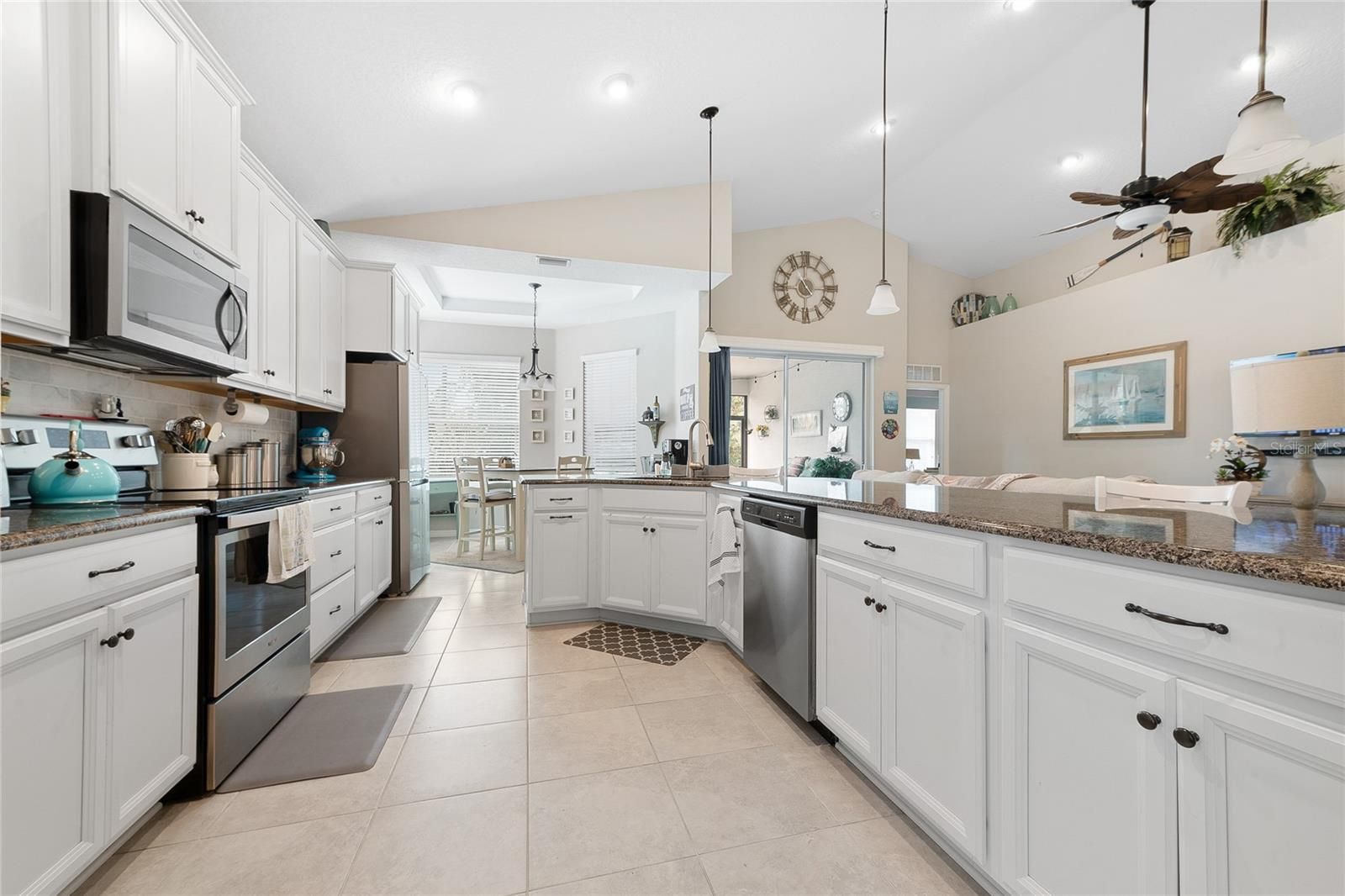 Welcome to Park Place, Palm Coast's premier age-restricted, gated community, Step inside to an inviting open-concept great room that flows seamlessly into a screen-enclosed lanai, perfect for enjoying Florida's year-round outdoor living. The gourmet kitchen is a true standout, featuring 42" Painted linen cabinetry with crown molding, granite countertops, a flat island bartop, stainless steel appliances, dedicated pantry and upgraded storage details. The spacious master suite offers serene retreat with a large bedroom, walk-in closet and a well appointed primary bath with dual vanities and a walk-in shower. The secondary bathroom has been tastefully upgraded with a high-end Jacuzzi tub, custom tile work in the bath area, and strategically placed handrails for added comfort and safety — creating a spa-like retreat designed with both luxury and accessibility in mind. Step outside to enjoy the covered, screened-in lanai — the perfect space for relaxing evenings by the fire pit. An extended pavered patio expands your outdoor living area and overlooks a peaceful, private wooded reserve, offering beautiful natural views and added privacy with no rear neighbors. Located in the heart of Palm Coast, this home combines low-maintenance living with upgraded features and tranquil outdoor space — ideal for enjoying Florida living at its finest.