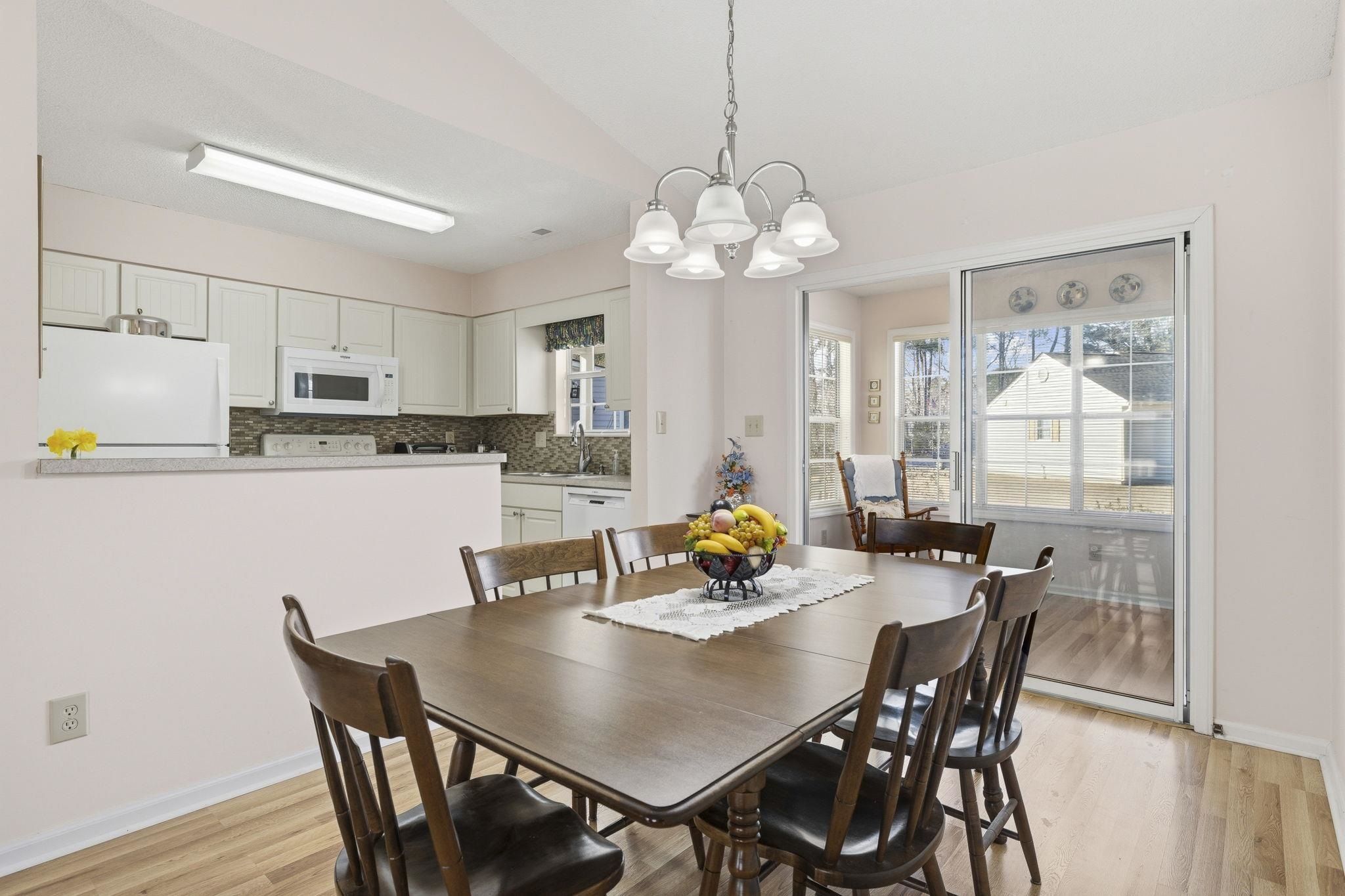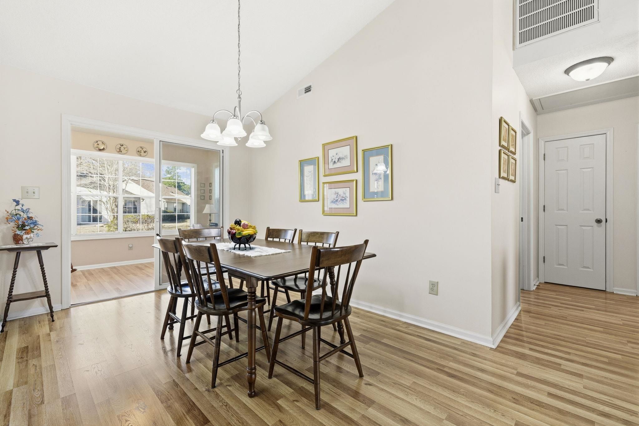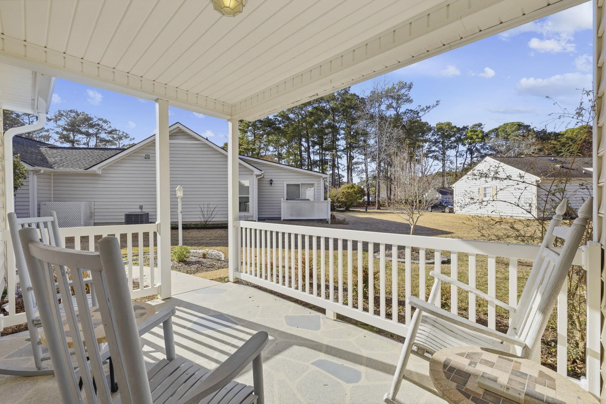A welcoming, low maintenance home perfect for relaxing and socializing in the highly sought after 55+ neighborhood of Woodlake Village in Murrells Inlet. As you enter, you'll notice the beautiful, easy maintenance flooring throughout that offers a seamless flow. An all-seasons sunroom off the dining room is a perfect place to relax with your morning coffee or evening cocktail while enjoying seasonal views all year-round! The master bedroom includes a well-appointed bathroom with an adjoining vanity for extra storage. The second bedroom is ideal for guests, a den or hobby room. The possibilities are endless! A large breakfast bar allows for added storage and prep space, and all kitchen appliances are being sold with the home. Amenities include a pickleball court, clubhouse, community pool, library, shuffleboard and endless social activities for all to enjoy! Ideally located just minutes to the beach, shopping, the Marsh Walk, Garden City Pier, dining and so much more!