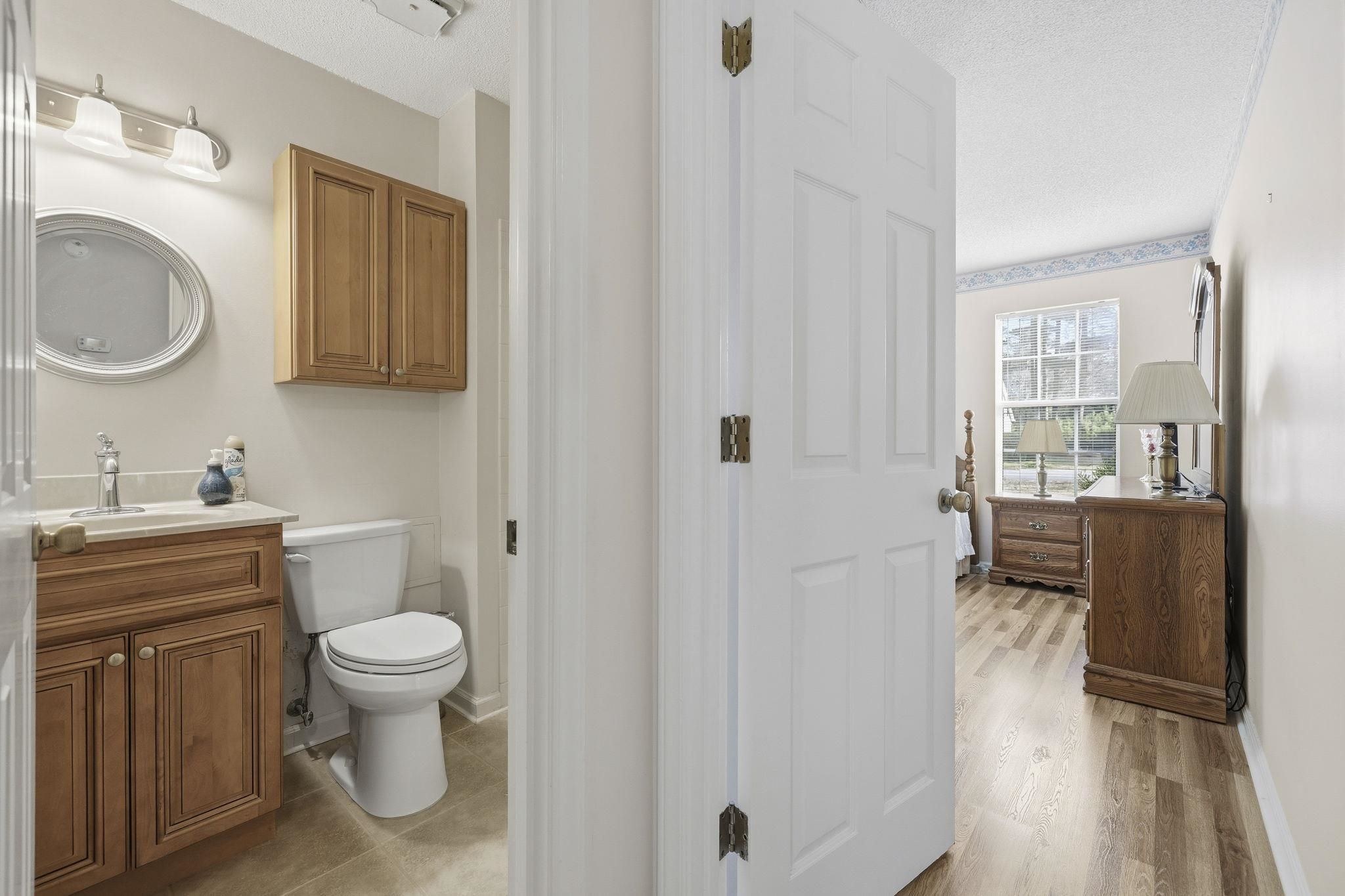 - Main Level Primary, Tub Shower, Vanity, Walk-In Closet(s), Window Treatments, Bedroom on Main Level, Solid Surface Counters