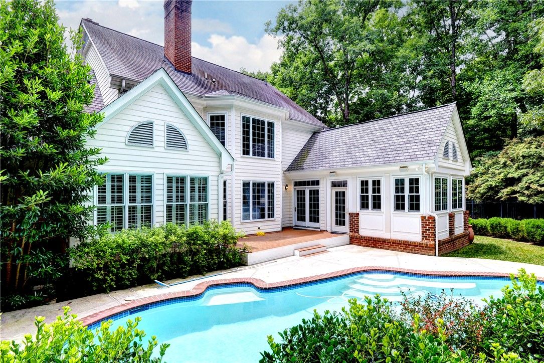 WOW! THE BEST VALUE IN FORD’S COLONY! Stunning and spacious, this beautifully maintained five bedroom, five full/two half-bath home by Anthony DeRose offers 5,443 sq ft of flexible living space, including a theater room, guest suite with kitchenette, sunroom and in-ground pool. The cathedral-ceiling great room features a Juliet balcony, built-ins and gas fireplace. The chef’s kitchen includes a Sub-Zero fridge, gas range, wall oven and center island with prep sink. The breakfast area opens to a bright sunroom with brick flooring and beadboard ceiling. Wainscoting accents the dining room, and a separate living room adds charm. The first-floor primary suite offers a tray ceiling, backyard access and large walk-in closet. Upstairs, two bedrooms share a Jack & Jill bath, while another has an en suite. A back staircase leads to a private bonus suite with kitchenette and bath. The lower level includes a media room, flex rooms and full bath. Outdoors, enjoy the Anthony & Sylvan pool surrounded by mature trees. Upgrades include a 2019 generator, hardwood floors, plantation shutters, central vacuum, newer HVAC and abundant storage.