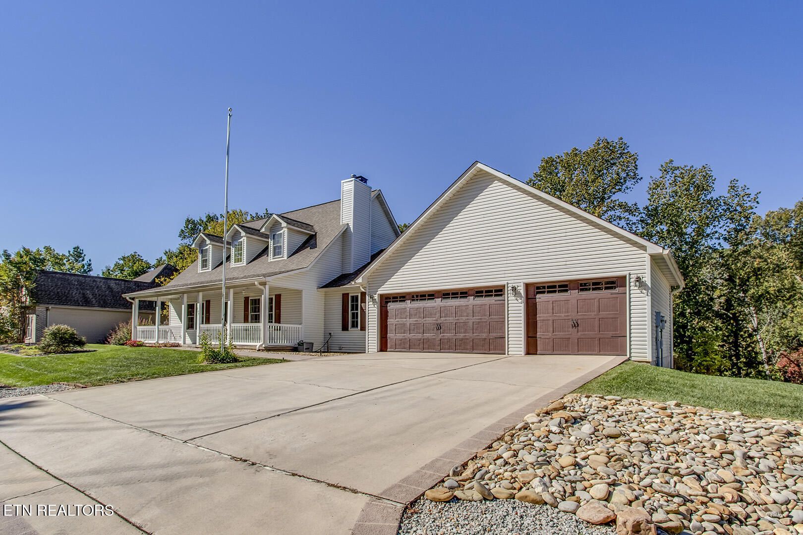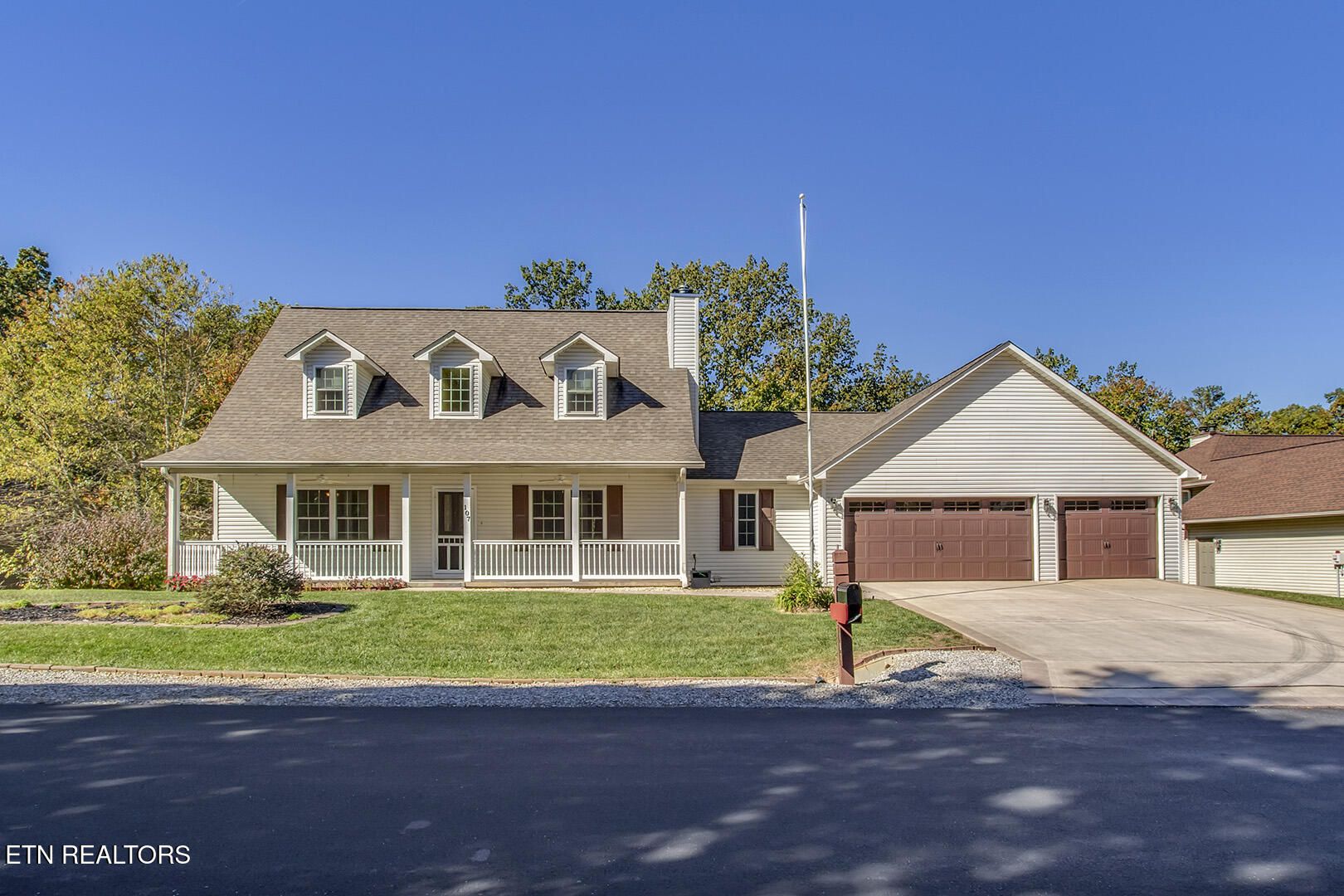Welcome to 107 Skiatook Way! Nestled at the North End of Tellico Village, this well-maintained home offers a perfect blend of comfort, style, and natural beauty. With 4 bedrooms, 2.1 bathrooms, and an unfinished basement, the residence provides ample space for living and entertaining. You'll appreciate the privacy and serene wooded views, offering opportunities to observe local wildlife right outside your back door. Upon entering, you'll find a welcoming living room featuring a cozy gas fireplace, perfect for relaxation or gatherings. The kitchen is equipped with granite countertops and a pantry closet. The large dining room area offers beautiful views of the surrounding woods, creating a peaceful setting for meals. The generously sized master bedroom, conveniently situated on the main level, includes a substantial walk-in closet and a private master bathroom. An additional guest bedroom is also located on the main level, perfect for visitors or family. For added convenience, both the laundry room and the powder room are located on the main level. One of the highlights of this home is the enormous screened porch, ideal for relaxing while taking in the wooded views. The upper level consists of two additional guest bedrooms that provide plenty of space for family or visitors, a full bathroom, walk-in cedar closet, and a den or study which is a versatile space suitable for work, reading, or hobbies. The unfinished basement is plumbed for a full bathroom and features a workshop, a mechanical room with a tankless water heater, abundant storage, and a covered patio. The 3-car garage includes built-in cabinetry for additional storage and an epoxy floor for easy maintenance. The professionally maintained lawn is equipped with an irrigation system and filled with beautiful perennials.