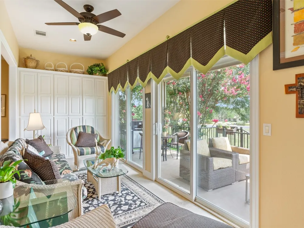 This lovely, impeccably maintained Coronado welcomes you home with grace and elegance. Greeted by elegant landscaping and a cozy front porch, the leaded glass door opens into a stunning octagonal entry that sets the stage for what lies beyond. With 4 bedrooms, this home offers a place for everything and everyone. Need an office...check! Need a hobby room...check! Need an extra bedroom...check! The gourmet kitchen is a cooks dream fully equipped with built-in oven and cooktop, microwave, dishwasher, prep island, and a breakfast bar. Being open the great room, the cook never has to feel alone or isolated from gatherings with family and friends. The cozy breakfast room has a bay window giving way to the expansive green area beyond. Sit and relax in the sunroom while enjoying your morning coffee in the comfort of controlled temperature or enjoy a good book in the great room in front of the fireplace on a chilly evening. The large primary bedroom offers ample space for a king-sized bed and all the accompaniments while the primary bathroom offers dual vanities and the perfect dressing area. Conveniently located near Cowan Creek amenity center and golf course, leisure and exercise are just a short golf cart ride away. Roof 2021. Water heater 2024. HVAC service contract. Coated driveway.