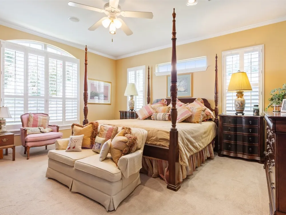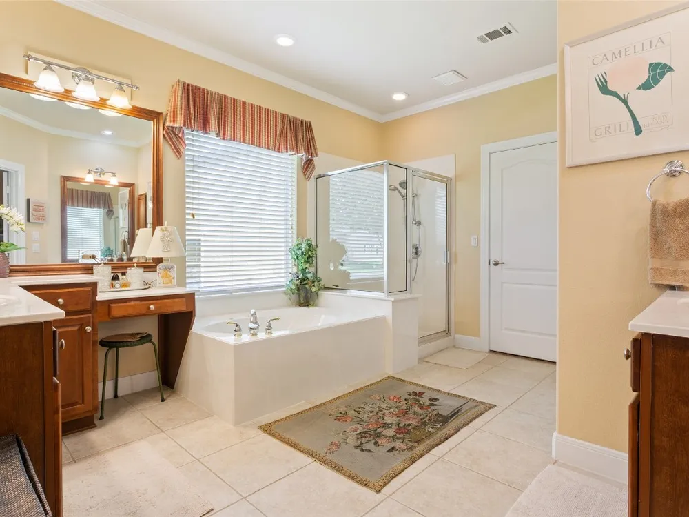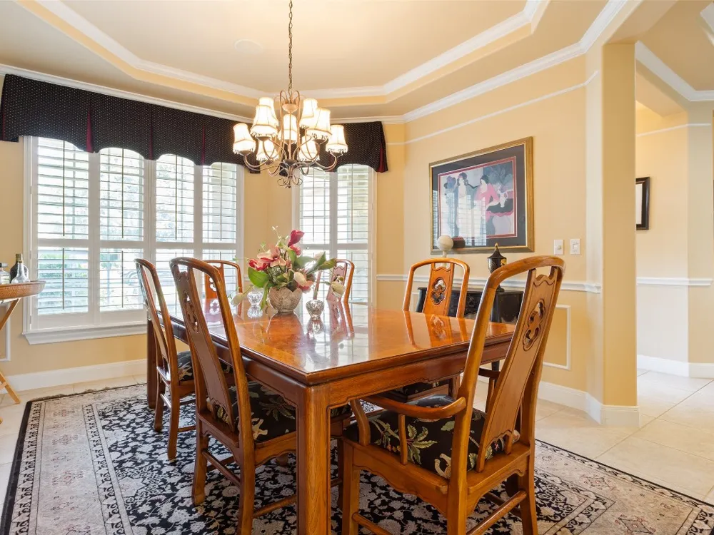 - Breakfast Bar, Built-in Features, Tray Ceiling(s), Ceiling Fan(s), Crown Molding, Separate/Formal Dining Room, Double Vanity, Entrance Foyer, Eat-in Kitchen, Granite Counters, High Ceilings, Kitchen Island, Multiple Dining Areas, Main Level Primary, Pantry, Storage, Soaking Tub, Bar, Walk-In Closet(s), High Speed Internet