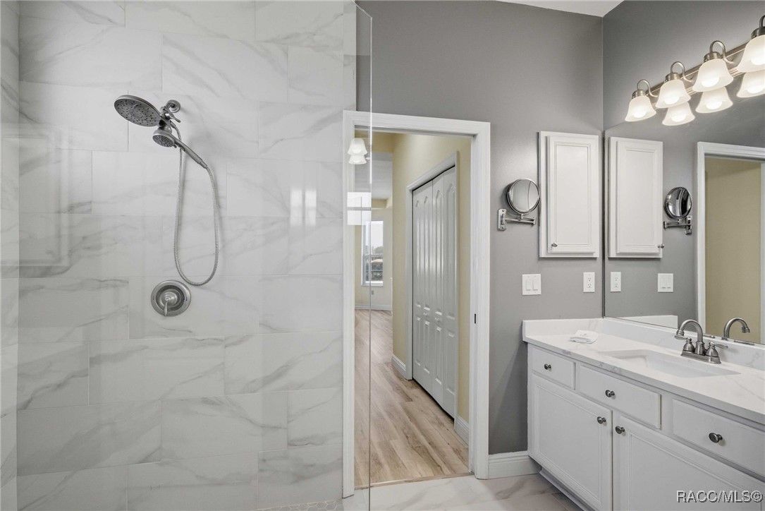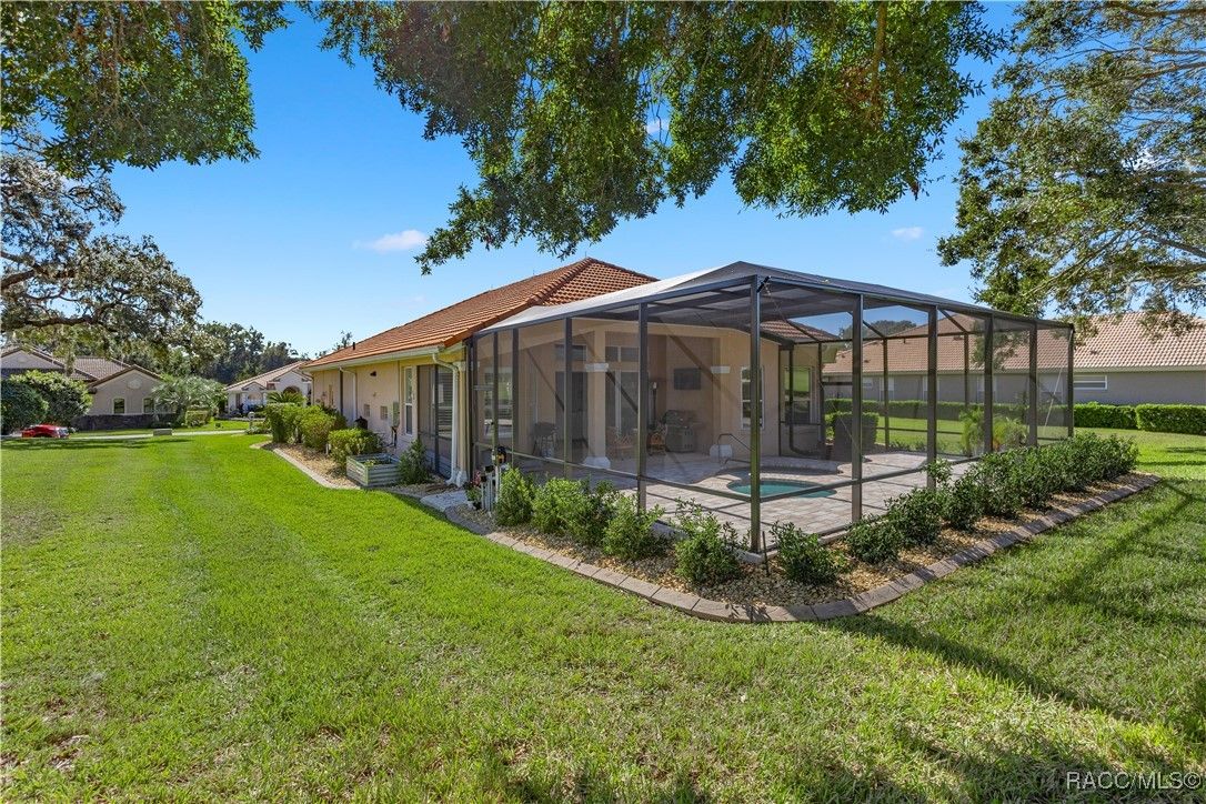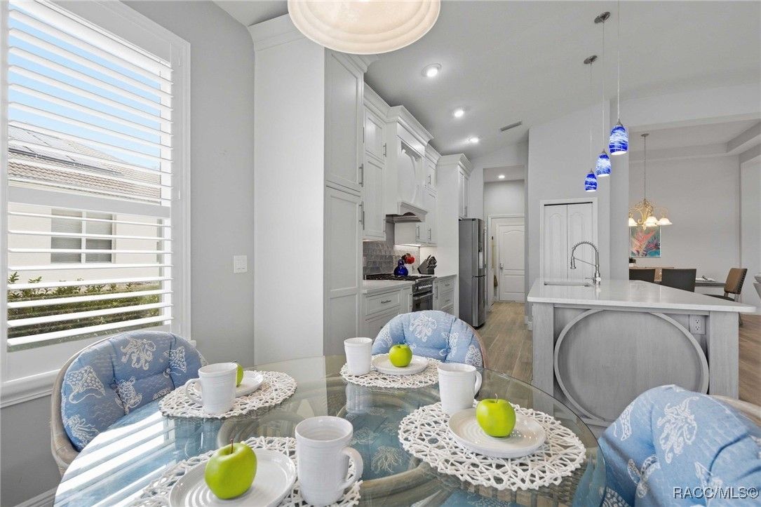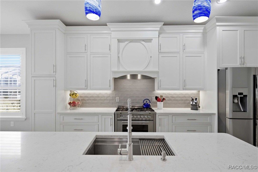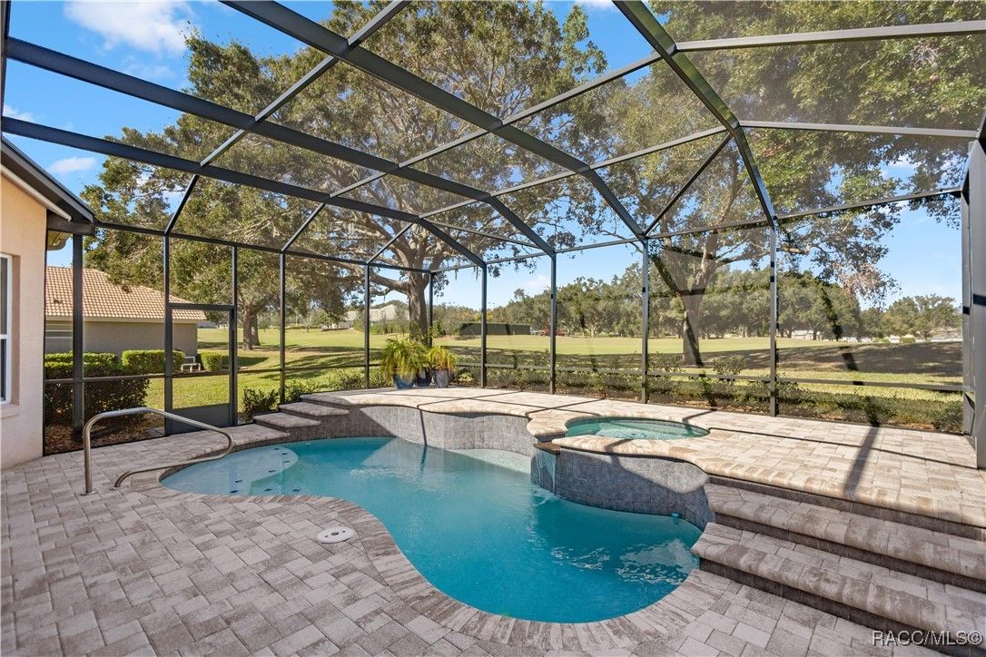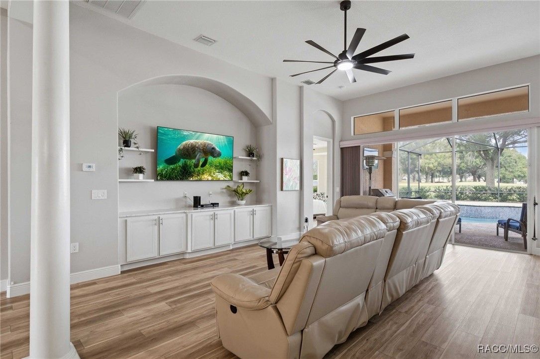 Amazing value-don't miss this opportunity, as you truly can't build this home for this price! Welcome to this beautifully updated 3-bedroom, 2-bath home located on the Skyview Golf Course in the amenity-rich community of Terra Vista. From the moment you arrive, you'll appreciate the concrete landscape curbing that surrounds the entire property and the pride of ownership throughout. Inside, the home shines with a stunning gourmet kitchen renovated with custom soft-close cabinetry, quartz countertops, stainless-steel appliances, a coffee/beverage bar, and a convenient microwave drawer-perfect for entertaining or everyday living. The kitchen and family room feature luxury vinyl plank flooring, while 24x24 porcelain tile enhances the entryway, hallway, and guest bath. Plantation shutters and custom blinds add timeless style to the kitchen and family room. The spacious primary suite offers a spa-like retreat with a newly renovated walk-in shower, dual sinks, and updated finishes. Both the guest bath and master bath have been beautifully updated, and all bedrooms feature fresh paint, LVP flooring, and new 6 inch baseboards. Additional improvements include new ceiling fans throughout, a newer Carrier HVAC system (2021), and freshly painted interior spaces. Step outside to your private backyard oasis featuring a remote-controlled, gas heated pool and spa with a sun shelf, waterfall, and lighting effects-ideal for relaxing while watching golfers pass by. The tile roof was soft washed in 2022, offering peace of mind. Enjoy Terra Vista's resort-style living with world-class amenities including golf, pickleball, tennis, fitness center, spa, sauna, restaurants, trails, and social activities year-round. Citrus County truly is Mother Nature's Playground with nearby biking, hiking, kayaking, boating, fishing, snorkeling, cave diving, and even swimming with the manatees-all while still being close to larger cities. This home offers comfort, style, and an unbeatable lifestyle. Schedule your private showing today!