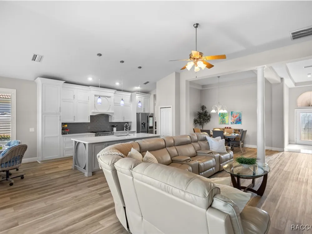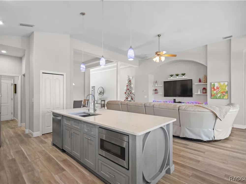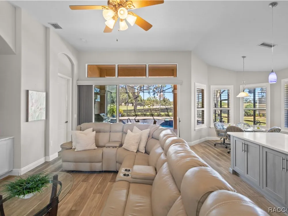 Amazing Savings - Don't Miss It - You cannot build it for this Price! Brand New Kitchen and Bath! Love owning a beautiful golf course Pool Home with a Spectacular Gourmet Kitchen in amenity rich community of Terra Vista, this home is what you are looking for WITH A NEW MASTER SHOWER and NEW GRANITE COUNTERTOPS IN THE MASTERBATH! At 123 ft above sea level, sitting on the gorgeous Skyview Golf Course, while relaxing in your gas heated Pool and Spa as you watch the golfers go by, what could be better! Pool has sun shelf, has lighting effects, both are remote controlled for ease of use. Walk up and see the new perimeter concrete landscape curbing surrounding this home with river rock and beautiful landscaping enhances your view. Roof was soft washed in 2022. Enter into the home and see the newly renovated guest baths, the custom-made plantation shutters and blinds in the kitchen and family room. Walk on the beautiful LVP flooring and soft carpet in the bedrooms. The kitchen is completely renovated with custom cabinetry, soft close drawers and doors. Quartz flush countertops enhance the cooking experience, as do the stainless-steel appliances: High end Refrigerator, dishwasher microwave drawer and dual fuel 36" gas range/oven. Butler Bar has drink refrigerator and coffee bar Quartz top. Porcelain tiles 24 x 24 are in the entryway, hallway, and guest bath. The HVAC system was updated in 2021. This home feels beautiful, and light when you walk in with everything you need functionally in the right place. What could be better, making friends in Citrus Hills as you play pickleball, golf, tennis, bacci or dancing at the Tiki Bar, dining at the restaurants, cycling by trees and gardens. Enjoying the Spa and Fitness Center, Sauna and Steam Room. How about the great shows, clubs and events througout the year...it all here in Citrus Hills.