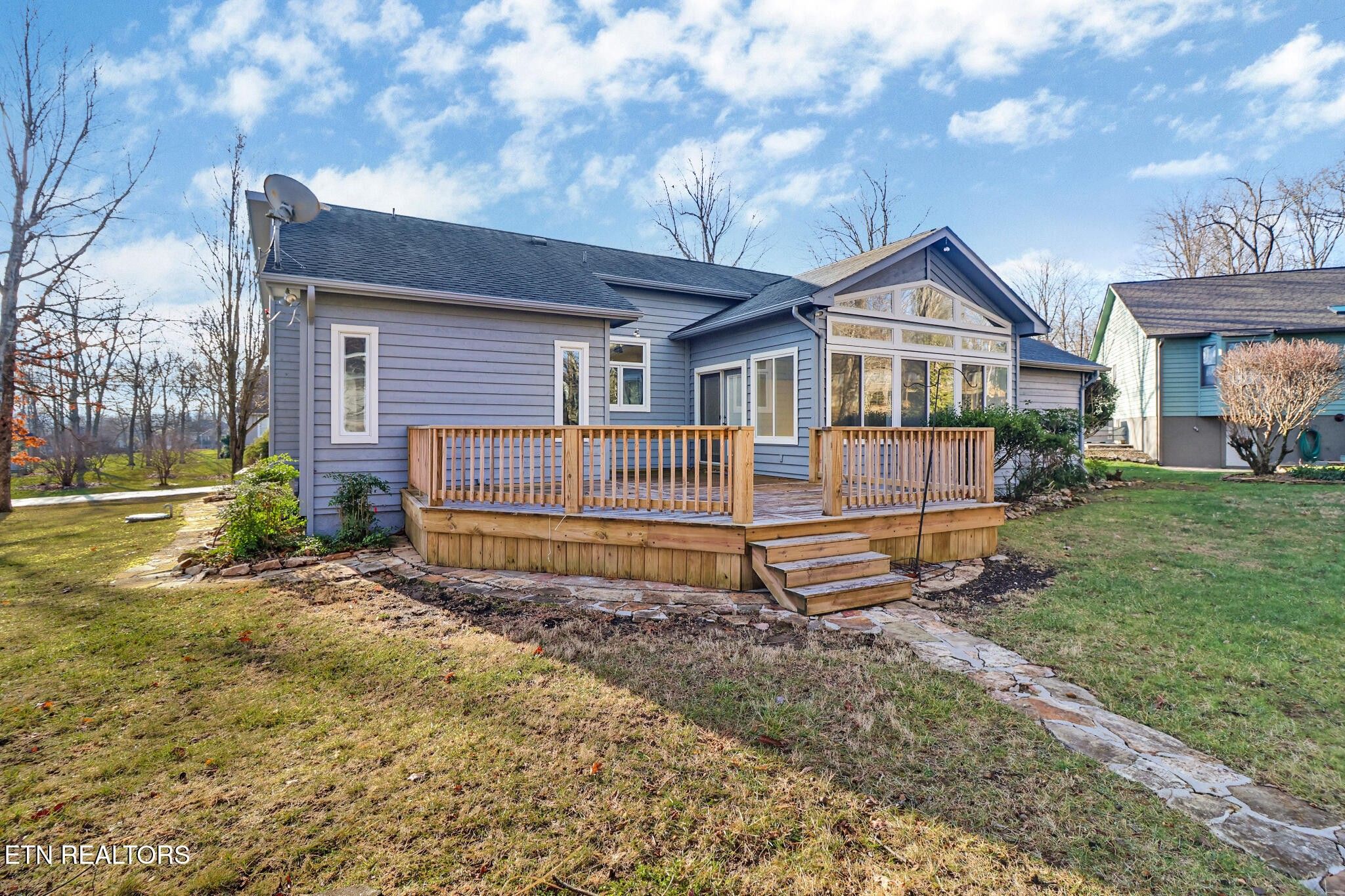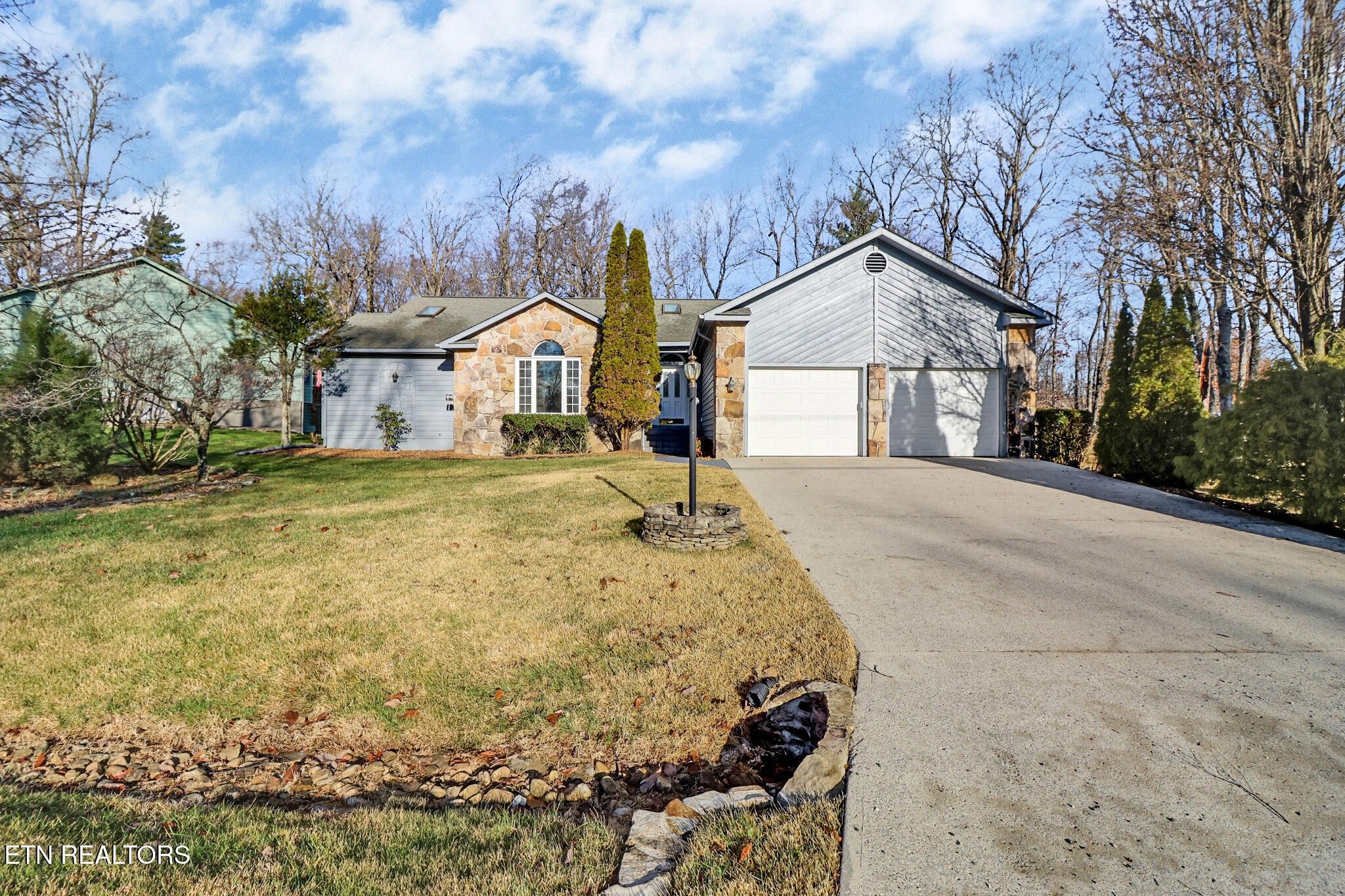 Beautifully updated and move-in ready, this 2,055 sq ft home is ideally located just minutes from Fairfield Glade's championship-quality Stonehenge Golf Course and Restaurant. Situated on a desirable double lot, the home offers privacy, space, and exceptional curb appeal. Inside, you'll find 13-foot ceilings, a spacious open layout, and a stunning fireplace anchoring the main living area. The home features 3 bedrooms, including a luxurious primary suite with a spa-like master bath and his-and-hers walk-in closets. A dedicated office area, sunroom, and wet bar with sink provide flexible spaces for work, entertaining, or relaxation. Recent upgrades include professional interior and exterior paint, new flooring throughout, a newer roof, and quality finishes such as granite surfaces. Step outside to a large deck perfect for enjoying the peaceful surroundings. An oversized garage offers ample storage and workspace complete with additional sink. HVAC has been recently serviced for peace of mind. Propane gas is on site. This home combines modern updates, generous living space, and one of Fairfield Glade's most sought-after locations. *Buyer to verify all information before making an informed offer.*