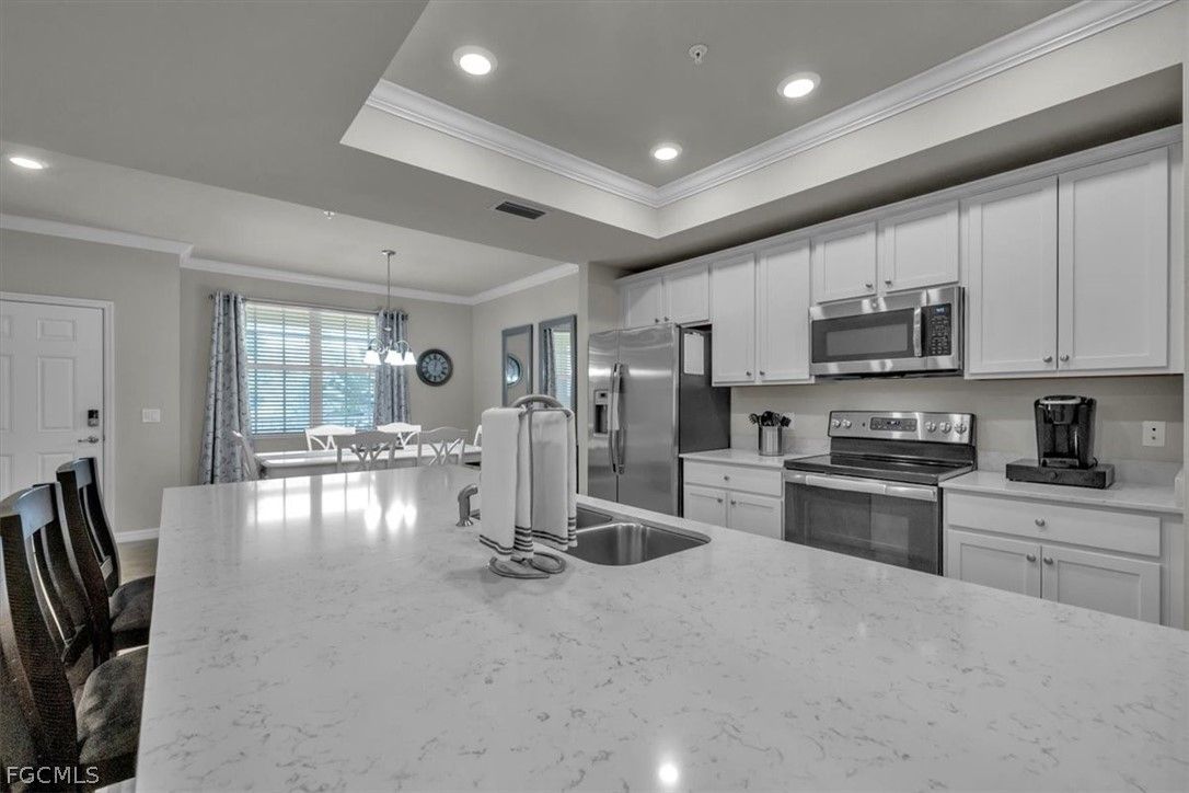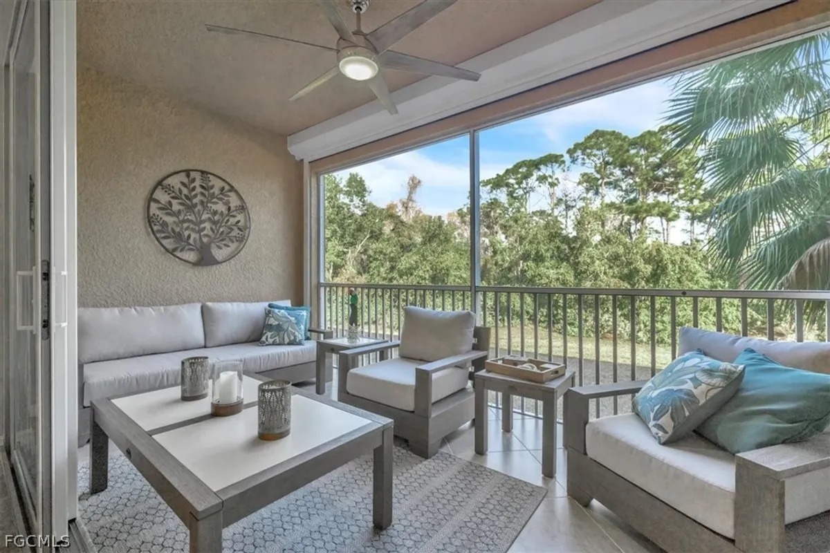 Welcome to easy Florida living in this spacious 2-bedroom, 2-bath condo located in the highly sought-after Pelican Preserve in Fort Myers. Thoughtfully designed with an open floor plan, the home is filled with natural light and finished in timeless light gray and white tones that create a bright, airy feel throughout. The main living areas feature tile laid on the diagonal, adding both style and flow, while the oversized kitchen island makes the heart of the home perfect for entertaining or casual gatherings. Step out onto the screened balcony and unwind with peaceful preserve views—your own private, serene backdrop. The generous owner’s suite offers a tray ceiling and plenty of space to relax, complemented by a well-appointed en-suite bath. This condo is being sold turnkey, with just a couple of exclusions, making it ideal for a seamless move-in or seasonal retreat. A golf cart is available for purchase separately, adding even more convenience to the Pelican Preserve lifestyle. Comfortable, elegant, and move-in ready—this is resort-style living at its best. Pelican Preserve is rated in the top 10 in the United States for 55+ living!
