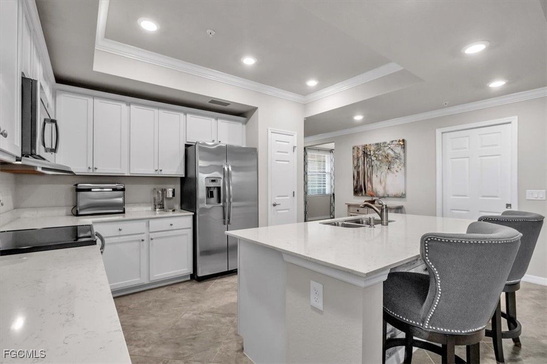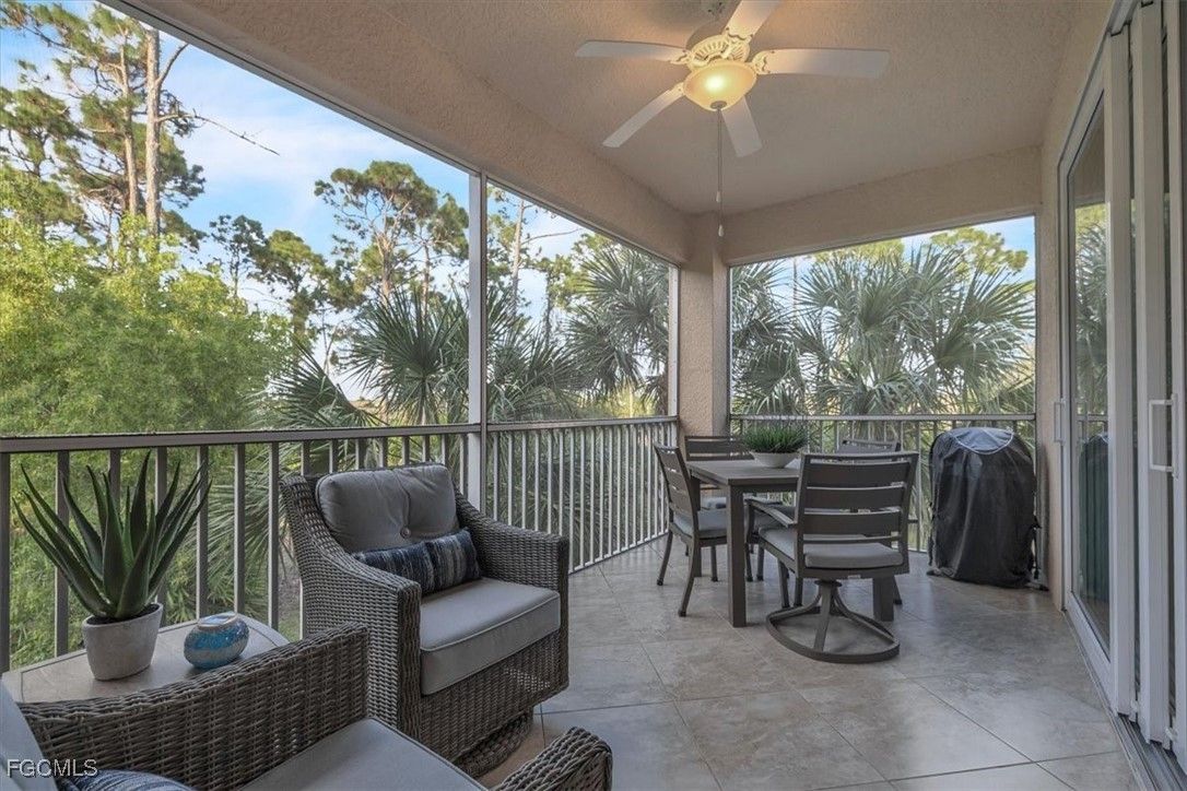 Price Improvement!! Discover comfort, privacy, and effortless Florida living in this beautifully appointed TURNKEY condo located in the highly sought-after 55+ community of Pelican Preserve. This meticulously maintained end-unit home offers exceptional tranquility, gorgeous décor, and a peaceful wooded backdrop that creates a true sense of retreat. Featuring 2 bedrooms, 2 baths, plus a versatile third room that can function as a dining room, home office, craft room, or extra guest space, this condo will fit your lifestyle. As you step inside, you’ll immediately appreciate the thoughtful design and upscale furnishings—each room is beautifully decorated with high-end pieces, providing a luxurious and move-in-ready experience. There is crown molding throughout, in addition to tray ceilings. The spacious primary suite is a standout feature, offering a large master bath, generous vanity space, and an expansive walk-in closet. The split-bedroom layout ensures comfort and privacy for both residents and guests. Every area of this home has been meticulously taken care of, reflecting true pride of ownership. One of the biggest highlights is the serene, wooded view just outside your windows—creating a quiet, nature-filled backdrop perfect for morning coffee, evening relaxation, or simply enjoying Florida’s peaceful beauty. As an end unit, you’ll appreciate additional natural light, enhanced privacy, and a quieter living environment overall. This impressive condo is being sold turnkey, making it effortless to settle in and start enjoying the Pelican Preserve lifestyle from day one. With its immaculate condition, premium décor, and ideal location, this home truly will not last. Pelican Preserve is a state-of-the-art, active 55+ community designed for those who want to enjoy an exceptional blend of recreation, wellness, and social connection. At the heart of the community is its expansive Town Center, where residents can enjoy three sparkling resort-style pools, a fully equipped fitness center, and a variety of sports courts including tennis, pickleball, bocce, and softball. Dining options are plentiful, featuring Destination’s Restaurant for relaxed indoor dining and Flip-Flops Poolside Grill for casual fare in the sunshine. Entertainment is woven into the community’s lifestyle with a private movie theater, billiards room, multiple card rooms, and an inviting coffee center, along with hobby studios dedicated to woodworking, ceramics, painting, sewing, and more. The outdoor amphitheater hosts live music and special events throughout the year, adding to the vibrant, welcoming atmosphere that Pelican Preserve is known for. For golf enthusiasts, optional private memberships are available for the beautifully designed 27-hole championship golf course. With its unmatched amenities and nationally recognized lifestyle offerings, Pelican Preserve provides an exceptional environment where every day feels like a vacation. You will love it here!