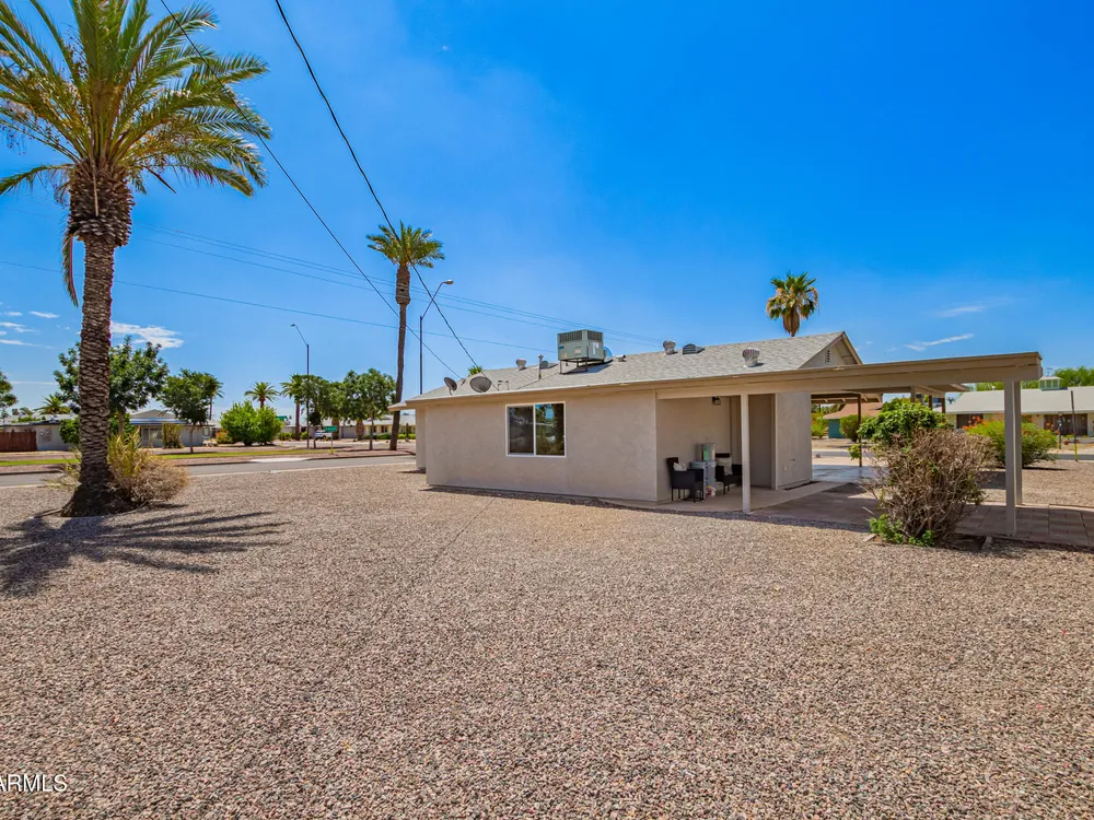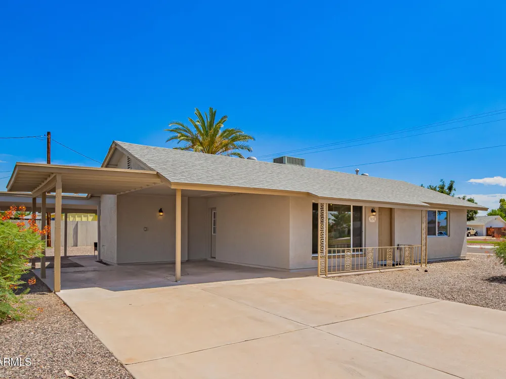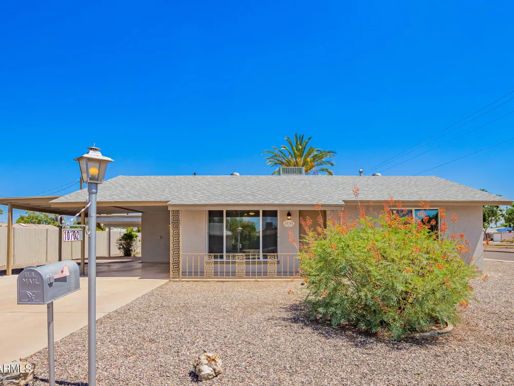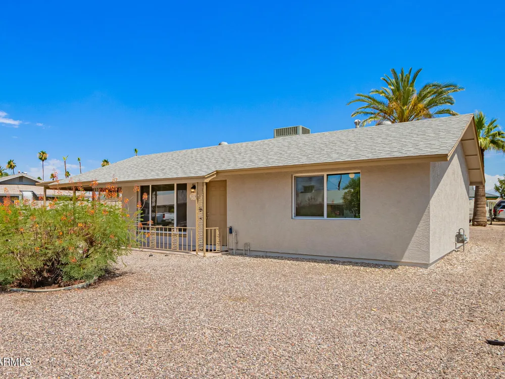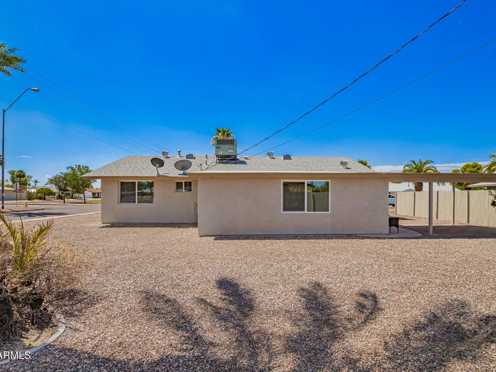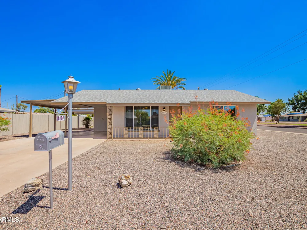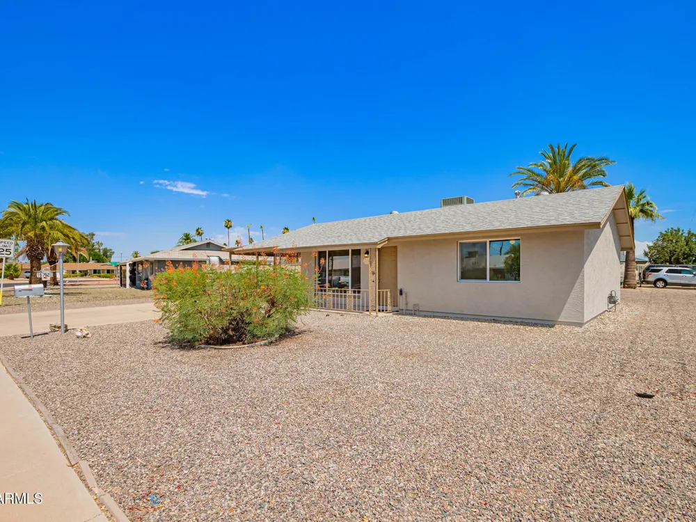Make yourself at home in this Turn-key, remodeled beauty & corner lot. You're welcomed by light that shines through the new windows into a spacious & inviting kitchen with a breakfast bar. New white 42'' shaker cabinets wrap around into a storage/ pantry area & are topped off with a quartz countertop. Enjoy semi-new stainless kitchen appliances including a brand new range hood & an indoor laundry with a stackable washer/ dryer. Remodeled baths have a walk-in tile shower in one & tub in other. Both with glass doors, new toilets, vanities, & mirrors. Also enjoy new tile & carpet flooring. New int. & ext. paint, stucco ext. & so much more. Sun CIty offers great amenities & activities for all, just a short drive to the rec center, library, golf courses, shopping centers, & Starbucks!