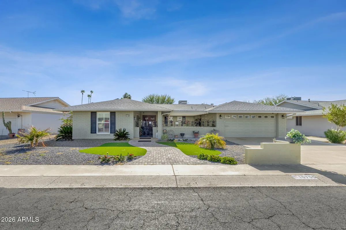 High-End Upgrades Meets Energy Efficiency in Sun City. Welcome to a home that balances modern luxury with incredible cost savings. This meticulously maintained, single-story residence stands out not only for its beauty but for its nearly paid-off solar system, resulting in average electricity bills of only $5 per month. Sophisticated Interior & Custom Finishes. Pass through the elegant double-door entry, accented by additional custom windows to find a home filled with light and premium upgrades: Chef's Kitchen: updated, featuring solid-surface countertops. Designer Bath: Enjoy a fully upgraded bathroom featuring custom tile work. Versatile Layout: A unique floor plan offering separate living and leisure rooms, an interior courtyard-style entry, and a dedicated utility room. Comfort & Storage: Ample closet space throughout and an attached 2-car garage with built-in storage. Year-Round Outdoor Living; The exterior of this home is a masterclass in desert living. Professionally landscaped and designed for relaxation, the outdoor spaces include Arizona Sunroom: A fully enclosed space to enjoy the views in climate-controlled comfort. Custom Pergolas: Beautiful architectural pergolas in both the front and back yards for shaded lounging. Bonus Features: A custom screen door for seasonal breezes and a covered rear lanai. The Heart of Sun City located in a premier age-restricted community, you are perfectly positioned for an active lifestyle: Recreation: Within 1 mile of Sun City Recreation Centers, the Sun Bowl Amphitheatre, and Grandview Golf Course. Shopping & Dining: Just minutes (1.1 mi) from Sun City Plaza and the popular Bell Road corridor. Ease of Access: Quick proximity to major surface streets for easy travel across the West Valley.
