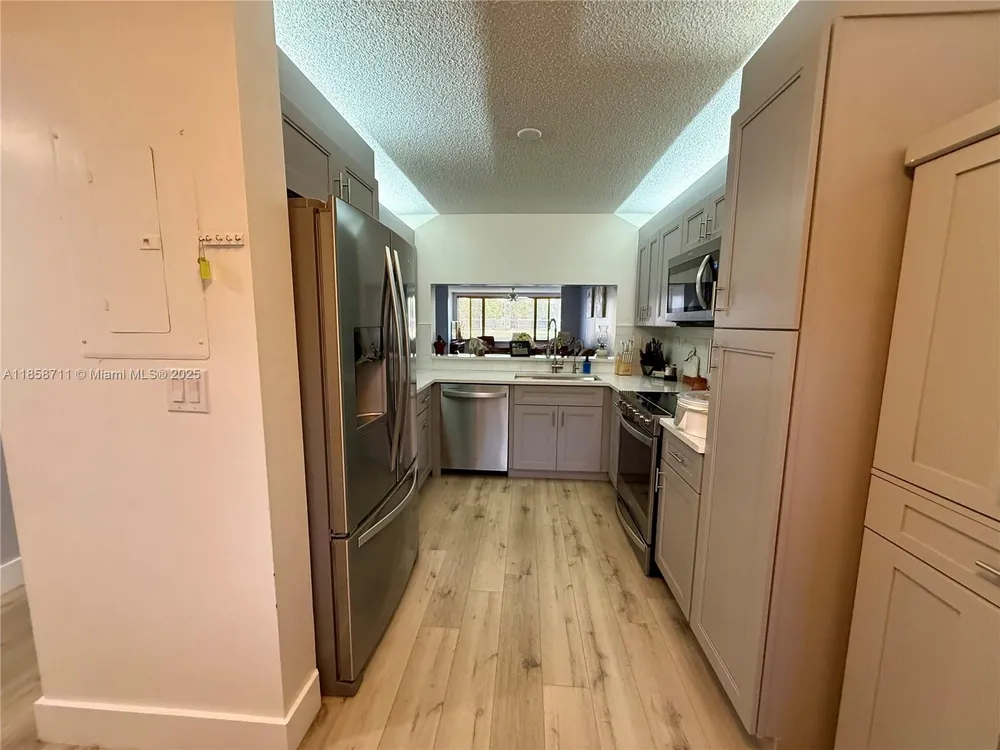 Move right in to this beautifully updated 2-bedroom, 2-bathroom home showcasing a modern kitchen with all-new cabinetry, appliances, and a water filtration system. Both bathrooms have been tastefully renovated, and the extended living room offers extra space to relax or entertain while enjoying the serene lake view. The split floor plan ensures privacy, while the in-unit laundry room adds everyday convenience. The home features a neutral color scheme, impact windows, and has been meticulously maintained for a true turn-key experience. Located in the sought-after Kings Point community, residents enjoy resort-style amenities including a clubhouse (deed in hand), pools, fitness center, tennis, and more. This is a must-see for buyers looking for comfort, style, and a vibrant lifestyle.