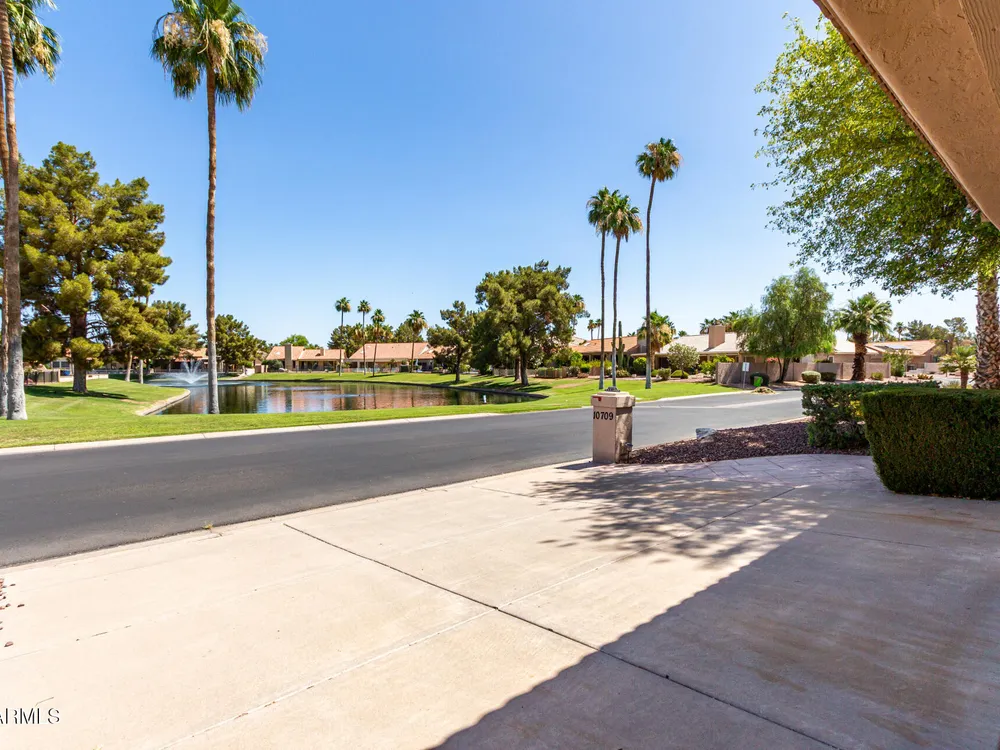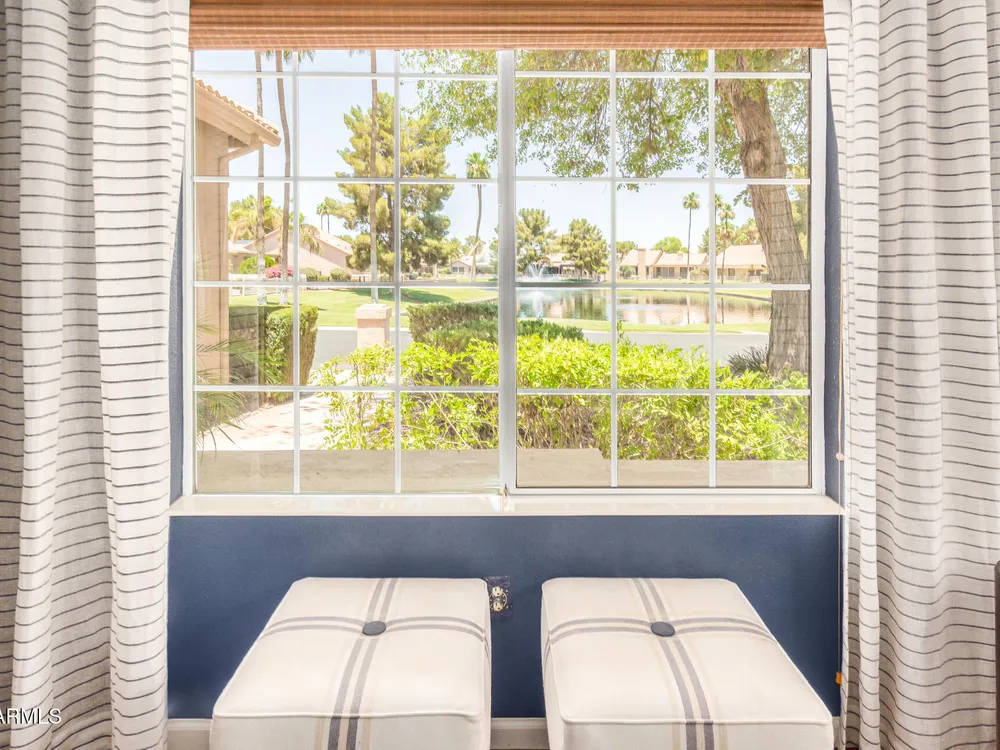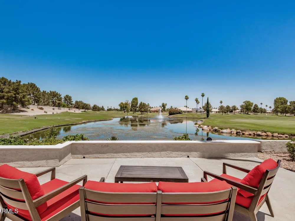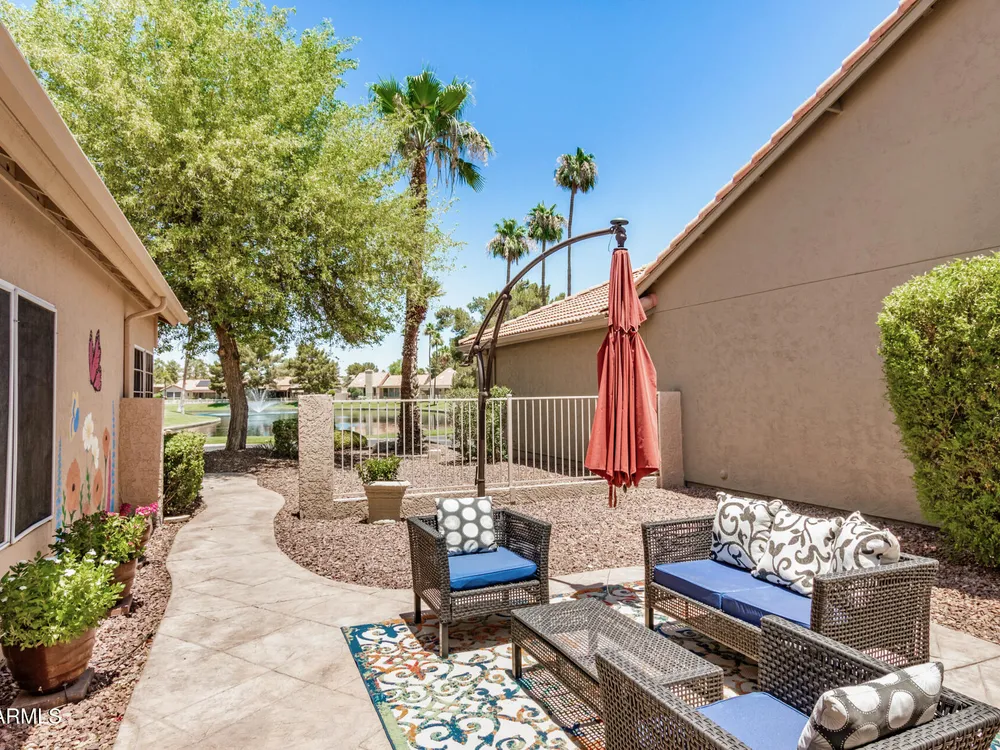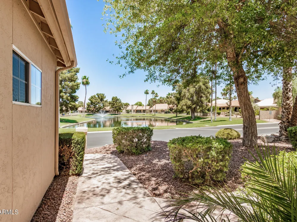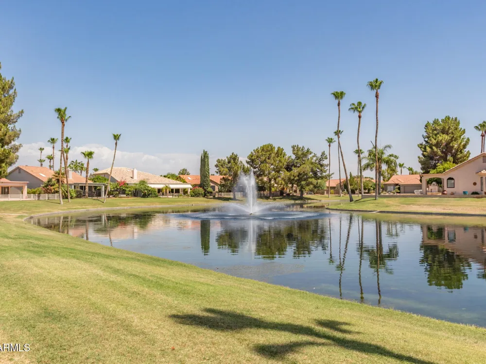 Beautiful lake view home located in the gated, resort-style community of Ironwood at Sun Lakes. This spacious 2 bed, 2 bath home includes a den/office, formal dining, and both living and family rooms, offering comfort and flexibility. The expansive primary suite features a large bedroom with a cozy seating area, plus a beautifully upgraded bathroom with walk-in shower, double vanity sinks, and ample closet space. A 2.5 car garage provides extra storage or room for a golf cart. Enjoy the Arizona lifestyle with a covered back patio, built-in BBQ, and a charming front patio overlooking the lake. Residents enjoy access to Ironwood's private golf course, clubhouse, restaurants, fitness center, pools, tennis, pickleball, and a full calendar of social activities.