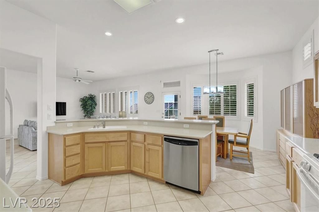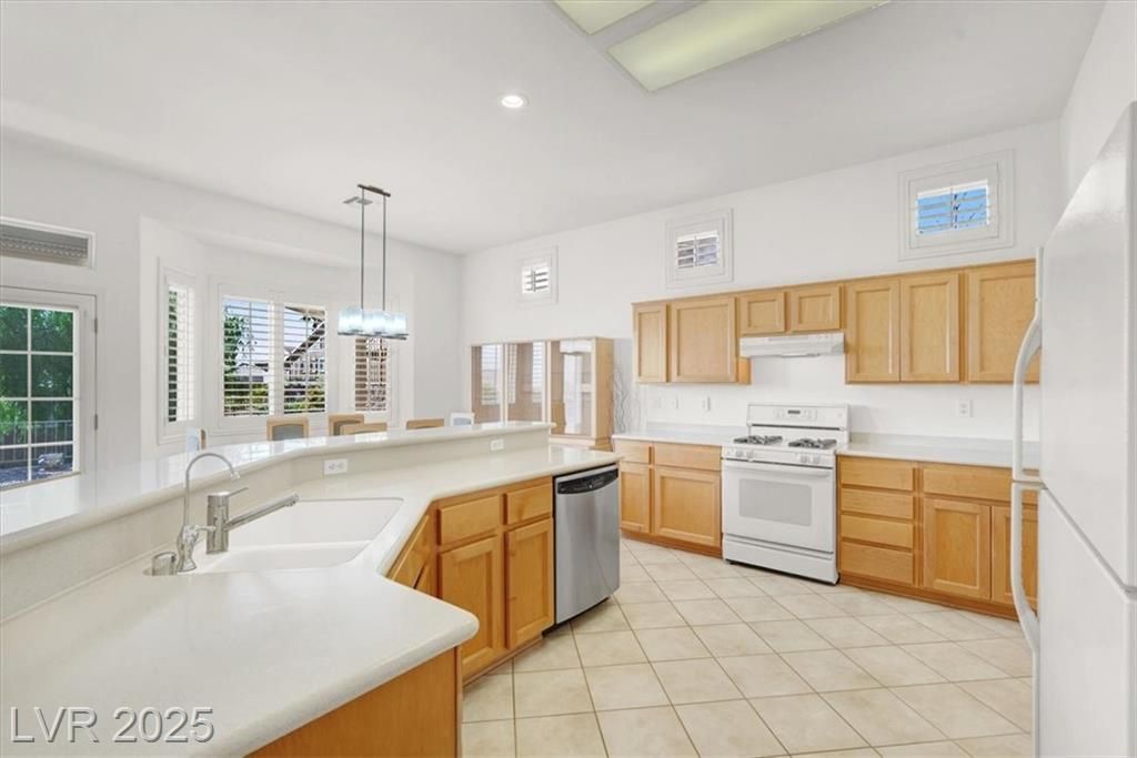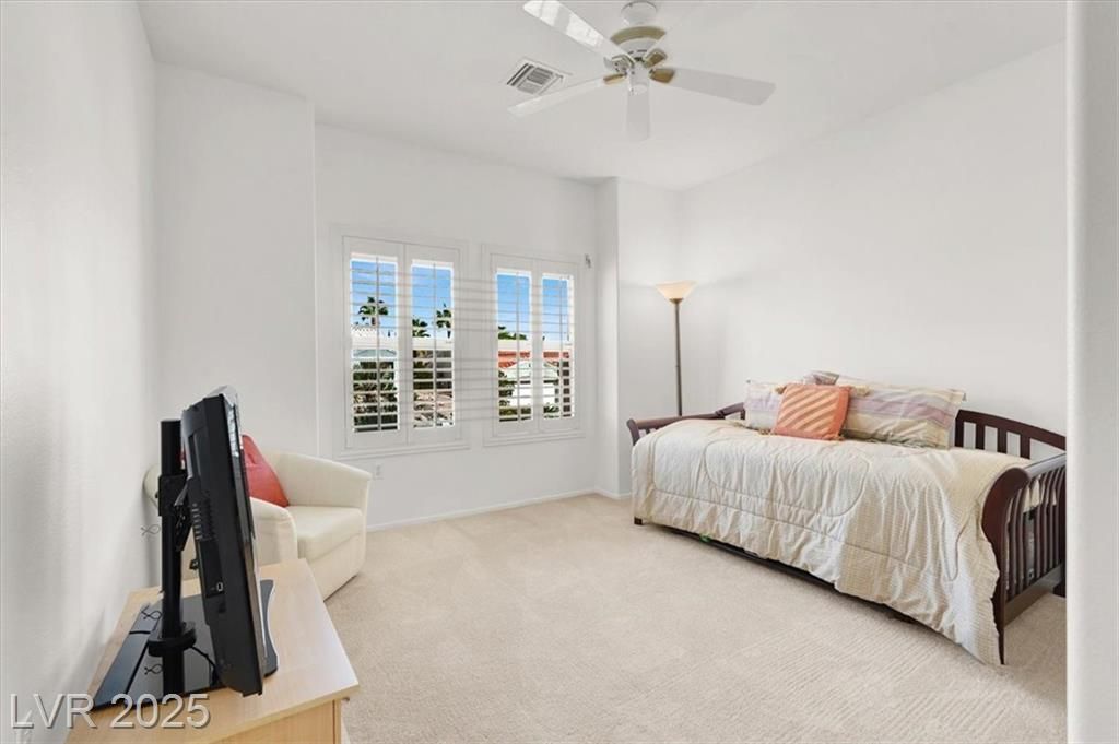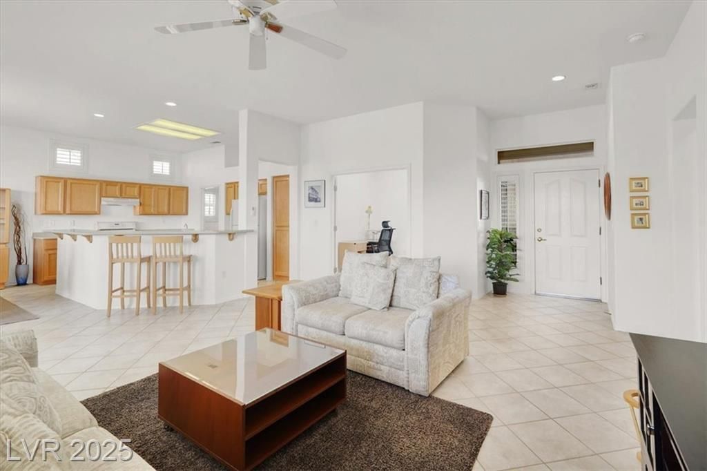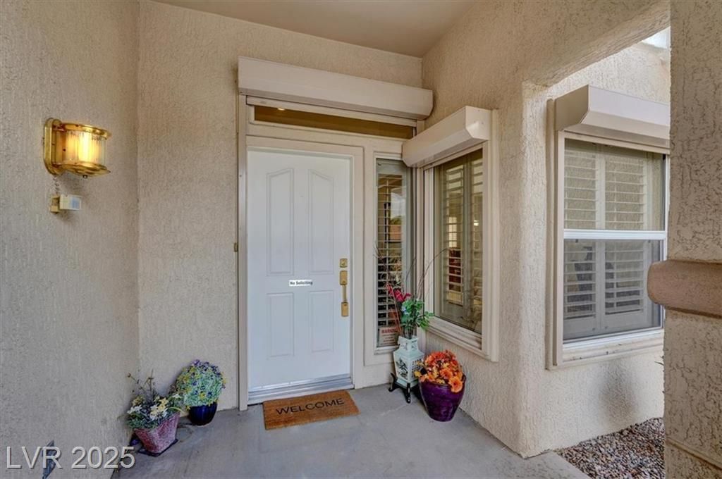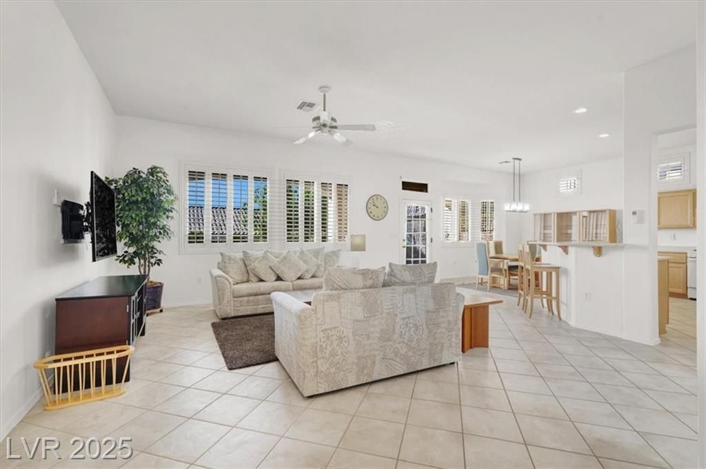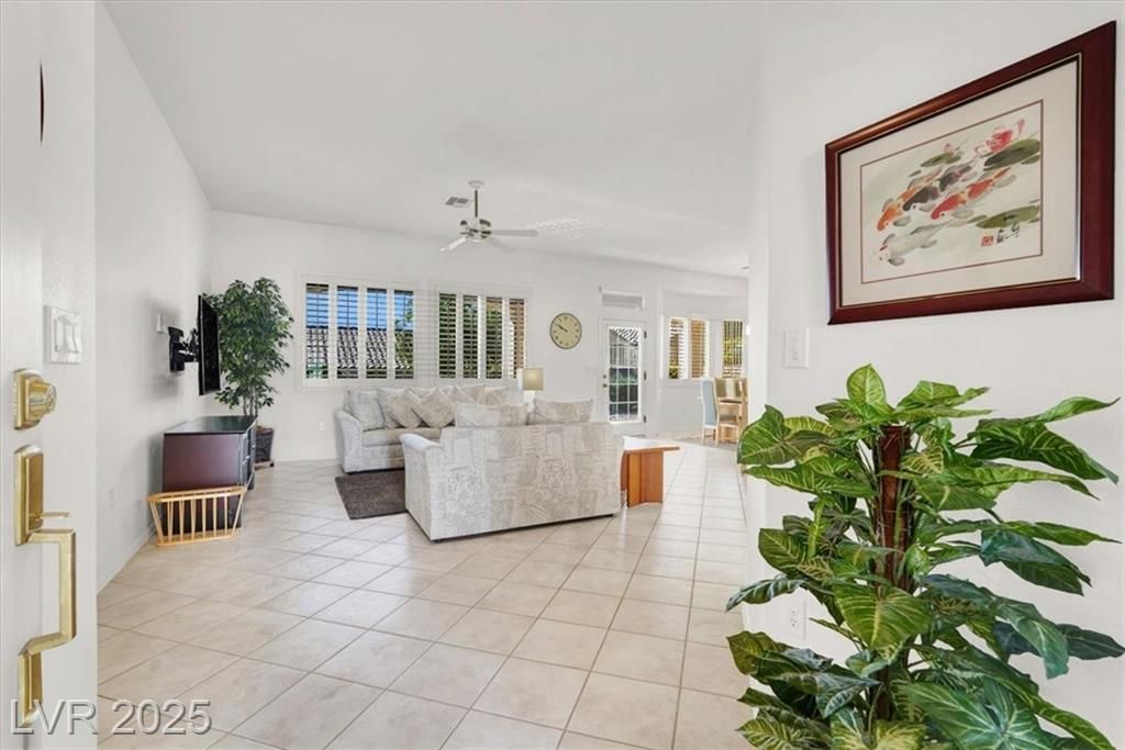 Welcome to this charming single-story home located in the desirable 55+ community of Sun City Summerlin. This 2-bedroom plus den residence sits on a spacious lot with a large backyard and views of the Las Vegas Strip & is 1520 square ft.The inside of the home has been freshly painted & features plantation shutters throughout for a timeless touch. For added comfort and peace of mind, every window is also equipped w/ electronic Rolladen shutters—ideal for travelers & excellent for keeping the home cool during summer months.The kitchen includes a reverse osmosis system for clean drinking water, complemented by a high-end whole-home water treatment system w/ extra filters included. The finished garage offers built-in storage cabinets, providing plenty of space to stay organized.Enjoy all the incredible Sun City Summerlin amenities, including golf courses, clubhouses, pools, fitness centers, and more—all just minutes from shopping, dining, and the excitement of the Las Vegas Strip.