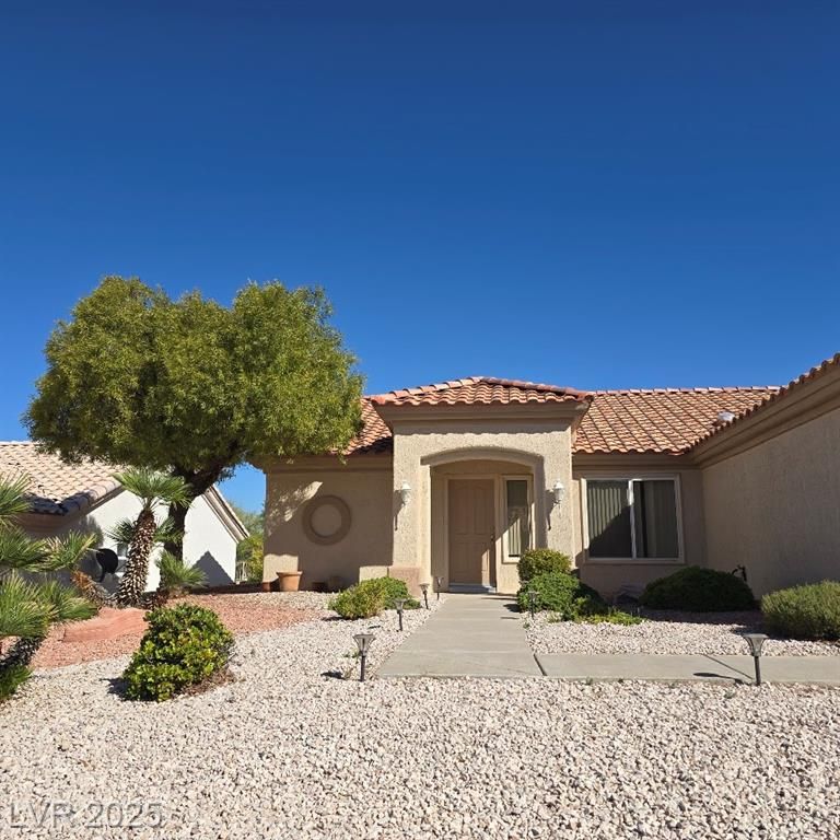 Only CITY/MTN VIEW property of this FLOORPAN in community. ORIGINAL OWNER! RARE City/Strip & Mountain VIEWS come with this SUN CITY SUMMERLIN home on a large ELEVATED LOT!! Popular RENO layout! Spacious open living & dining room with VAULTED CEILINGS! Tile floors! Sunny & bright kitchen with eat-in nook breakfast room! Primary suite SEPARATE from guest quarters! Set up as 2 bed & a office. BUILT-IN DESK & shelving, + SOLAR TUBE in original laundry area, 2 baths! 2-CAR GARAGE w/GOLF CART parking & BUILT IN STORAGE! Plumbed for water conditioner. NEWER SHOWER in primary! Large low maintenance backyard w COVERED PATIO/BBQ STUB! ALL APPLIANCES included! BAY WINDOWS in both bedrooms & kitchen nook area! Formal DR could be used as office/library/den etc. Enjoy RESORT STYLE 55+plus living! Golf, Tennis, multiple pools, fitness center, golf courses, clubs, activity centers, tennis, pickleball & more! Conveniently located near shopping, dining, 215 & 95. NO REAR NEIGHBORS! SUMMERLIN LOCATION!!