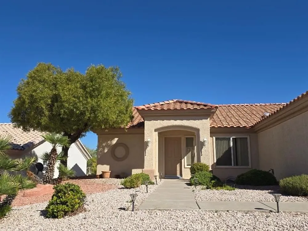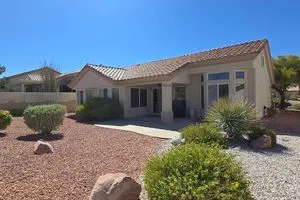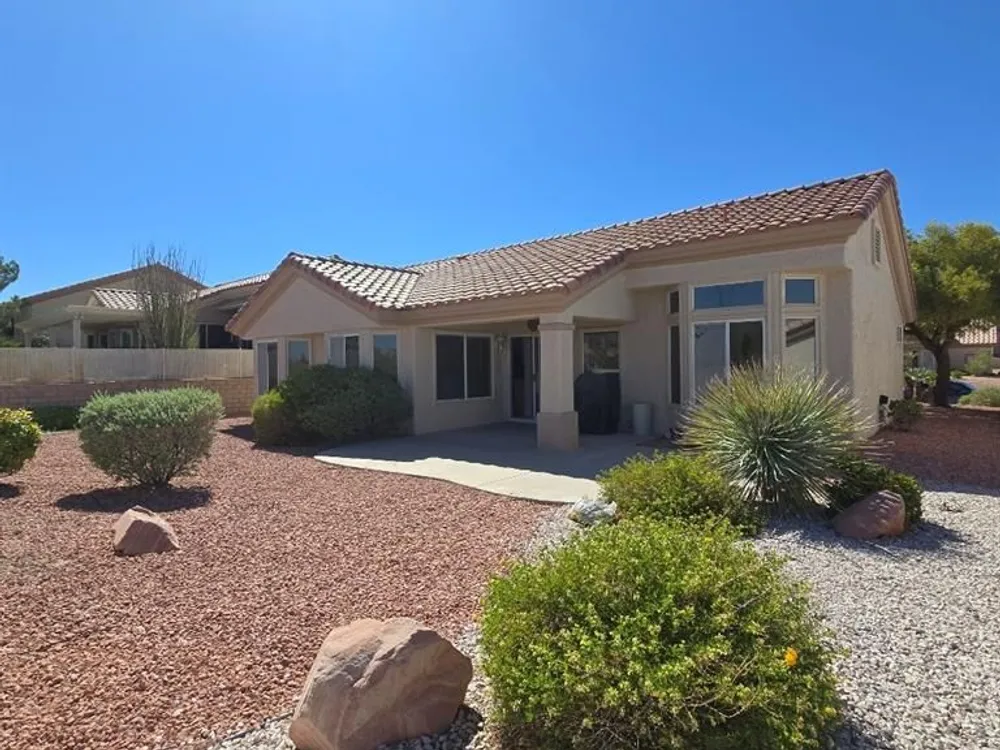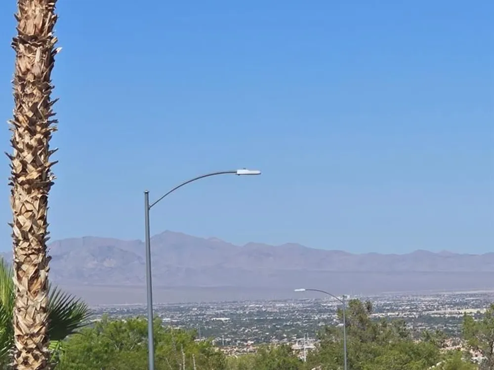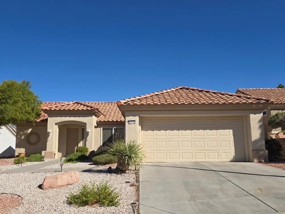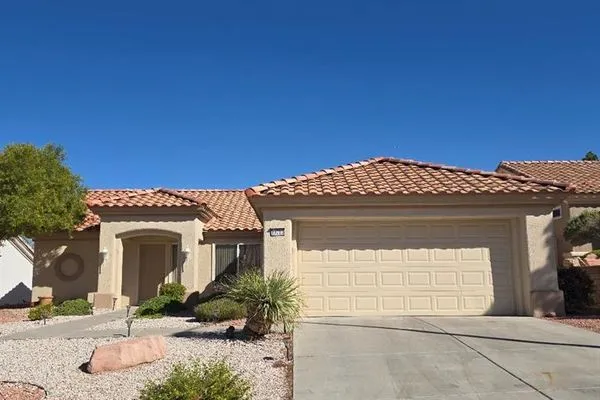 NEW PRICE! Only VIEW property of this FLOORPAN in community. ORIGINAL OWNER! City/Strip & Mountain VIEWS come with this SUN CITY SUMMERLIN home on a large ELEVATED LOT!! Popular RENO layout! Spacious open living & dining room with VAULTED CEILINGS! Tile flooring! Sunny & bright kitchen with eat-in nook breakfast room! Primary suite SEPARATE from guest quarters! Set up as 2 bed & a office. BUILT-IN DESK & shelving, + SOLAR TUBE in original laundry area, 2 baths! 2-CAR GARAGE w/GOLF CART parking & BUILT IN STORAGE! Plumbed for water conditioner. NEWER SHOWER in primary! Large low maintenance backyard w COVERED PATIO/BBQ STUB! ALL APPLIANCES included! BAY WINDOWS in both bedrooms & kitchen nook area! Formal DR could be used as office/library/den etc. Enjoy RESORT STYLE 55+plus living! Golf, Tennis, multiple pools, fitness center, golf courses, clubs, activity centers, tennis, pickleball & more! Conveniently located near shopping, dining, 215 & 95. NO REAR NEIGHBORS! SUMMERLIN LOCATION!!