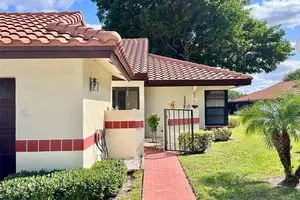 Bright 2-Bedroom, 2-Bathroom Villa with 1-Car Garage. Conveniently Located directly across from the Clubhouse. Open Concept Living/Dining Space with additional Den/Office. Vaulted Ceilings with 3 Skylights. Spacious Enclosed Lanai adds 300 SF of Entra Space and Private Backyard. Large Master Bedroom with Walk-in Closet. Laundry room inside Unit. Condo Fee includes Reserves, Insurance, Building Exterior/Roof, Water/Trash, Cable/Fiber Optic Internet, Pest Control and Clubhouse with Incredible Amenities! Desirable Gated Community Set Back 1/4 mile from Military Trail with Beautiful Lakes & Trees. Clubhouse Includes Olympic Sized Temperature Controlled Pool (Heated/Cooled) and Hot Tub. Fitness Rooms, Card Rooms, Ping Pong, Billiards, Pickleball & More! Active 55+ Community. ESA Pets Welcome!