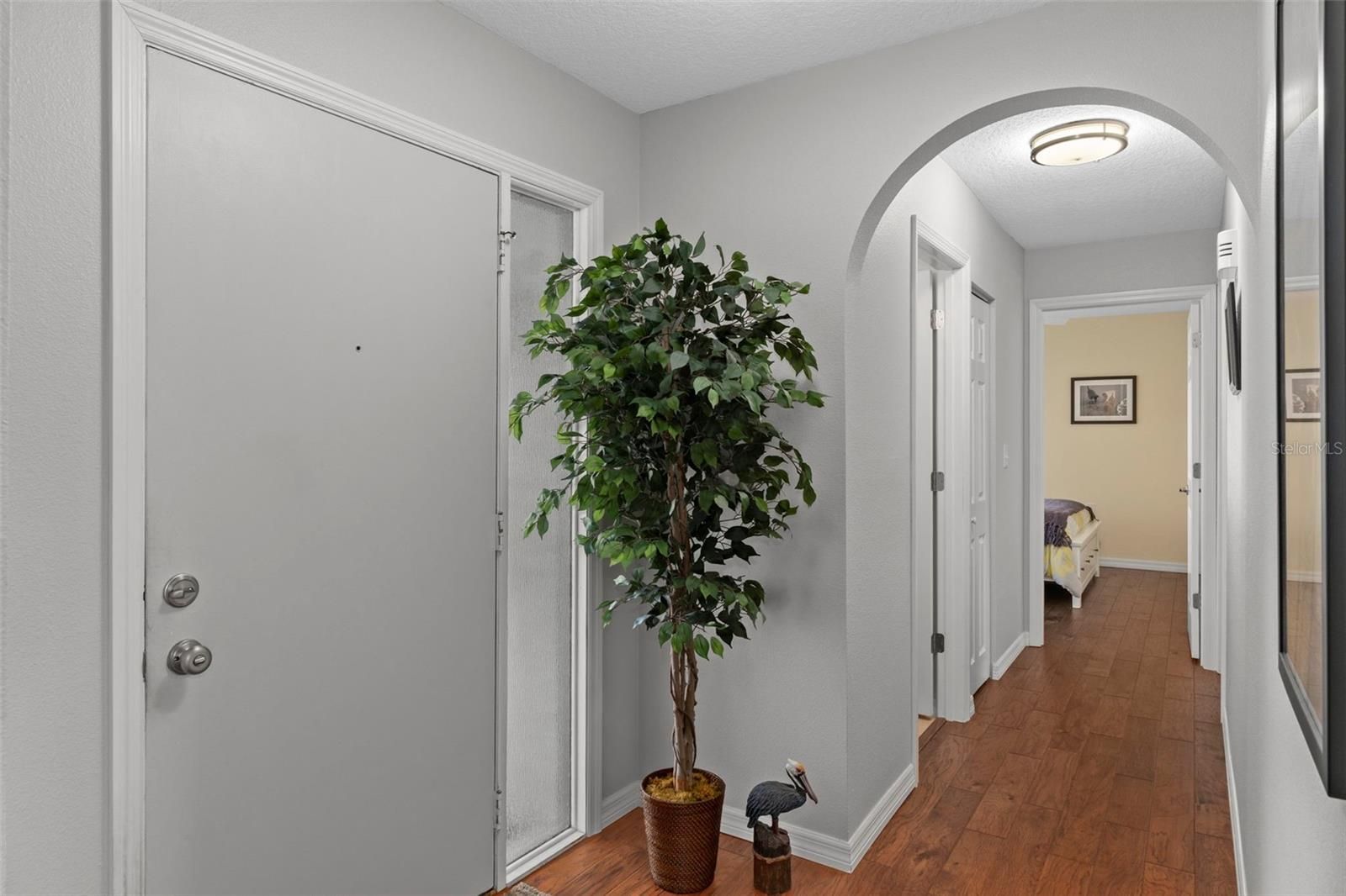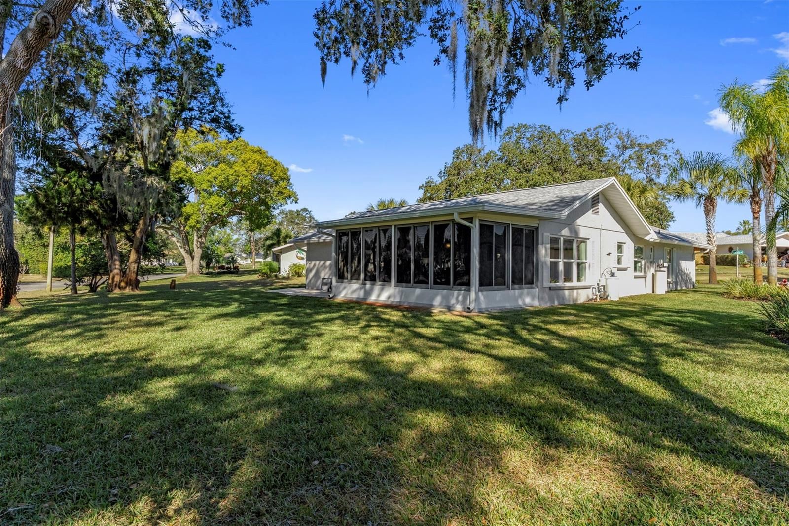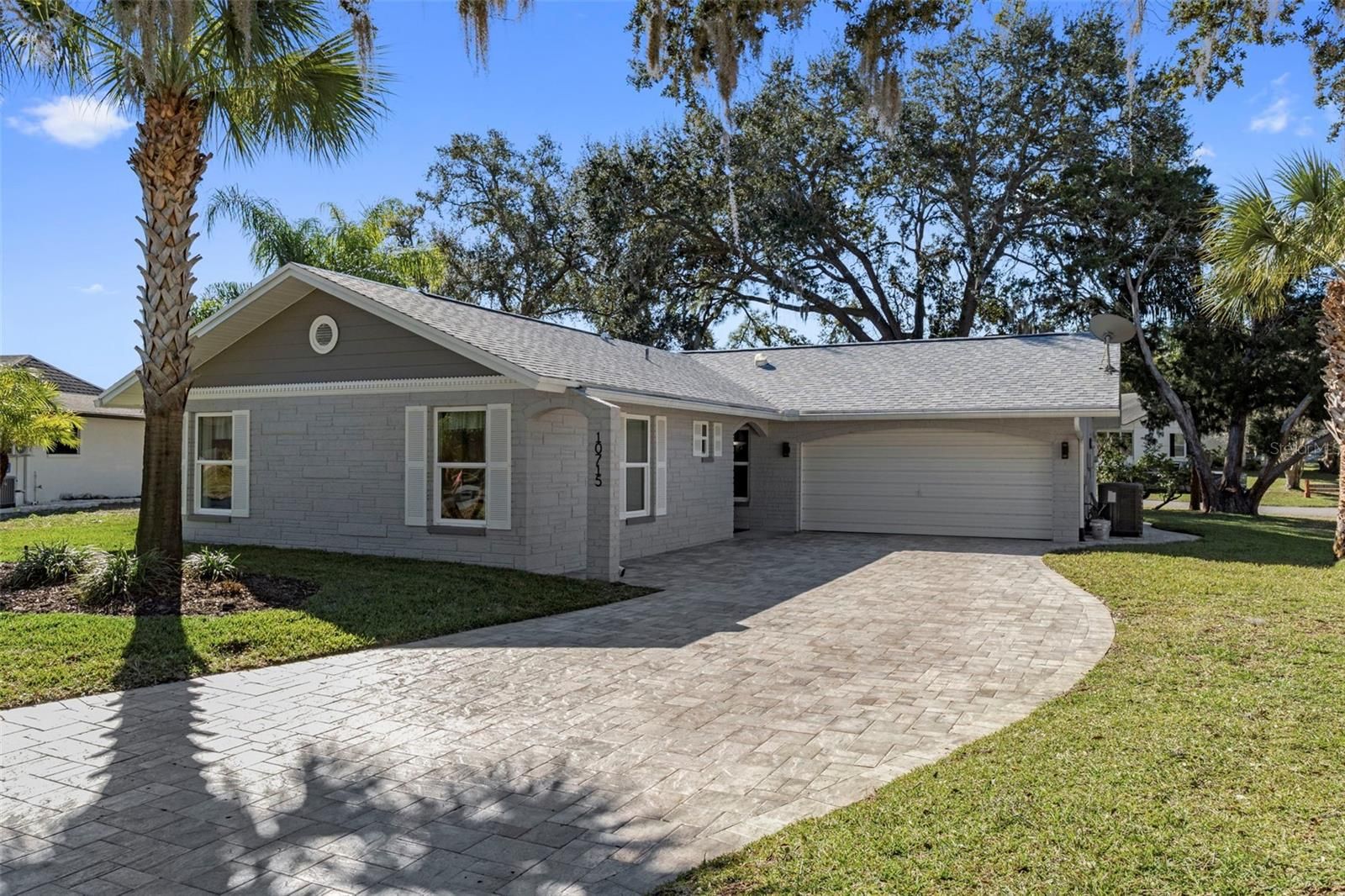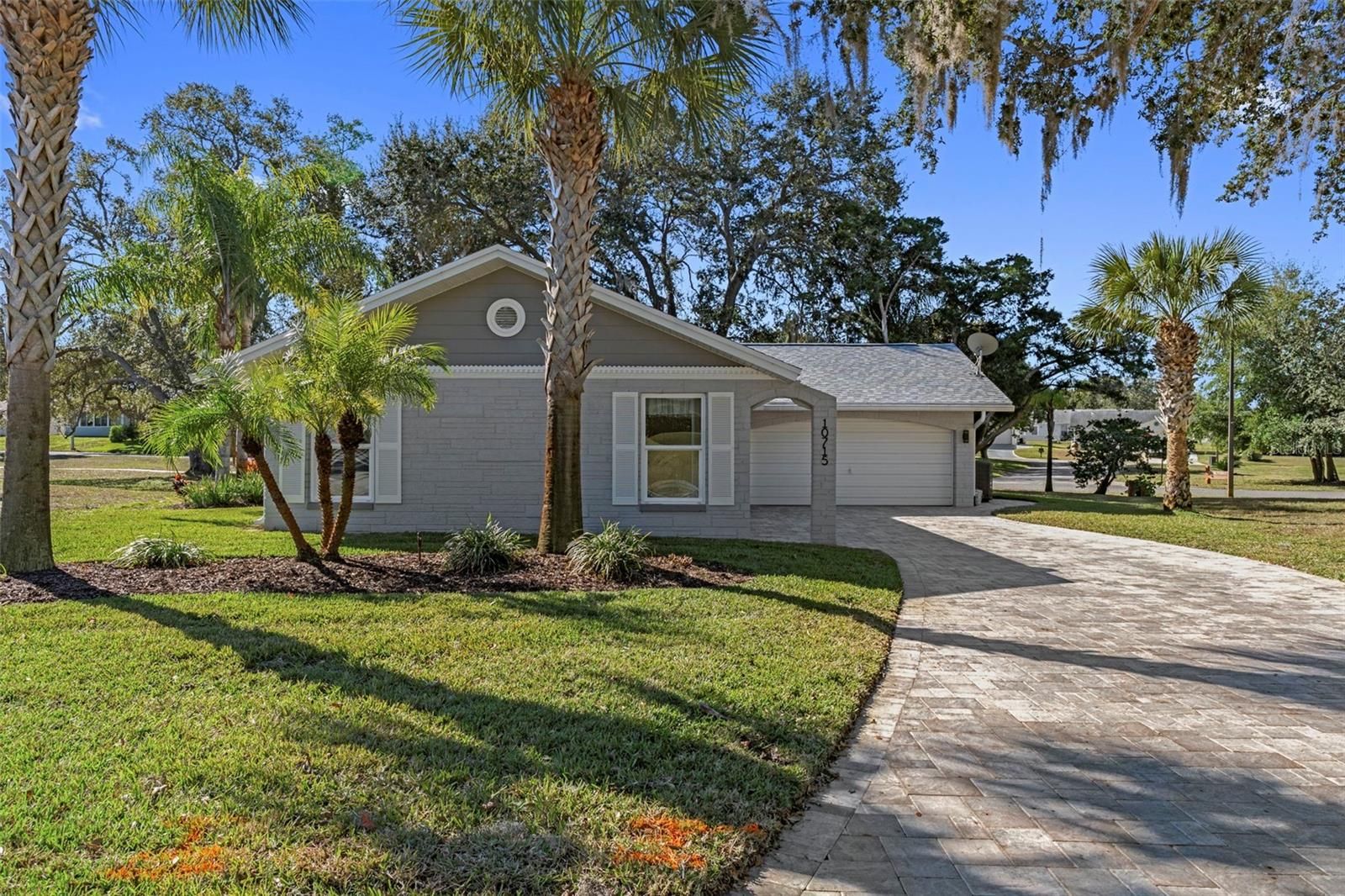 This beautifully updated 2-bedroom, 2-bathroom home offers comfort, style, and peace of mind—just bring your suitcase and start enjoying your new home from day one. Thoughtful updates inside and out make this residence truly move-in ready. From the moment you arrive, you’ll be impressed by the exceptional curb appeal, featuring several full-sized palm trees amid the well-designed landscaping. An impressive paver driveway leads to the extended double garage with epoxy flooring. The covered front entry welcomes you through a stately wood door into the foyer. Inside, the home feels warm and inviting with neutral paint, engineered hardwood flooring throughout (tile in wet areas), updated kitchen and bathrooms, and solar tubes that provide abundant natural light. To the left of the foyer are the two well-sized, light-filled bedrooms and the main bathroom. The primary bedroom features a spacious walk-in closet and a private en suite bath. To the right of the foyer is the heart of the home: a large living room with French doors opening to the enclosed porch. The updated kitchen showcases white cabinetry, quartz countertops, and newer stainless-steel appliances, along with a breakfast nook and laundry closet. The kitchen flows seamlessly into the formal dining room, which also features French doors leading to the recently tiled back porch. The backyard is a true retreat. Situated on a generous ¼-acre pie-shaped lot, it offers mature trees, a well-maintained lawn, and peaceful surroundings. Overlooking the sidewalk and near Footprint Lake, this home is perfectly positioned for neighborhood walks and friendly encounters with neighbors. Located in the San Clemente Village of Timber Oaks, residents enjoy an impressive array of amenities, including a clubhouse, fitness center, outdoor pool, card room, arts and crafts studio, performance/movie theater, billiards, walking and biking trails, tennis courts, and shuffleboard courts. Major updates include: New soffits, fascia, gutters, and gutter shields (2024), Kitchen update and appliances (2023), New roof and A/C (2022), New paver driveway and patio (2022), Tankless water heater (2021), Double-pane windows (2012). Additional features you will love - water filtration system connected to well for irrigation, newer interior doors throughout, entry door from garage into home for convenience and much more. Most furniture/household items are available for inclusion.