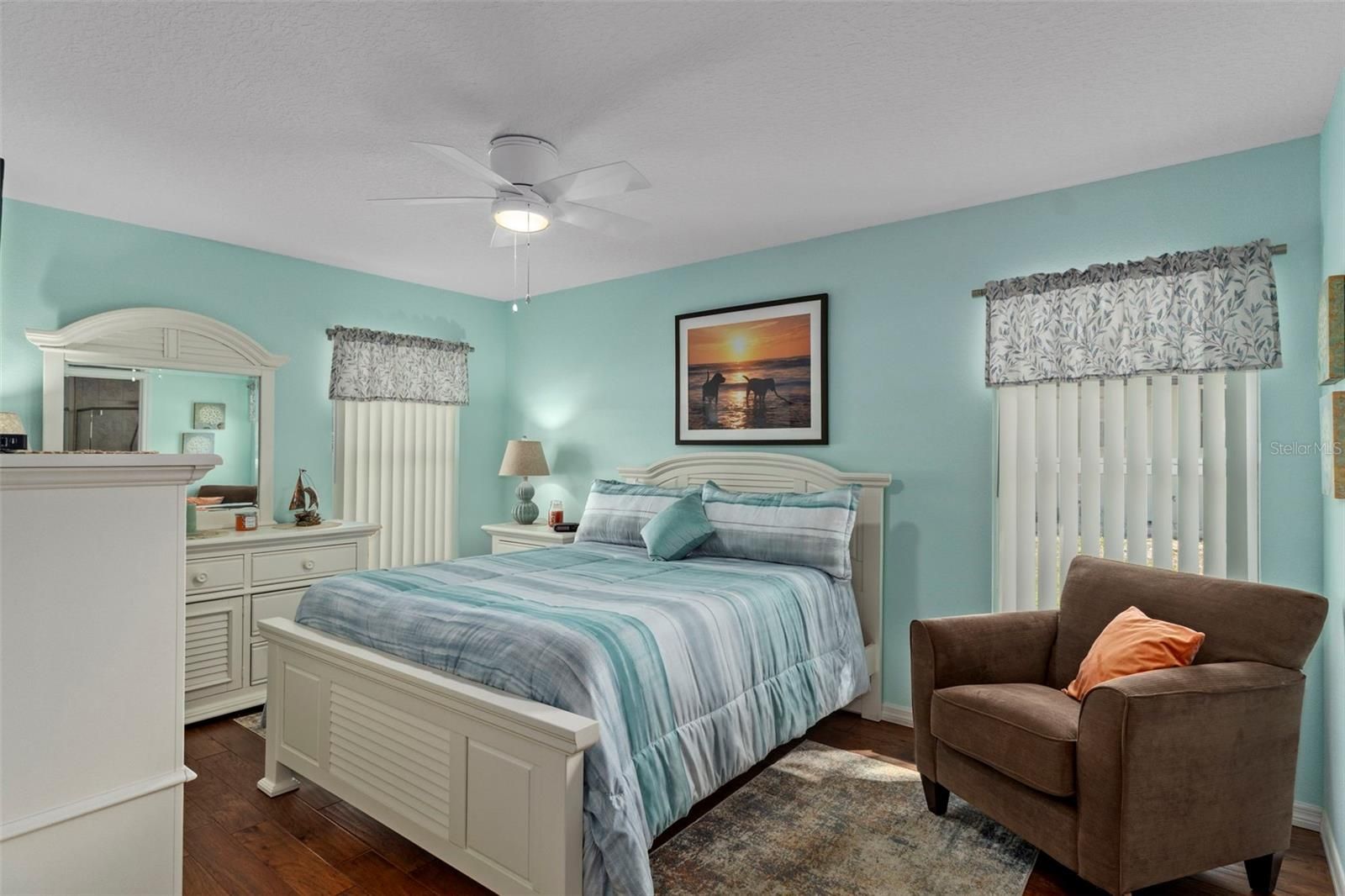 - Eat-in Kitchen, Main Level Primary, Solid-Wood Cabinets, Stone Counters, Walk-In Closet(s), Window Treatments