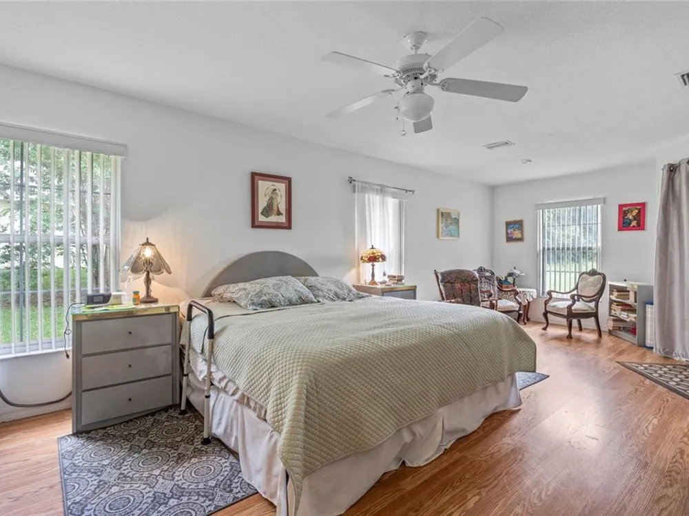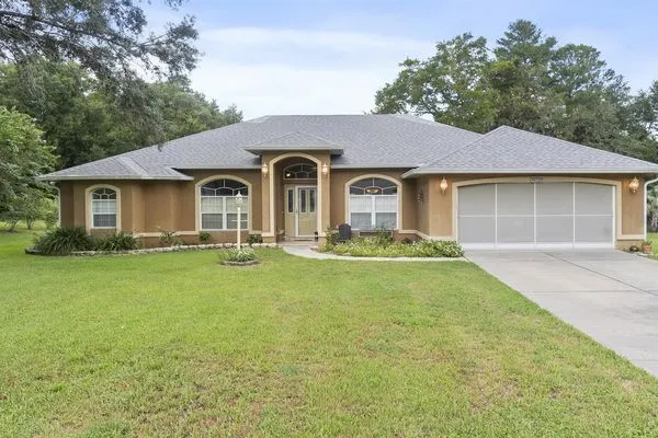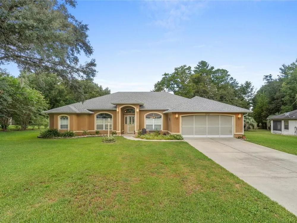 PEACEFUL EASY FEELING...Priced BELOW Market Value-- Walk Into Instant Equity. Peaceful 55+ community. KINGSLAND COUNTRY/MARCO POLO VILLAGE! Over 2000 square feet on OVER half-acre lot. Bright and spacious home is filled with natural light and loads of storage space with a NEW ROOF in 2023. Features soaring ceilings, a large kitchen with granite counters and breakfast nook, and a private primary bedroom and en-suite bath with a jetted tub and HUGE walk-in closet. The backyard is an oasis with room for A GARDEN and a large outside storage shed. Enjoy the Florida room overlooking the expansive, lush backyard featuring beautiful, mature Palm Trees. Living room, dining room, 3 bedrooms and an office and 2-car garage. Conveniently located, this home offers easy access to the World Equestrian Center and is approximately 90 minutes from Disney World, Epcot Center, Daytona Beach, and the Gulf Coast. For outdoor enthusiasts, the Rainbow River is just twenty minutes away for fishing, swimming, and kayaking and snorkeling.