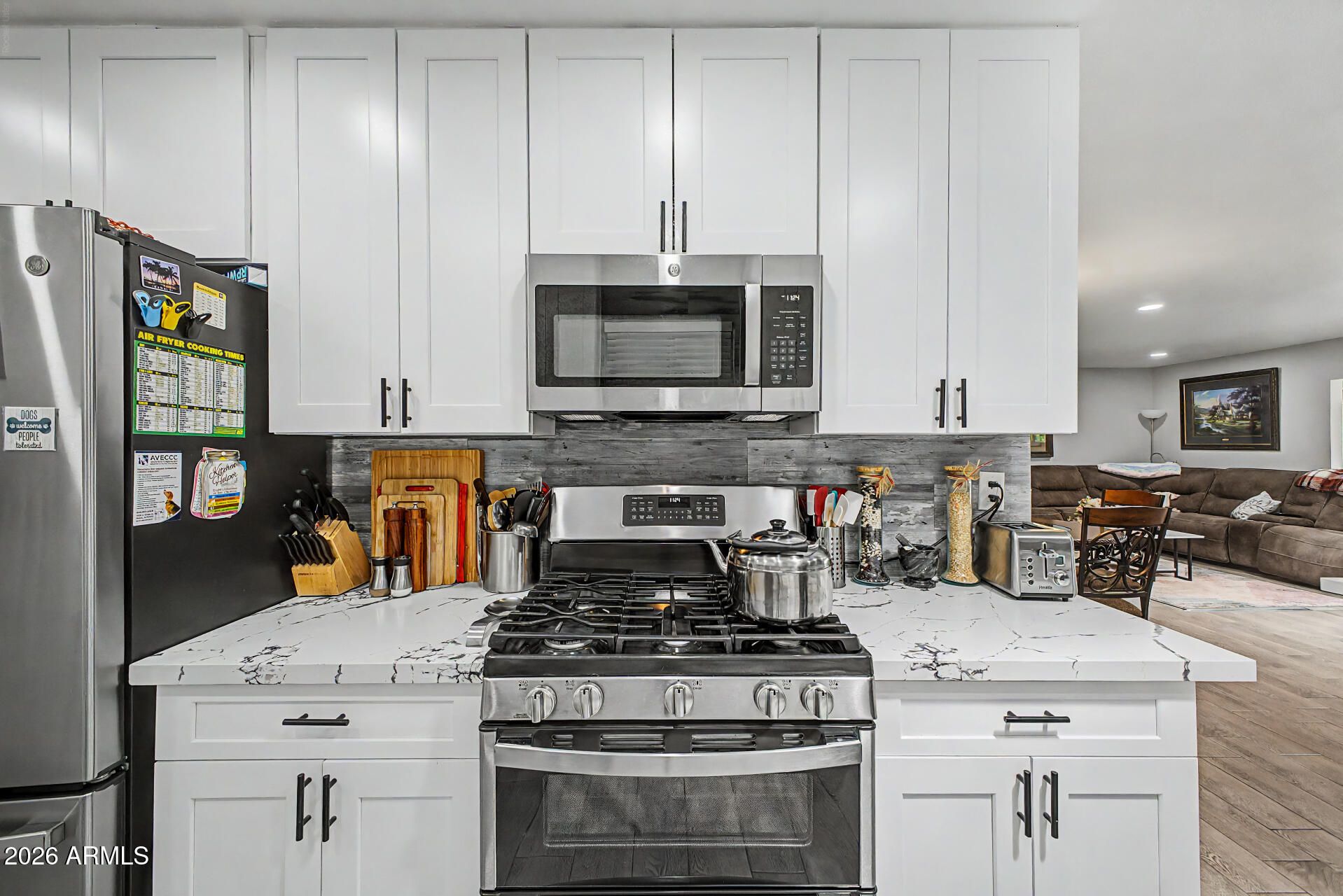 - Built-in Microwave, Dishwasher, Disposal, Gas Range