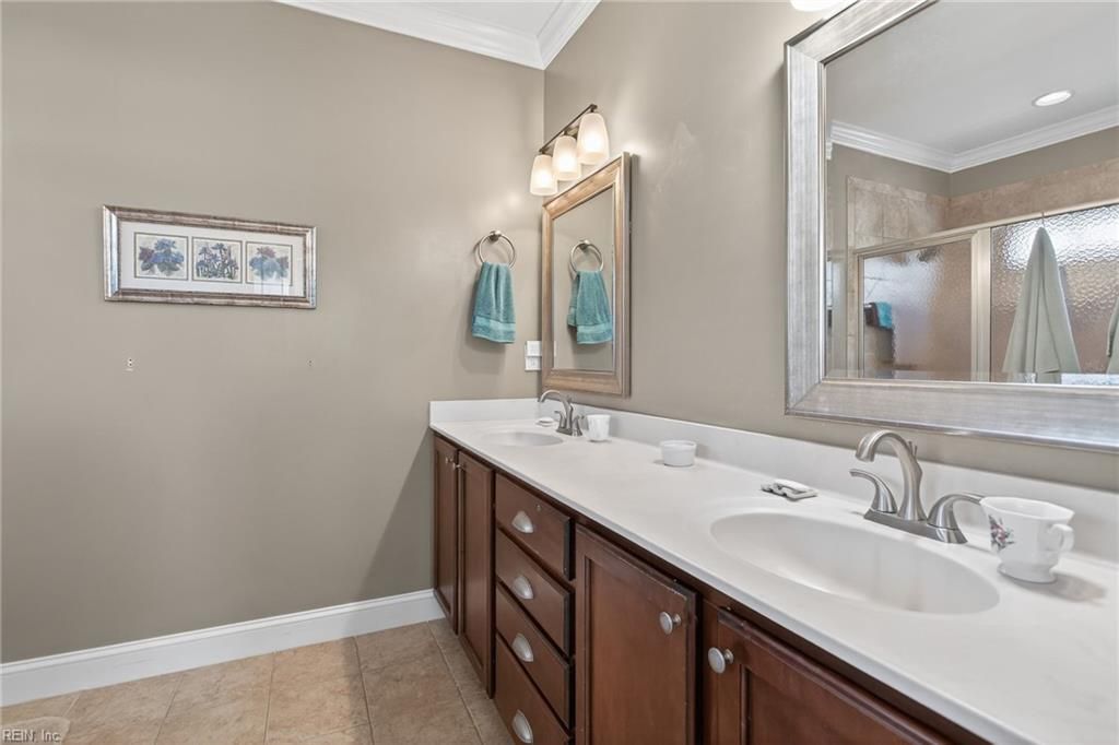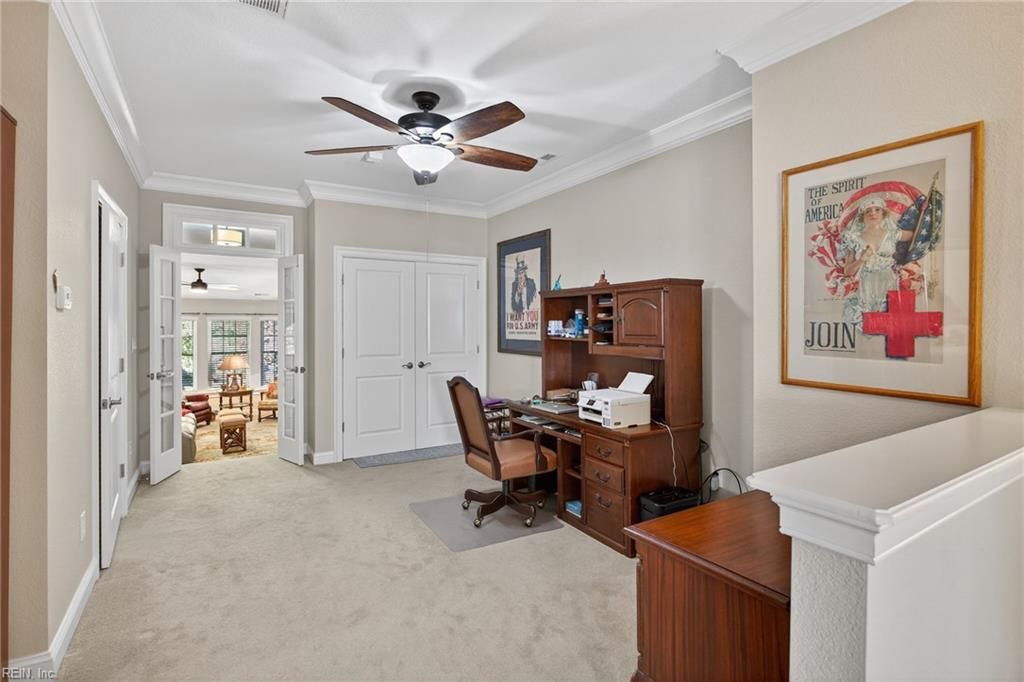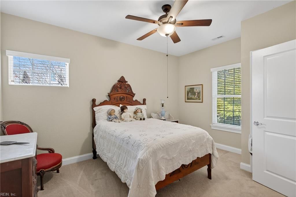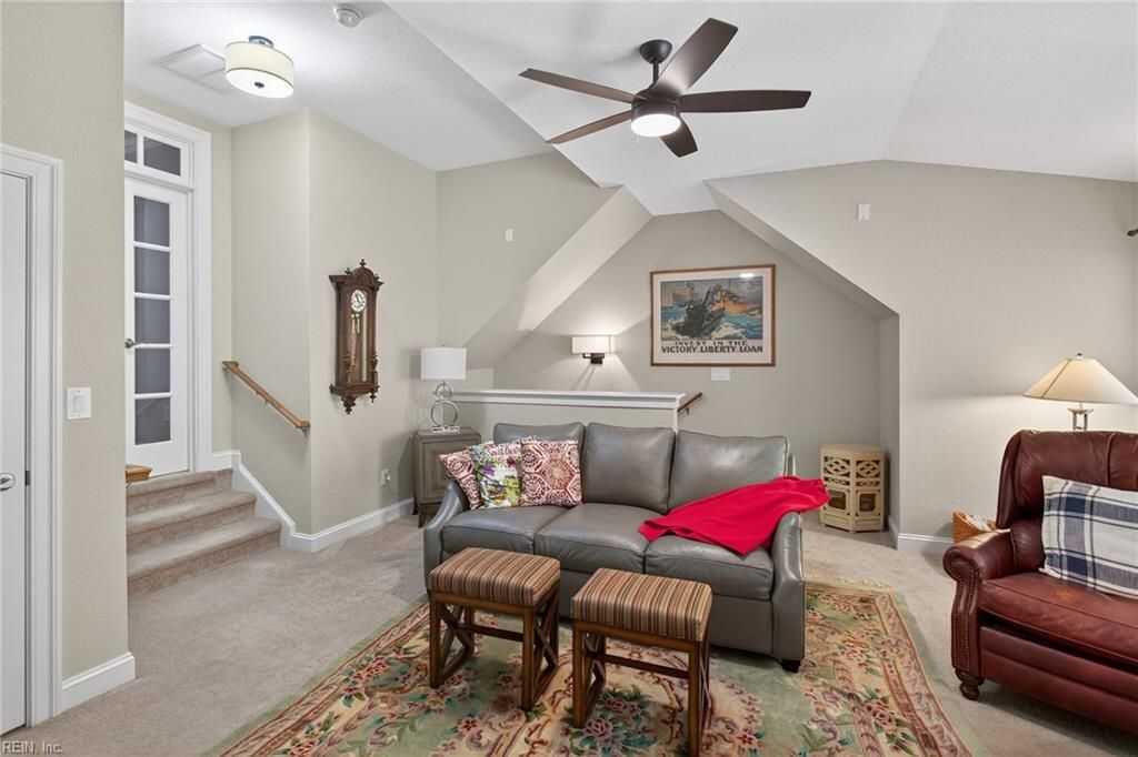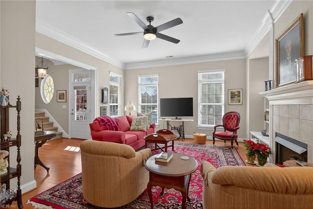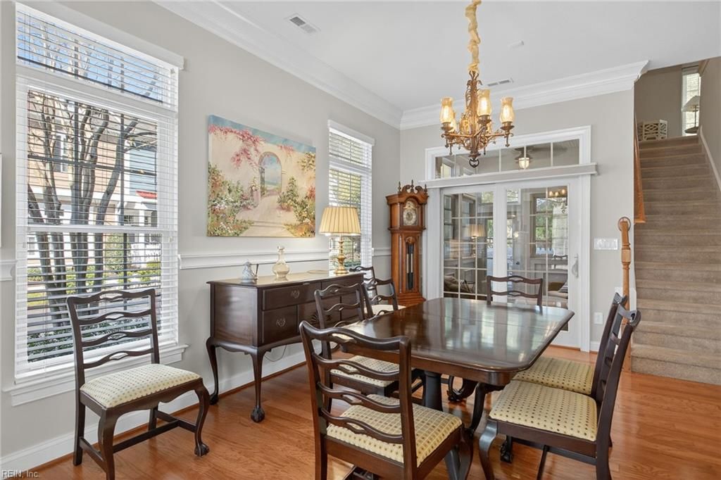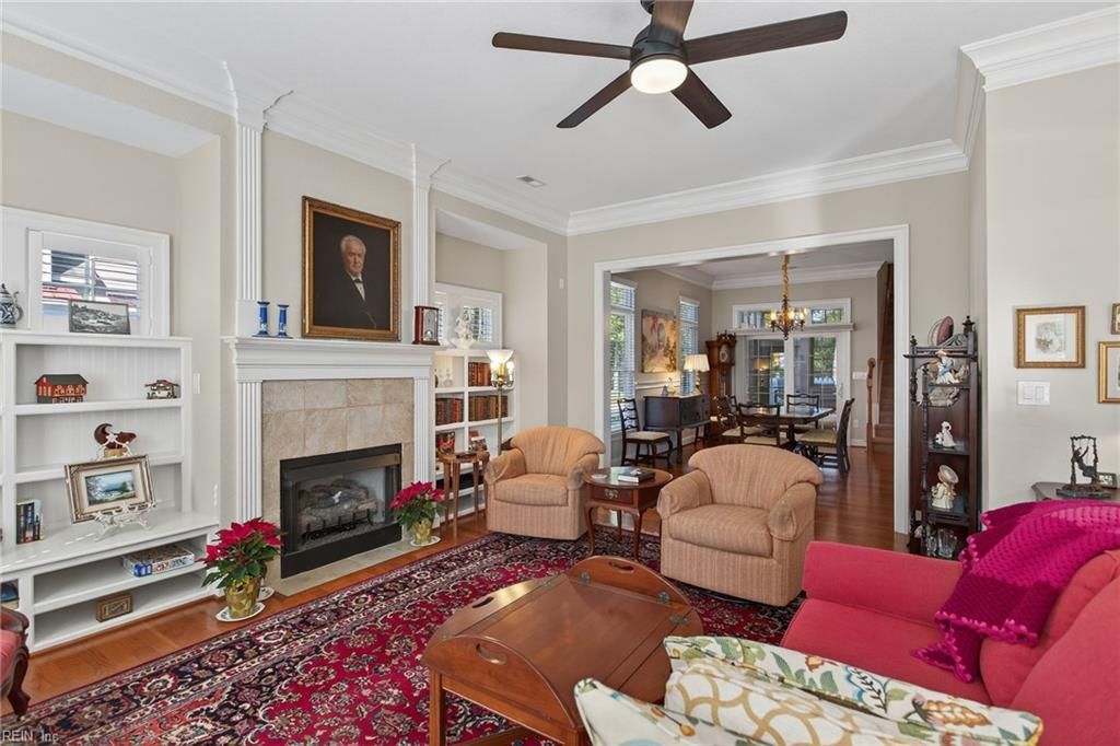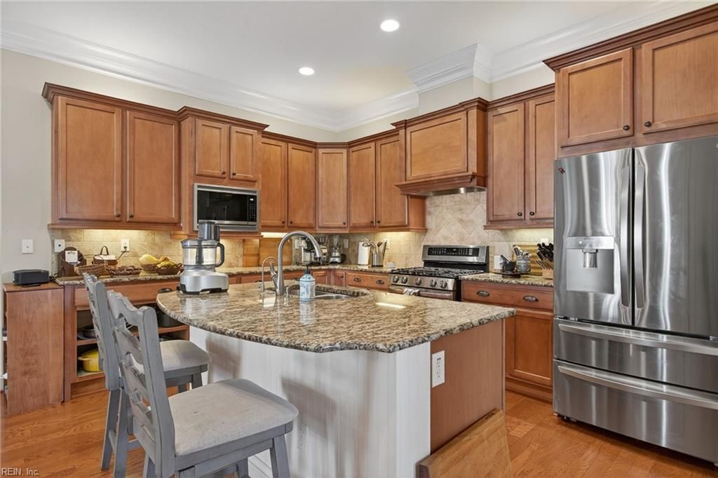 Come see this spectacular Stephan Alexander Home in the 55+ Sommerton Community in Chesapeake. The first-floor features 10' ceilings, custom crown molding throughout 1st floor, built in shelving in living room with gas fireplace, beautiful wood floors throughout 1st floor, open dining room off the gourmet kitchen that has Maple cabinets, granite tops, tile backsplash, island with seating and new Stainless Appliances and a relaxing Sunroom to enjoy your morning coffee. As you come to the top of the stairs or exit the elevator, you enter into a seating area/loft area. The Primary Bedroom has vaulted ceilings, walk in closet and private bathroom with dual sinks & tile shower with bench and safety bars. The second floor has 2 additional bedrooms and full bath. Located as the end unit with a 2-car garage and a view of the neighborhood pond from the front porch. Located just minutes from the Greenbrier area of Chesapeake with easy access to shopping and restaurants.
