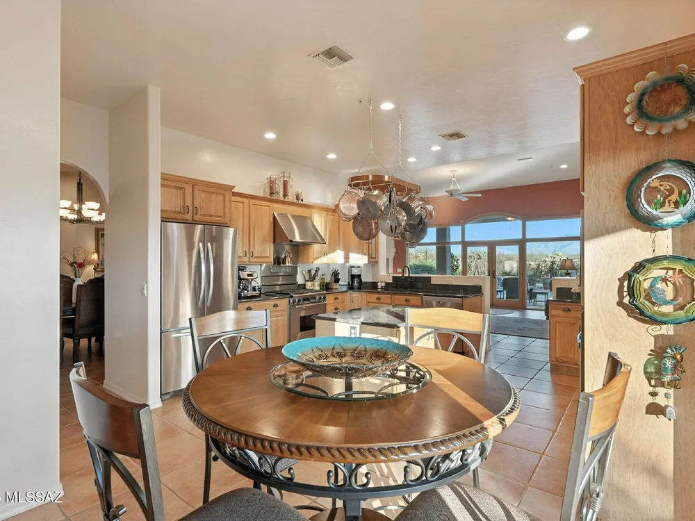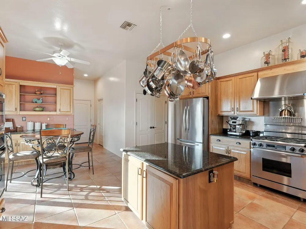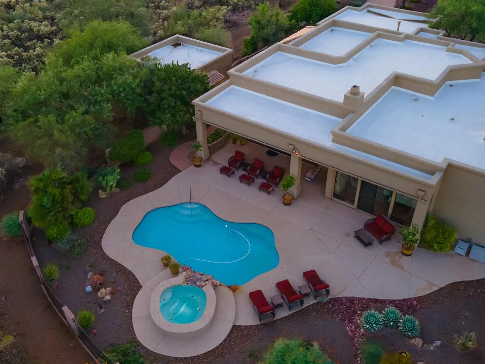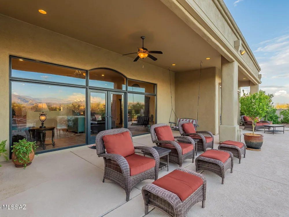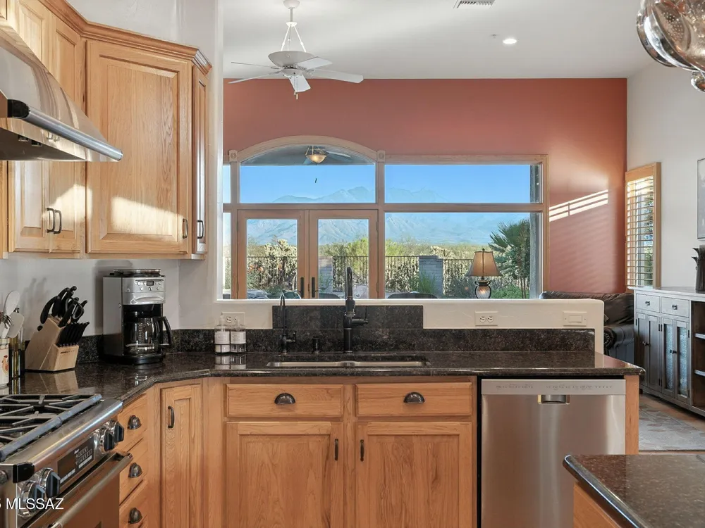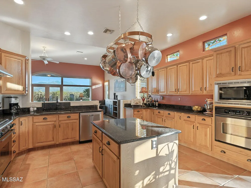 Situated on one of the finest lots in the highly desirable Madera Reserve, this stunning one-acre property offers unmatched privacy and majestic, panoramic MOUNTAIN VIEWS. A custom Dorn-built home, it seamlessly blends elegance and comfort with tall ceilings, expansive windows, and a warm fireplace framed by those breathtaking vistas.The gourmet kitchen is designed for both entertaining and everyday luxury, featuring granite countertops, a Dacor 4-burner gas stove, hickory cabinetry, an island, reverse osmosis, a breakfast nook, a built-in hutch, and two spacious walk-in pantries. Additional conveniences include a large laundry room and two new Trane HVAC systems for modern efficiency.