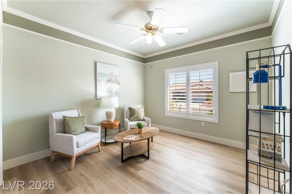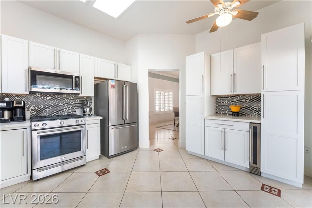 Welcome to this Beautiful, Pet-Friendly, Sun City Summerlin Home! This charming residence offers a thoughtfully designed layout with separate bedrooms. The updated kitchen features elegant Cabinets, Quartz Countertops, and Kitchen Aid Appliances. There's the Coolest Coffee bar, and 7 Bottle Wine Fridge too! Both bedrooms feature new Vinyl Plank Flooring, and the Spacious Primary Suite includes a Huge Walk-in Closet . Primary Bath has a brand new shower and barn door ! The formal Living and Dining areas add a touch of sophistication and provide great space for gatherings. Enjoy the Lovely Front Porch and Covered Patio, perfect for relaxing on Not so Hot Days! DON'T MISS!