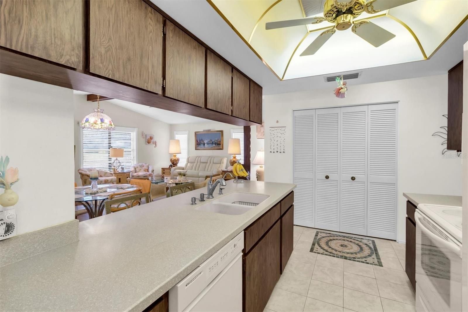 WONDERFUL 2/2/2 IDEALLY LOCATEDON A SERENE POND IN ONE OF THE AREAS MOST POPULAR ADULT COMMUNITIES! THIS ONE OF A KIND FLOOR PLAN BOAST JUST OVER 2000 SQUARE FEET OF UPDATED LIVING SPACE! SPACIOUS LIVING ROOM & FORMAL DINING ROOM. THE GALLEY KITCHEN IS LINED IN CABINETS TOPPED BY CORIAN, COMPLETE WITH ALL APPLIANCES AND A LARGE CONVENIENT DOUBLE DOOR PANTRY! THE BREAKFAST COUNTER BAR OPENS TO THE 14X24 FAMILY ROOM WITH A CATHEDRAL BEAMED CEILING SOARING OVER IT ACCENTED BY A CORNER STONE WOOD BURNING FIREPLACE AND A LARGE BUILT IN WET BAR AREA MAKING FOR EASY ENTERTAINING. WAIT TILL YOU SEE THE WATERFRONT VIEWS FROM THIS ROOM, IT HAS A WALL OF NEW SLIDING DOORS! AS A BONUS THE 85" TV STAYS! WAIT...THERES MORE!! THE 14X24 DEN ALSO FEATURES AMAZING VIEWS! A SPLIT FLOOR PLAN GIVES MAXIMUM PRIVACY TO THE PRIMARY BEDROOM, IT HAS A NICE WALK IN CLOSET AND THE PRIVATE BATH HAS EVERYONE'S FAVORITE STEP IN SHOWER! THE GUEST BEDROOM IS A GENEROUS SIZE WITH LOTS OF CLOSET SPACE AND IS ADJCAENT TO THE UPDATED GUEST BATH! ENJOY THE SEVEN BREEZY FANS, THE CONVENIENCE OF AN INSIDE LAUNDRY ROOM & A SPACIOUS 2 CAR GARAGE. SOME FURNISHING ARE NEGOTIABLE. YOU ARE A REALLY VERY SHORT STROLL TO THE OH SO ACTIVE CLUBHOUSE! IT FEATURES HEATED POOL & SPA, TENNIS, FULLY EQUIPPED EXERCISE ROOM, AND MORE CLUBS, PARTIES & DANCES THAN YOU CAN KEEP UP WITH! YOU BETTER HURRY TO THIS ONE! HESITATE....AND YOU'LL BE TOO LATE!