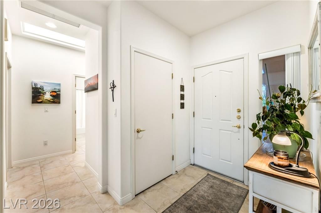 Experience the perfect balance of independence and resort-style living in Sun City Summerlin.This beautifully maintained, move-in ready Warwick model offers 2 bedrooms, 2 bathrooms, and 1,250 sq. ft. of bright, easy living. Enjoy a private gated courtyard, an open-concept layout with tile flooring throughout, and a well-equipped kitchen with newer appliances. The spacious primary suite features a bay window, walk-in closet, and walk-in shower, while the secondary bedroom is perfect for guests, a home office, or whatever you desire. Step outside and enjoy premier 55+ amenities—golf, pools, fitness centers, pickleball, and endless social activities. Low-maintenance living, vibrant community, and the lifestyle you’ve been waiting for.