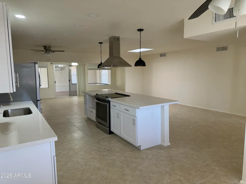 Come check out this beautiful, renovated move-in ready 3 bedroom 2 bath in Sun City. The spacious main bedroom suite has a large walk in closet, double sink and light fixtures. Freshly painted interior/exterior, new ceramic flooring and carpet. Kitchen has new white cabinets, new quartz countertops, new black stainless dishwasher and refrigerator. Nice extra space in the Arizona Room. Has a large backyard with low maintenance. This home is located close to shopping centers, doctors, hospitals, the AZ Loop 101 Freeway, and spring training fields plus access to all of Sun City's recreation centers and 8 golf courses. The seller is motivated to get this one SOLD.