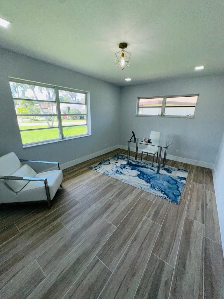 SELLER TO CONTRIBUTE $5,000 TO BUYER AT CLOSING, TO BE APPLIED TOWARD CLOSING COSTS OR ALLOWABLE EXPENSES. Wow! Make this your winter home or full-time residence! This 3 bed/2 bath home updated with MODERN TOUCHES. CATHEDRAL CEILIINGS, SPACIOUS KITCHEN open living spaces, WATERFALL QUARTZ COUNTER and SOFT CLOSE CABINETRY. MODERN BATHROOMS with FLOATING VANITIES, PEBBLESTONE SHOWER FLOOR as well as MARBLE-LOOK WALL TILES. Gorgeous WOOD-LIKE TILE FLOORS give the feel of a beach cottage. GLOBE CHANDELIERS and UNIQUE FIXTURES complete this homes elegance. Minutes to shopping, restaurants, beaches and nightlife of Atlantic Ave and Delray Marketplace. Pine Tree Village 55+ is a quiet enclave offering social events, pickleball, clubhouse, pool, fitness center. **LOW HOA**FURNITURE NEGOTIABLE**