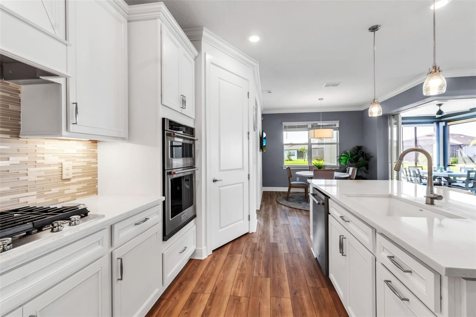 HUGE PRICE REDUCTION!!!! Upgrades Galore in this 3/3 in Parrish!! Welcome to your dream home in the premier 55+ community - Del Webb BayView! This beautifully designed Mystique model offers the upgraded 3 spacious bedrooms, 3 full bathrooms, stone facade, and refined living spaces ideal for both entertaining and everyday comfort. You’ll love the gourmet kitchen with granite countertops, modern cabinetry, and stainless-steel appliances. The main living area features an open-concept that flows seamlessly through the zero corner slider into the enclosed porch. The screened lanai with one-touch automatic "Storm Smart®" hurricane shutters is the perfect space for enjoying Florida evenings and breathtaking pond views. Designer furnishings and luxury finishes throughout make the interior feel second to none (fully furnished sale is optional and negotiable). Del Webb's BayView Community Amenities include, resort-style luxury pool with ample lounging areas, state-of-the-art Pickleball courts, tennis courts and activities for active living, and the Sailfish Restaurant – an exclusive on-site dining experience. Grounds also contain a fitness center, clubhouse, walking trails, and a calendar full of social events. This meticulously maintained home is the perfect blend of luxury, convenience, and low-maintenance living in one of Parrish’s most desirable active adult communities.