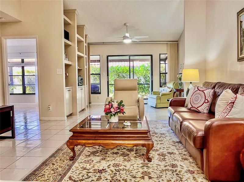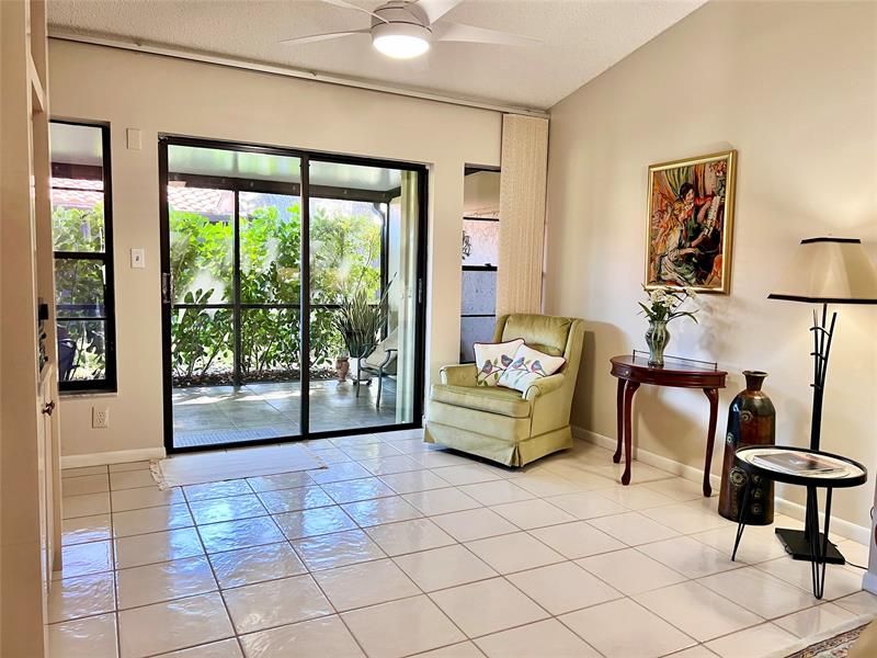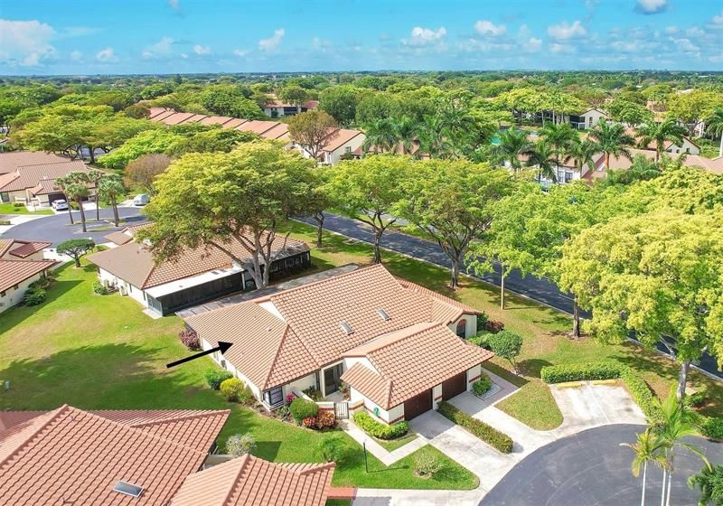 Beautiful, Bright 2-Bedroom, 2-Bathroom Villa with 1-Car Garage. Located directly across from the Clubhouse. Open Concept Living/Dining Space. Vaulted Ceilings. Screened-in Lanai adds 300 SF of Extra Space. Private Landscaped Views. Updates Throughout & Very Well Maintained. Laundry Room Inside unit. Accordion Shutters. Condo Fee includes Insurance, Building Exterior/Roof Repairs/Replacement, Cable/ Fiber-Optic Internet, Landscaping. Desirable Gated Community Set Back 1/4 mile from Military Trail. Wonderful Lakes & Trees contribute to a Serene Place to Call Home. Clubhouse Includes Olympic Sized Pool that is Temperature Controlled (Heated/Cooled), Hot Tub, Fitness Rooms, Card Rooms, Billiards, New Tennis & Pickleball Courts to be completed in December. 55+ Active Community with Much to Do!