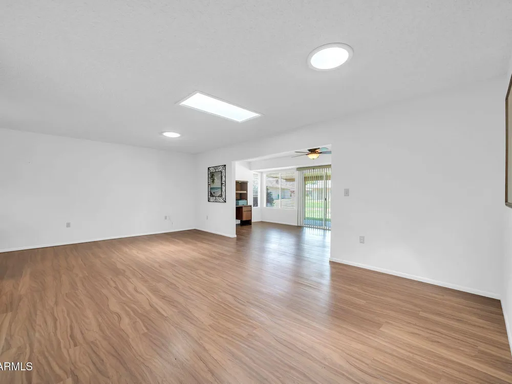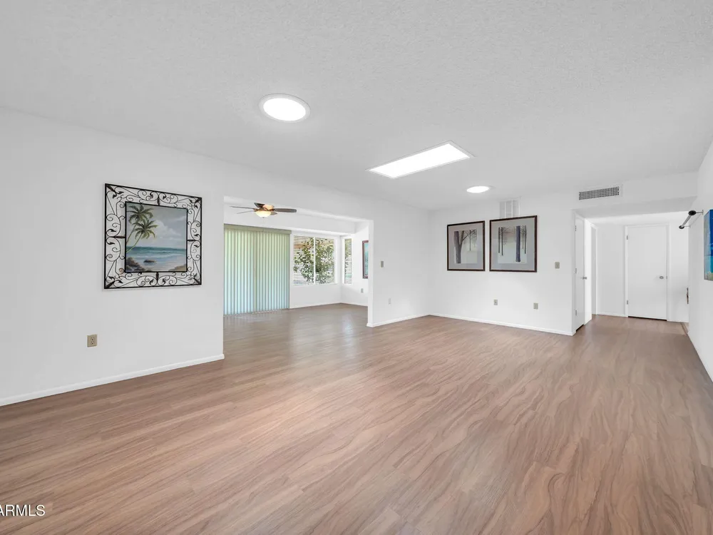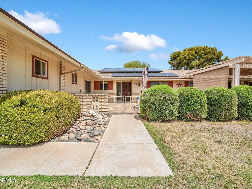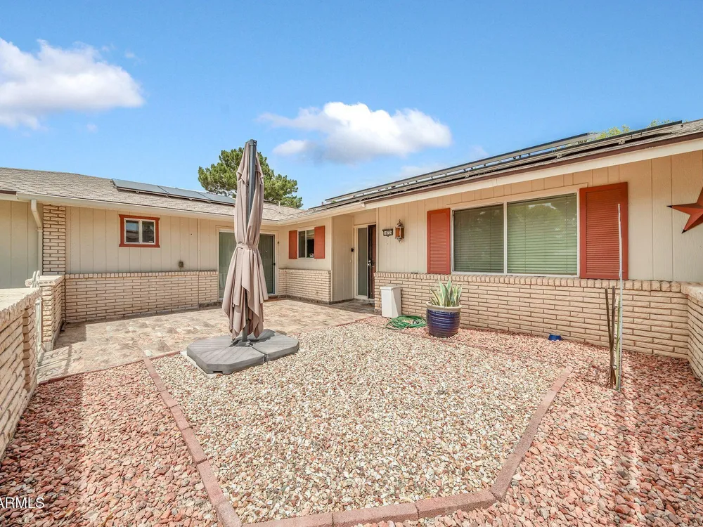 Move-In Ready Home with Paid-Off Solar Panels Step into this bright and spacious home featuring an open floor plan that is completely move-in ready. Enjoy the gorgeous wood flooring throughout, carpets in bedrooms, and new window treatments installed. The living and dining areas flow seamlessly into a beautifully finished Arizona room, complete with a new ceiling fan, perfect for relaxing or entertaining. The kitchen is warm and inviting, offering double ovens and a cozy breakfast area with its own ceiling fan. Both bathrooms were tastefully remodeled with granite countertops, new fixtures, and modern tile finishes. You'll love the natural light streaming in through skylights in the living room, creating a cheerful and welcoming atmosphere. Ceiling fans In all bedrooms, keep things comfortable, and the master bedroom boasts a walk-in closet for plenty of storage. Additional features include a spacious inside laundry room with abundant storage, a beautiful courtyard with ideal north-south exposure, and, best of all, fully paid-off solar panels that are transferable to the new buyer, offering energy savings from day one. This home has been meticulously maintained and is truly a must-see!