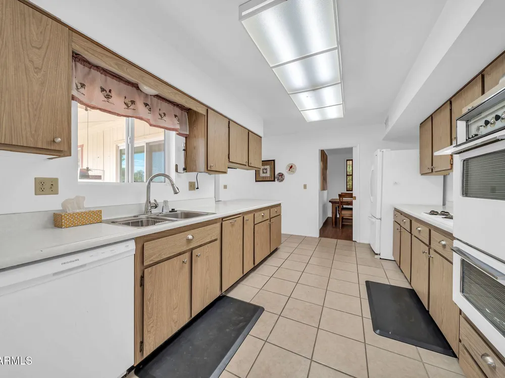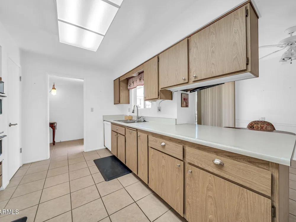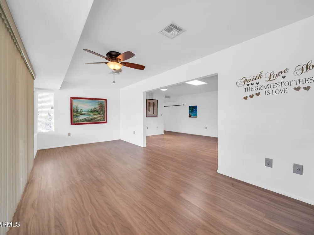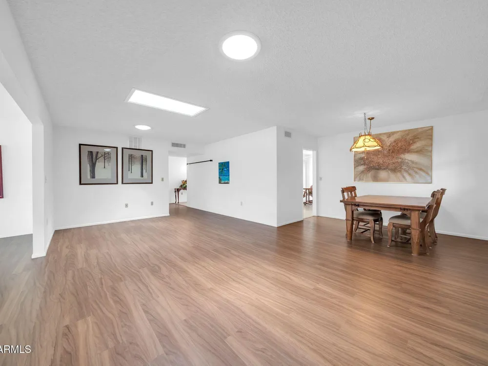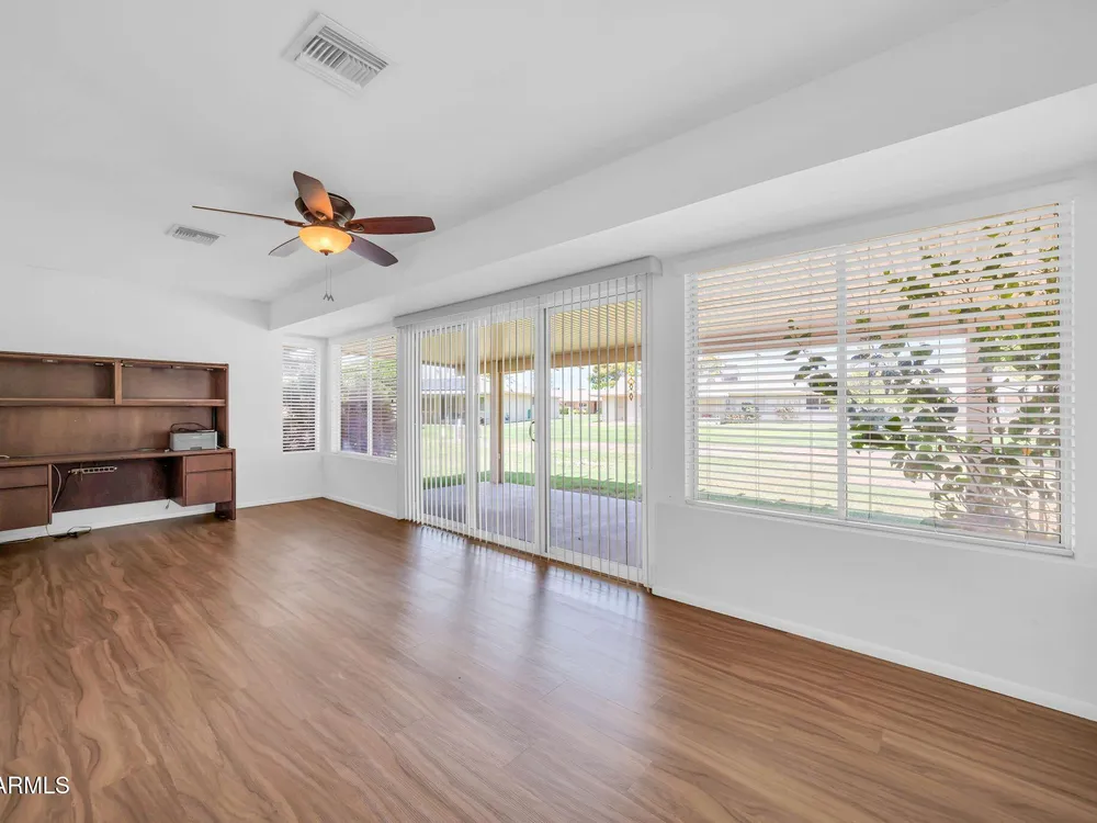 Move-In Ready Home with Paid-Off Solar Panels Step into this bright and spacious home featuring an open floor plan that is completely move-in ready. Enjoy the gorgeous wood flooring throughout, carpets in bedrooms, and new window treatments installed. The living and dining areas flow seamlessly into a beautifully finished Arizona room, complete with a new ceiling fan, perfect for relaxing or entertaining. The kitchen is warm and inviting, offering double ovens and a cozy breakfast area with its own ceiling fan. Both bathrooms were tastefully remodeled with granite countertops, new fixtures, and modern tile finishes. You'll love the natural light streaming in through skylights in the living room, creating a cheerful and welcoming atmosphere. Ceiling fans In all bedrooms, keep things comfortable, and the master bedroom boasts a walk-in closet for plenty of storage. Additional features include a spacious inside laundry room with abundant storage, a beautiful courtyard with ideal north-south exposure, and, best of all, fully paid-off solar panels that are transferable to the new buyer, offering energy savings from day one. This home has been meticulously maintained and is truly a must-see!