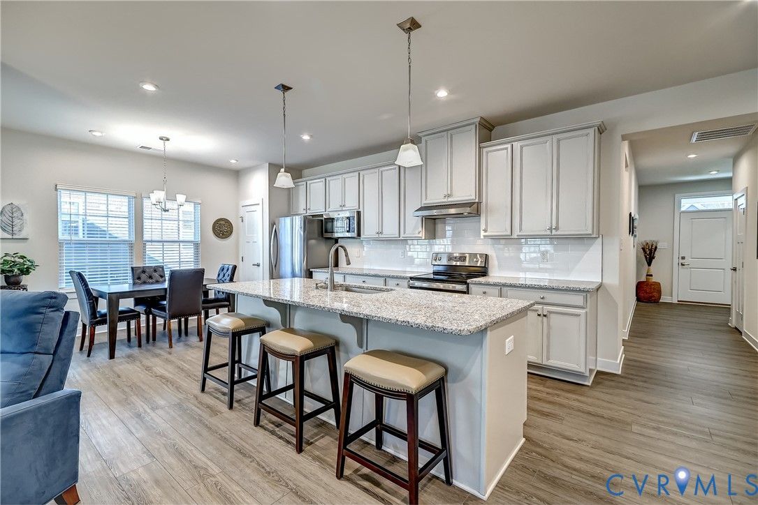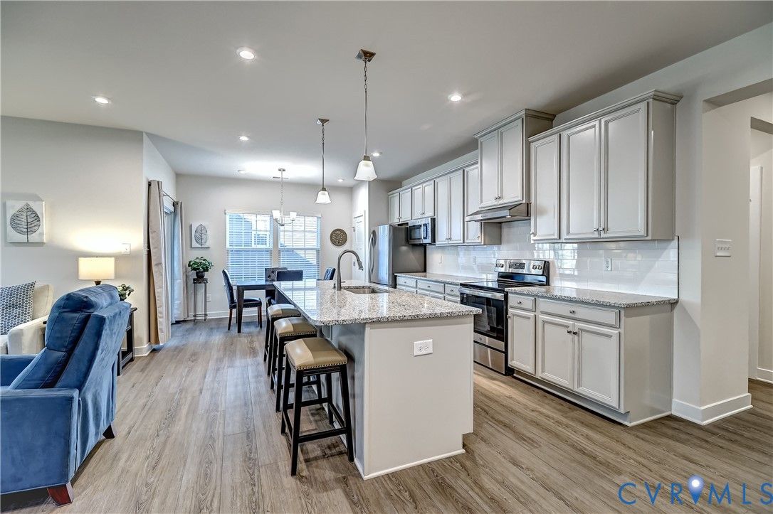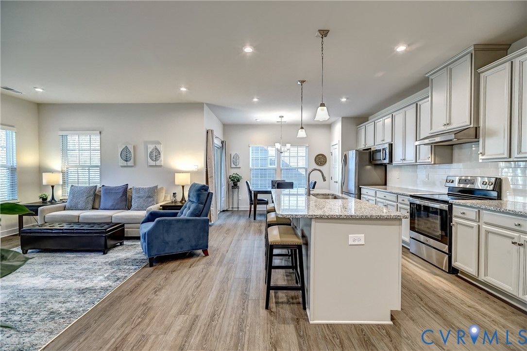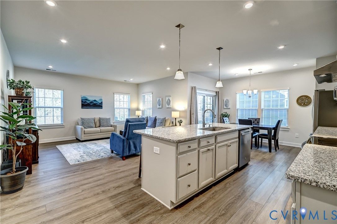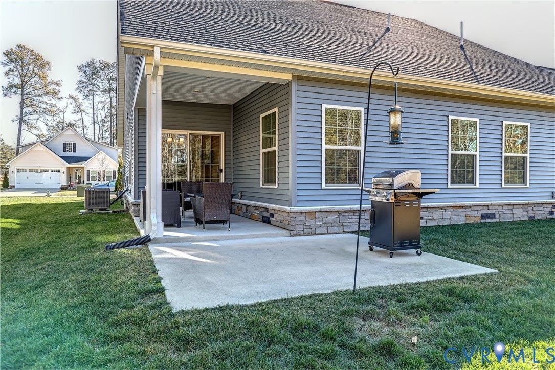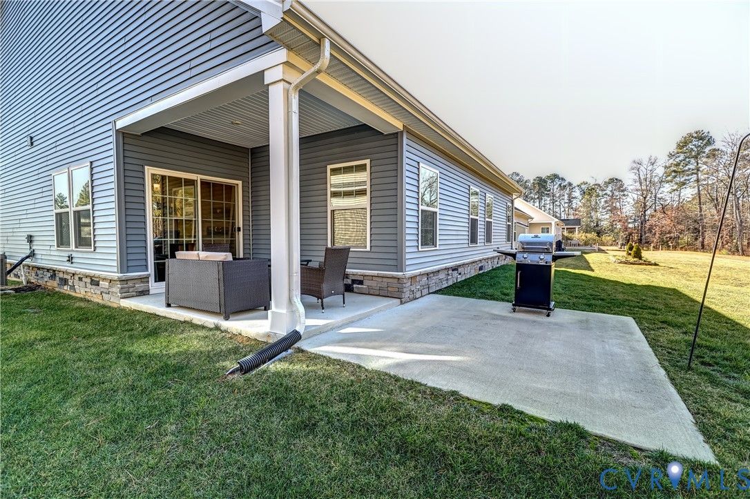 Welcome to this well appointed, maintenance free Ranch home, perfectly situated in Glen Allen's Britlyn North neighborhood. This pristinely maintained, single-level home centers around the bright & airy Family/Living Room, Kitchen and Dining spaces with a seamless open-concept design - ideal for everyday living and entertaining. The welcoming and spacious foyer leads into the generously-sized primary living spaces, anchored by the large granite kitchen island providing seating and gathering space for both the kitchen and family/living spaces. Other kitchen features include: granite countertops throughout, stainless steel appliances, flat cooktop with external venting, tile backsplash, pendant and recessed lighting. The adjoining dining area with covered porch access offers indoor/outdoor living space and functionality. The Primary Bedroom suite features an tray ceiling, crown moldings, carpeting and ceiling fan with a private en-suite bath and walk-in closet. The two additional bedroom spaces, located directly off the front foyer, offer flexibility for guests and for a home office. An oversized 2-car garage and shelved utility/laundry room offer great functionality and storage. Additionally, the rear yard of the home backs a wetland space, ensuring natural privacy and beauty. This one-owner home has been thoughtfully designed for luxurious comfort and convenience, offering the perfect blend of functionality and ease in a popular, low-maintenance community, complete with neighborhood common area's for communing with neighbors & friends.