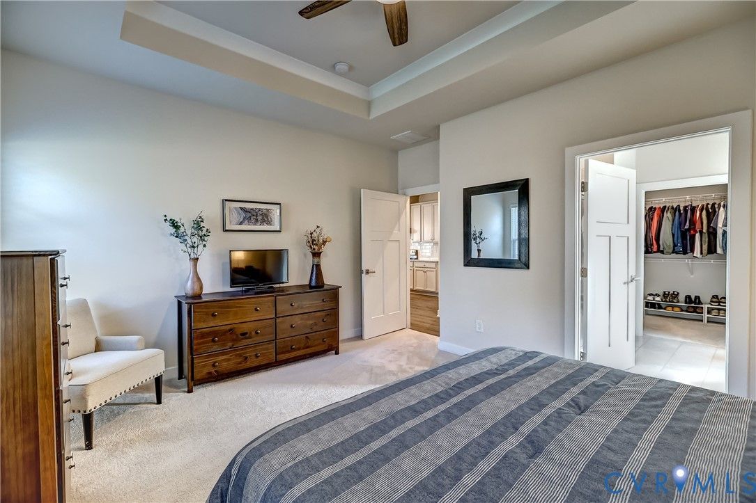 - Bedroom on Main Level, Tray Ceiling(s), Ceiling Fan(s), Dining Area, Eat-in Kitchen, Granite Counters, High Ceilings, Recessed Lighting