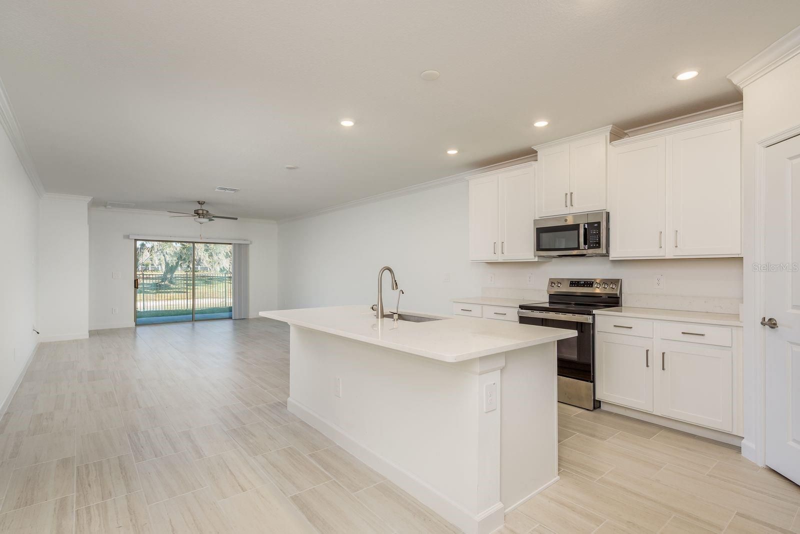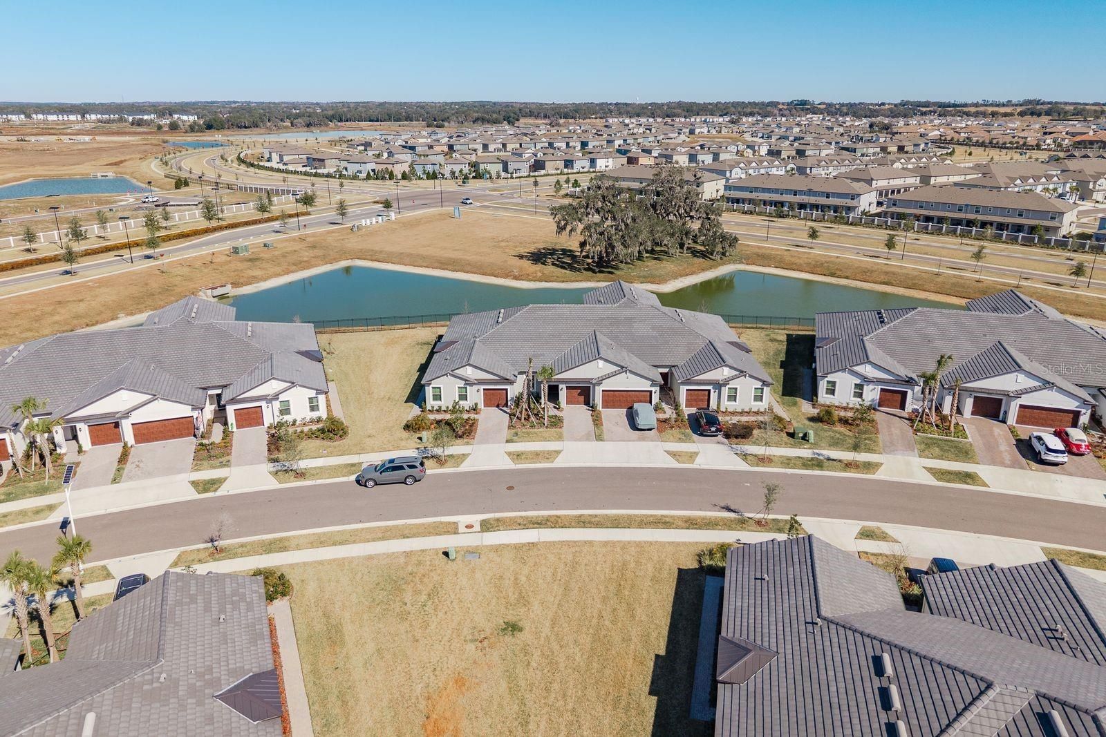 Come see this like-new 55+ villa in Medley at Mirada — move in now without the wait or added cost of new construction! Residents enjoy exclusive 55+ amenities, including a resort-style pool and clubhouse. Your HOA fees also include membership to the incredible 15-acre lagoon, featuring a swim-up bar, kayaking, paddleboarding, obstacle course, waterslides, cornhole, and year-round community events. This 2-bedroom, 2-bath home offers an open-concept layout with a desirable split floor plan. The spacious primary suite features dual vanities, a glass-enclosed shower, private water closet, and a walk-in closet. The kitchen flows seamlessly into the dining and living areas — perfect for entertaining. Step outside to your covered lanai overlooking a peaceful pond. The HOA covers exterior walls and roof, insurance for the structure, lawn maintenance, water, sewer, trash, and cable/internet — making everyday living truly low-maintenance. Conveniently located near shopping, dining, hospitals, I-275, and more, this home is ideal for full-time living or a seasonal retreat. Schedule your showing today and start enjoying resort-style living!