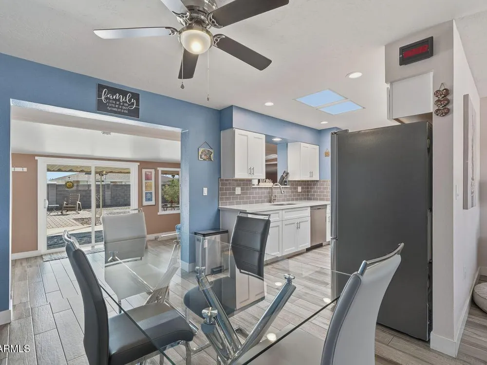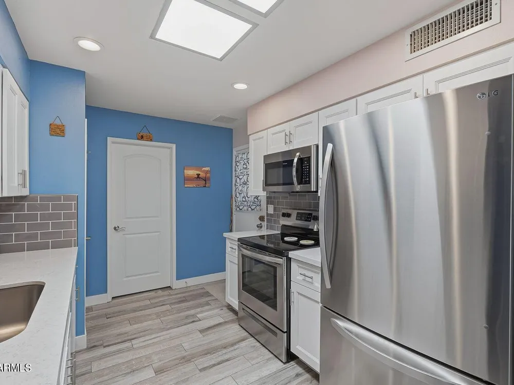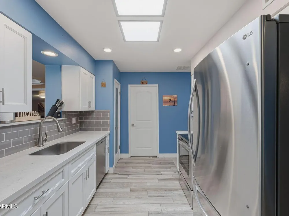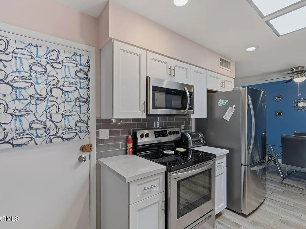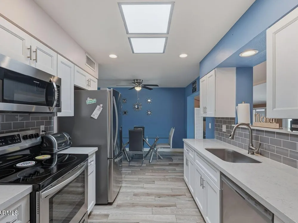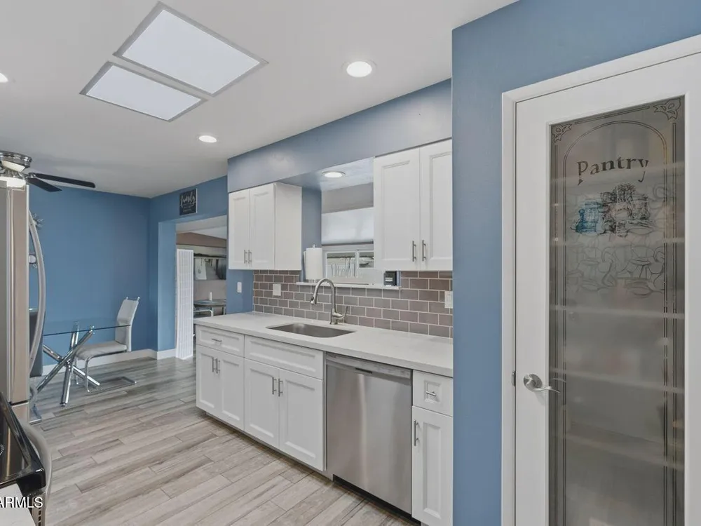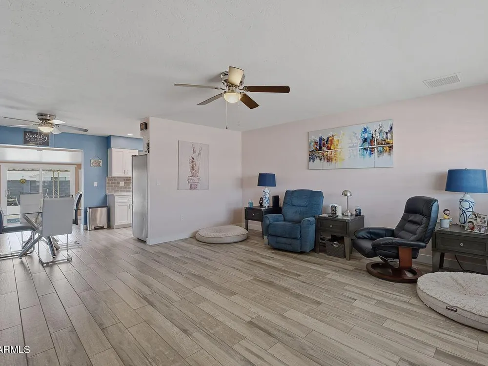 This beautiful remodeled 2-bedroom, 2-bath entertainers home offers the perfect blend of style, comfort and convenience. Enjoy peace of mind with a 2-year-old roof and 3-year-old HVAC system. Every detail has been updated- luxury flooring, 4 1/2'' baseboards, new doors/hardware, energy efficient dual-pane windows and elegant quart countertops. The kitchen boasts custom soft-close cabinets, designer backsplash ans stainless steel appliances. Bathroom feature newer vanities, fixtures and custom tiled walk in shower. With fresh paint, recessed lighting and modern ceiling fans, this move-in-ready home delivers the best of Sun City near recreation, dining and shopping.