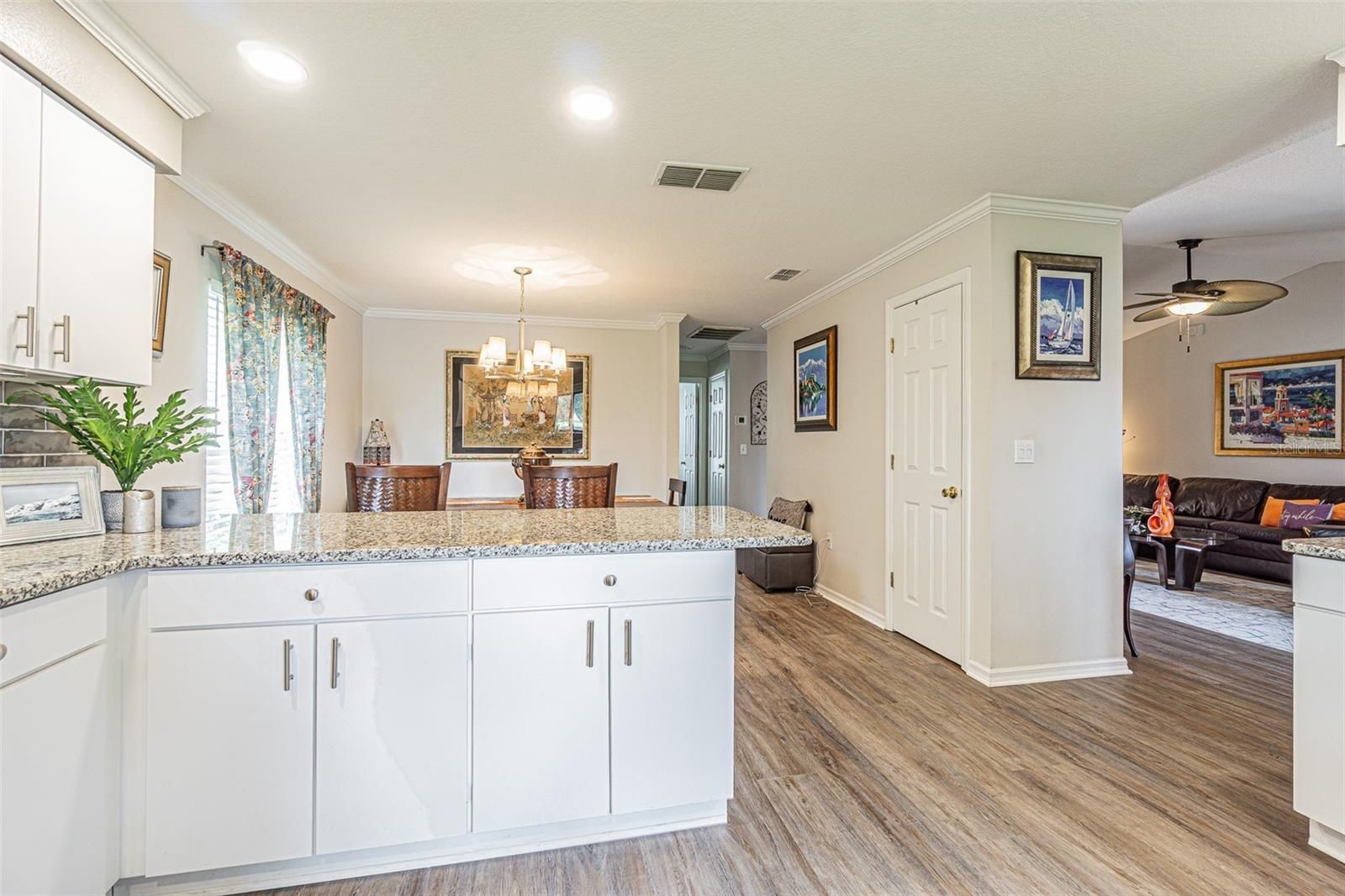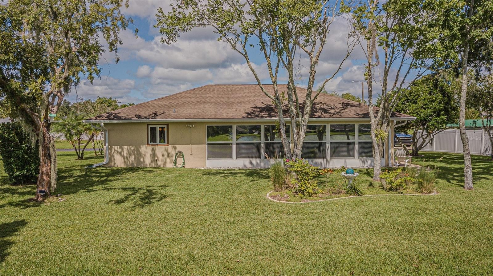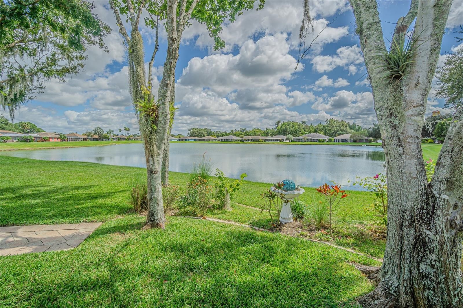 PICTURE PERFECT and perched on a large, serene POND, this charming home in Tampa Bay Golf & Country Club is waiting for you! Located on an OVERSIZED lot in one of Tampa Bay’s active, 55+ man guard GATED communities, this beautifully maintained residence offers the ideal Florida lifestyle. A newly painted exterior, 2021 AC, 2018 Roof, and STUNNING paver driveway and walkways set the tone as you arrive. Glass storm door welcomes you into a light-filled great room featuring Cathedral ceilings, Crown molding, Luxury Vinyl Plank floors, neutral paint and an Entertainment niche for TV. Triple pocketing sliding glass doors open seamlessly to a 256-square-foot, fully enclosed and tiled Florida room that spans the length of the home... perfect for entertaining or simply relaxing while enjoying panoramic pond and park-like backyard views! The Light, Bright, SPACIOUS kitchen will impress with its abundance of cabinets and GLEAMING GRANITE counter space, Gray subway Tile backsplash with accent backdrop, Stainless steel Whirlpool & Bosch appliances, breakfast bar, closet pantry, and a slider window above the sink that frames the water view. The open-concept dining area sits adjacent to the kitchen and is bathed in natural light from double windows, allowing for casual or formal meals. The owner's suite is tucked privately at the rear of the home and offers tranquil pond views through sliding doors (with honeycomb shade for privacy) to the lanai. It features a tray ceiling, walk-in closet, STUNNING floors, and an ensuite bath with dual square undermount sinks in Granite counters and a walk-in shower. The split floor plan provides a light, bright guest bedroom and full bath with Granite counters, at the front of the home, offering comfort and privacy for visitors. Additional highlights include an interior laundry room with high-efficiency washer and dryer, stunning tile floor, storage above and is just off the screened two-car garage with new Genie opener, new springs, sensors & motherboard. Paver walkway around side entrance with privacy fenced sideyard. This home is located in the village with the lowest HOA fees, which include high-speed internet and basic cable, with optional yard maintenance available. Quick closing is possible, with Golf Cart, furniture and artwork Negotiable. LIVE the RESORT Lifestyle in Tampa Bay Golf & Country Club where Residents enjoy access to two pristine golf courses (championship 18-hole and executive 9-hole), tennis and pickleball courts, two resort-style pools, hot tub, shuffleboard, bocce, cornhole, a state-of-the-art fitness center, library, card rooms, billiards, and a full-service restaurant, pub/grille, pro shop, and newly remodeled clubhouse with banquet facilities, dance floor, and live entertainment. Golf carts are welcome, with private streets and frequent community activities and travel excursions, there ALWAYS something to do in this vibrant social community... OR just Rest Easy and enjoy the SPECTACULAR water views from your enclosed Sunroom! CALL TODAY...to see why this truly IS the PLACE to BE!