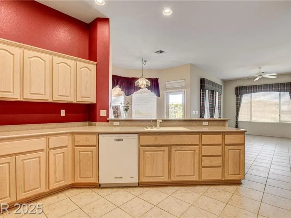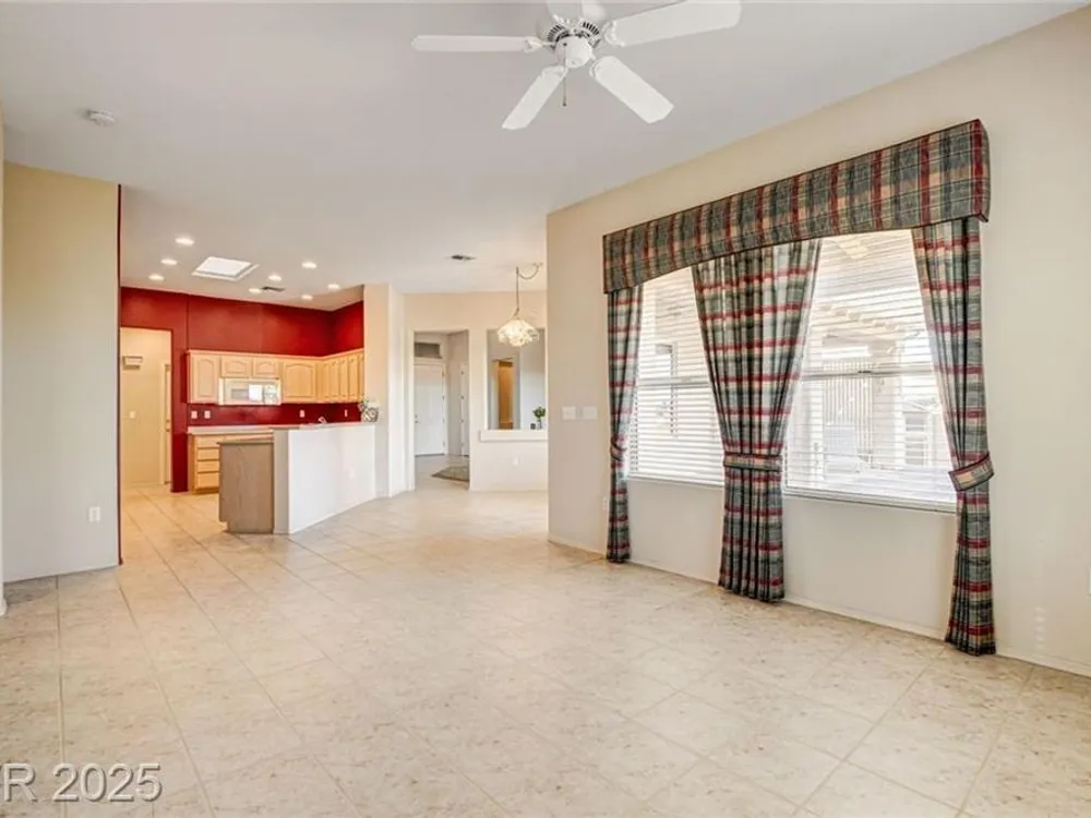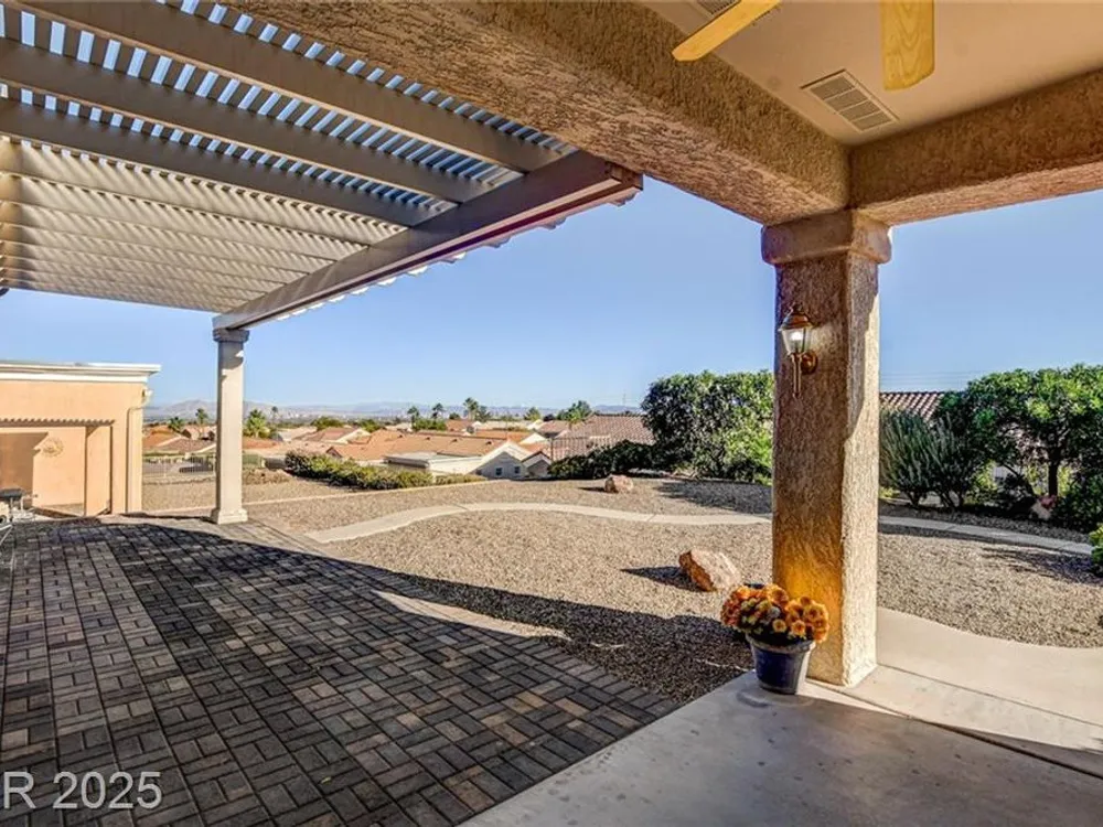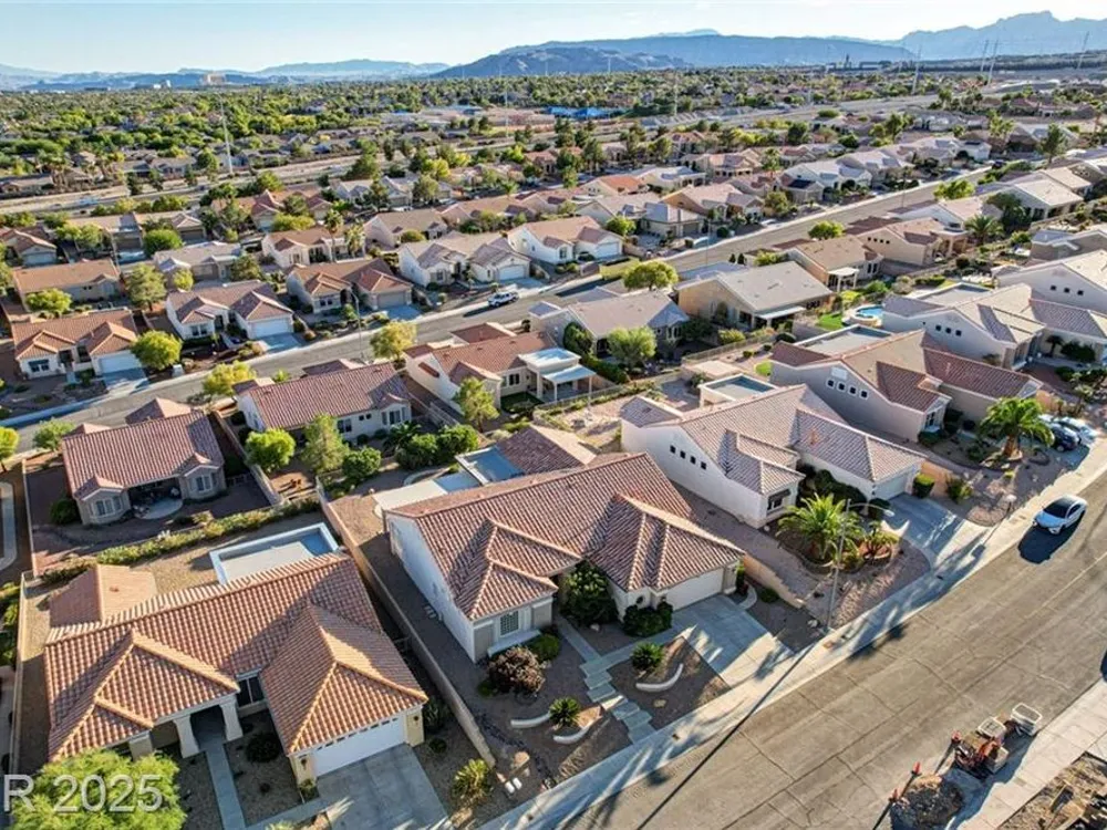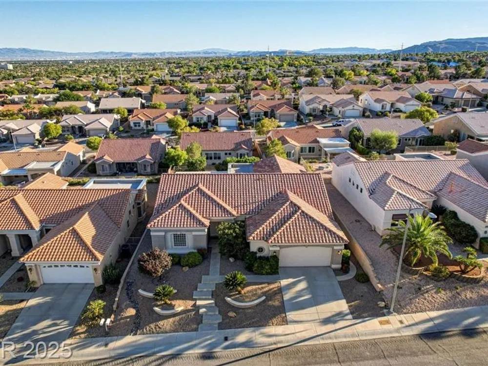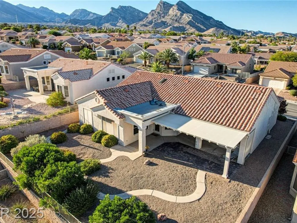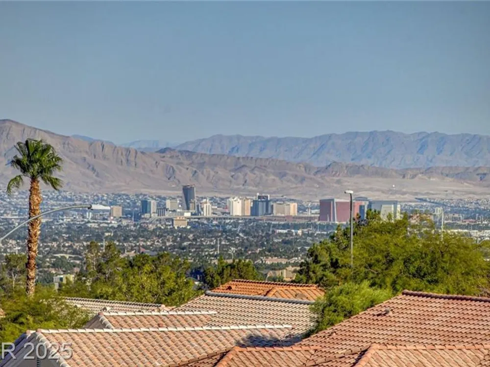 Located High in the Summerlin Hills discover this highly Desired single story home in the highly sought after Sun City Summerlin community! This 3 bedroom, 2 bathroom gem features a 2 car OVERSIZED garage with golf cart parking and built-in cabinets. Enjoy a bright kitchen with granite countertops, breakfast bar, and all included appliances, plus a formal dining room and spacious living room with high ceilings. A separate family room offers extra space to relax. Upgrades include high efficiency furnaces, 2016 HVAC units, and a water conditioner. The covered patio showcases gorgeous Strip and City views—experience breathtaking sunsets every evening! The primary suite boasts a large walk-in closet, separate tub and shower. Blinds and ceiling fans throughout. Enjoy resort style living with 4 fitness centers, 3 golf courses, pickleball, tennis, bocce, theatre, indoor and outdoor pools, spas, restaurants, endless social clubs and much more! Must see today!