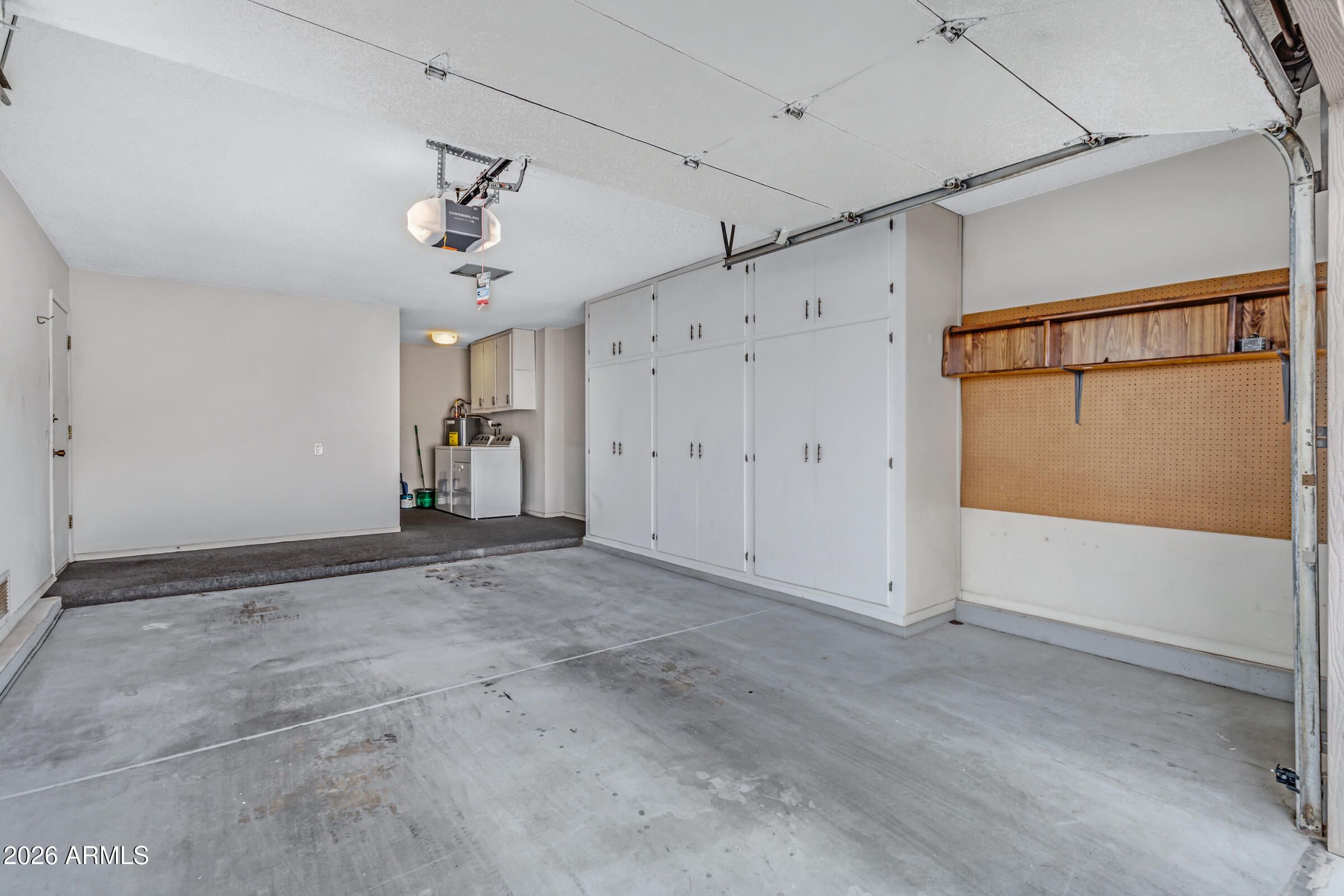 Beautiful two-bedroom home with walk in closets in both, one bathroom. End unit with an extra-large outdoor space. Additional enclosed ventilated Arizona room with access from both the master bedroom and dining room. Home has tile flooring in the main rooms, carpet in both bedrooms and Arizona room. Large 1 car garage with lots of storage cabinets. Condo Association takes care of the roof repair both repairs and replacement, water, sewer, trash pickup, exterior painting, pest control and landscaping. Pet friendly community. Newer appliances, AC, Garage Opener