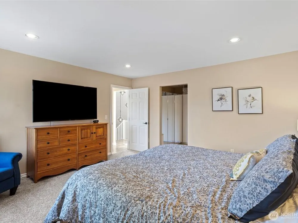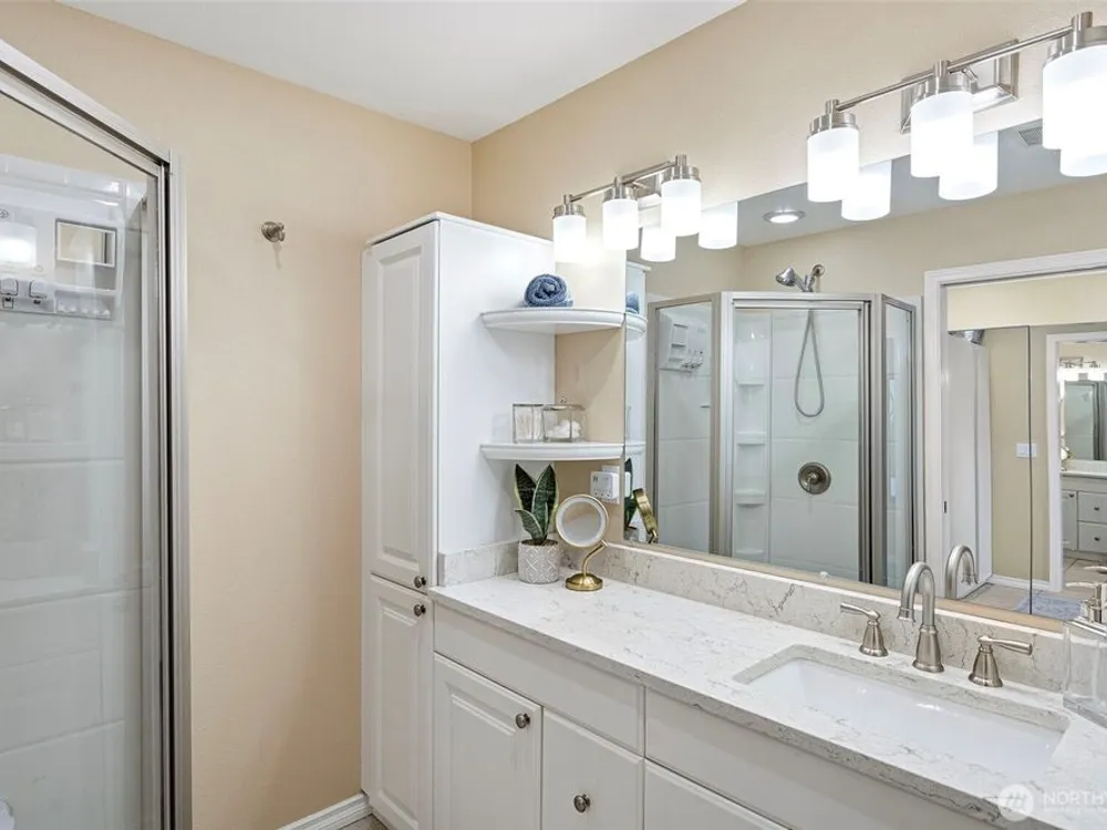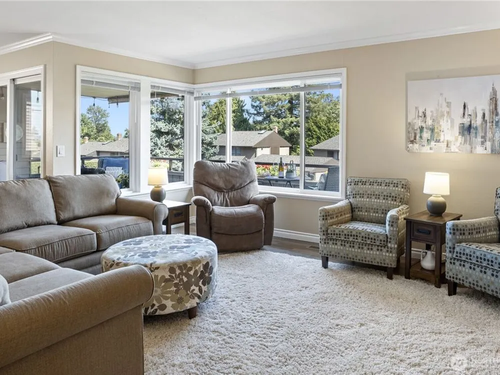 High quality, freshly renovated residence features new windows, HVAC w/ AC, electrical panel, car charging box, appliances & more! Spacious floorplan w/ expanded kitchen, 3 bedrooms upstairs & 4th room on lower level. Take in the extraordinary setting of impeccable grounds, vast open spaces, & expansive views from the large private deck. Turn the key to your next life chapter & begin enjoying the lifestyle & amenities within the exclusive Glen Acres gated community! HOAs include country club membership w/ full golf benefits. You'll love the convenient restaurant w/ lounge & resort-like activities at golf course, pool, pickleball courts & fitness center! Dues also incl. W/S/G & gas! Near Seattle & airport. 55+ Community w/ possible waiver.