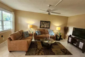 Charming 2 bedroom, 1.5 bathroom turn key/fully furnished condo with serene garden views. This bright and airy residence boasts an expansive floor plan, perfect for relaxing and entertaining. Enjoy picturesque sunrises and tranquil evenings from the comfort of your own patio. . Welcome to Century Village 24/7 gated, active 55+ Resort style living community. Offers Clubhouse, tennis, pickleball, billiard, bus service, Mini Golf, exercise facility. Located Minutes to Deerfield Beach, restaurants & shopping. Perfect winder retreat or your new Florida home.