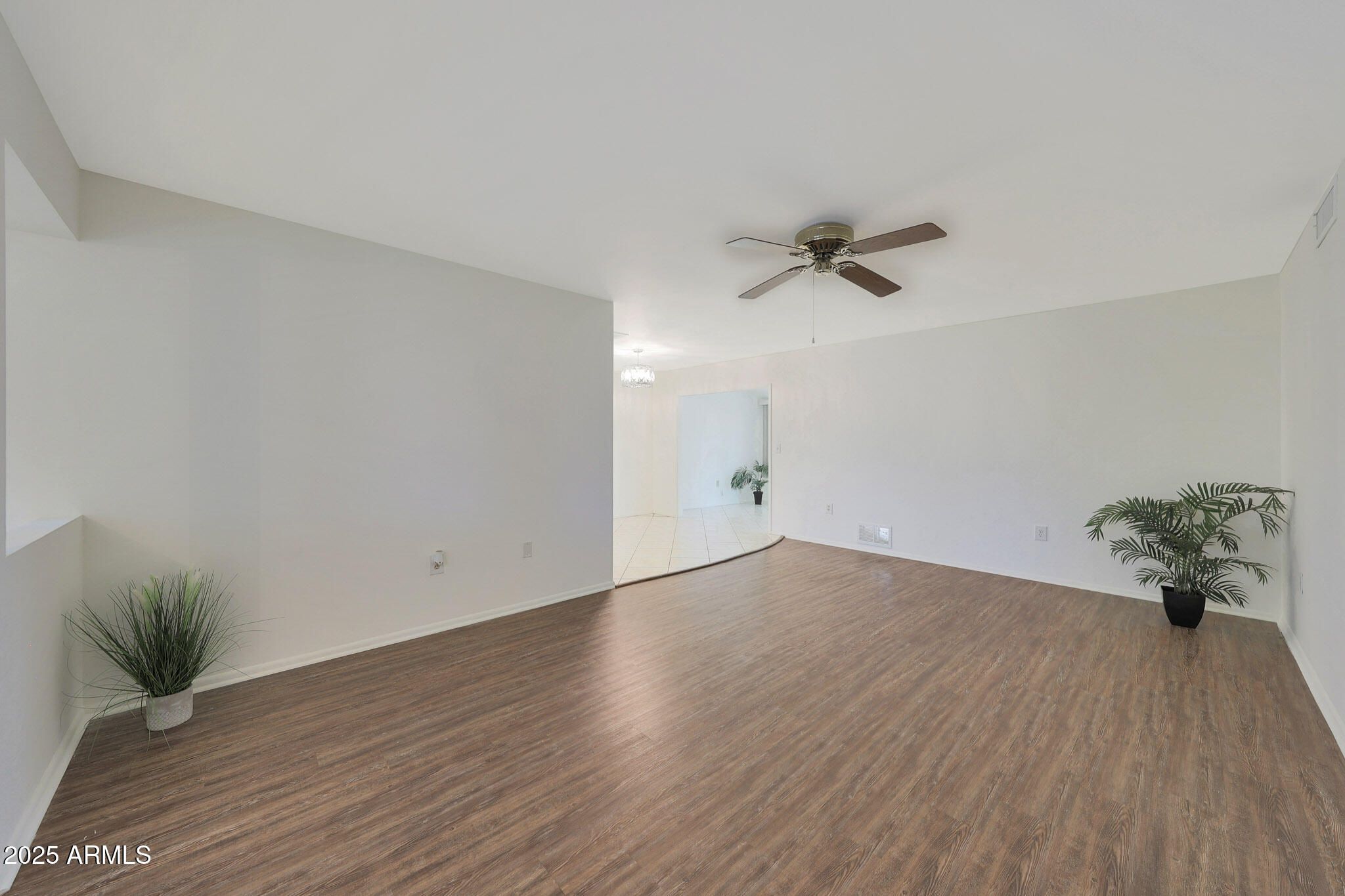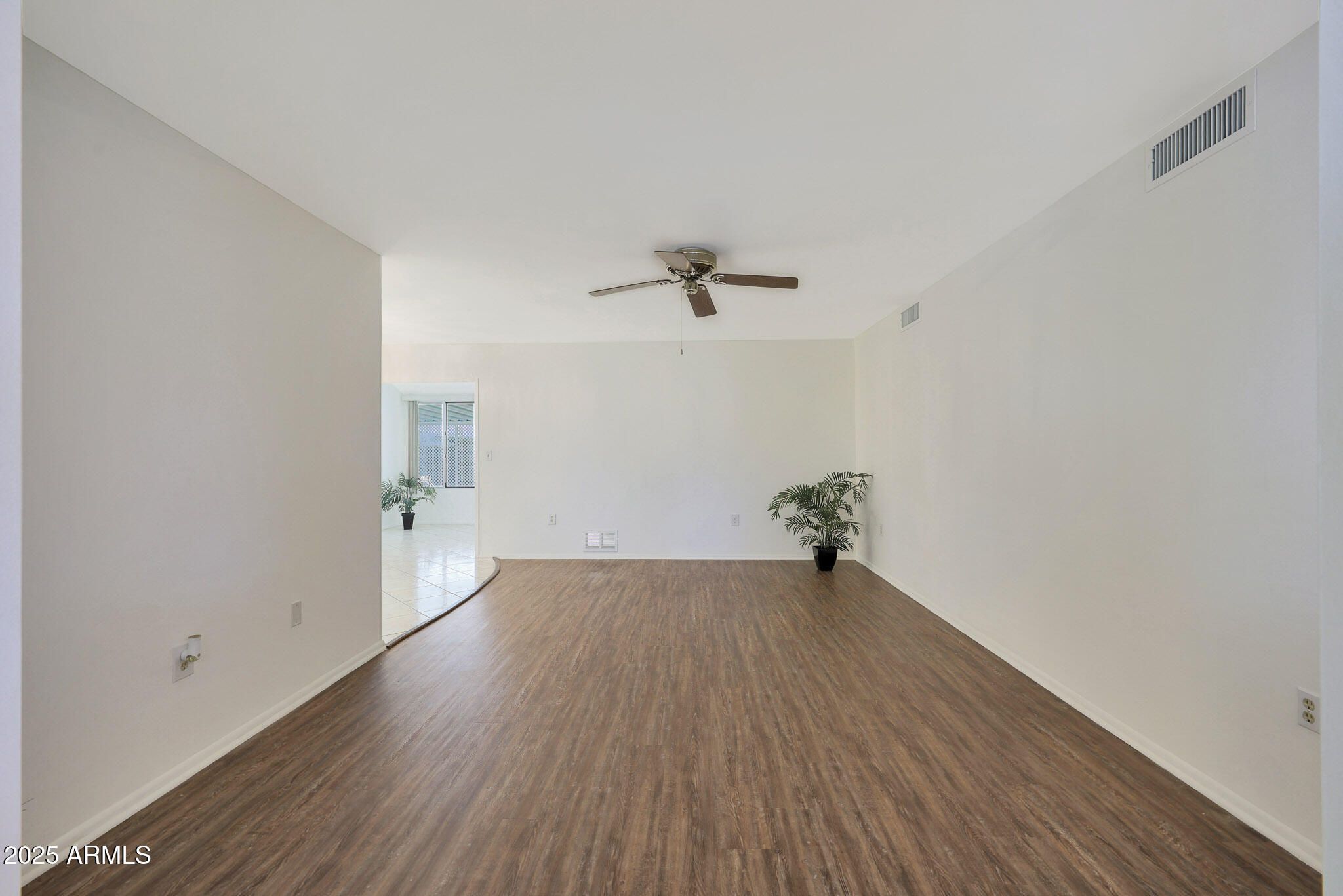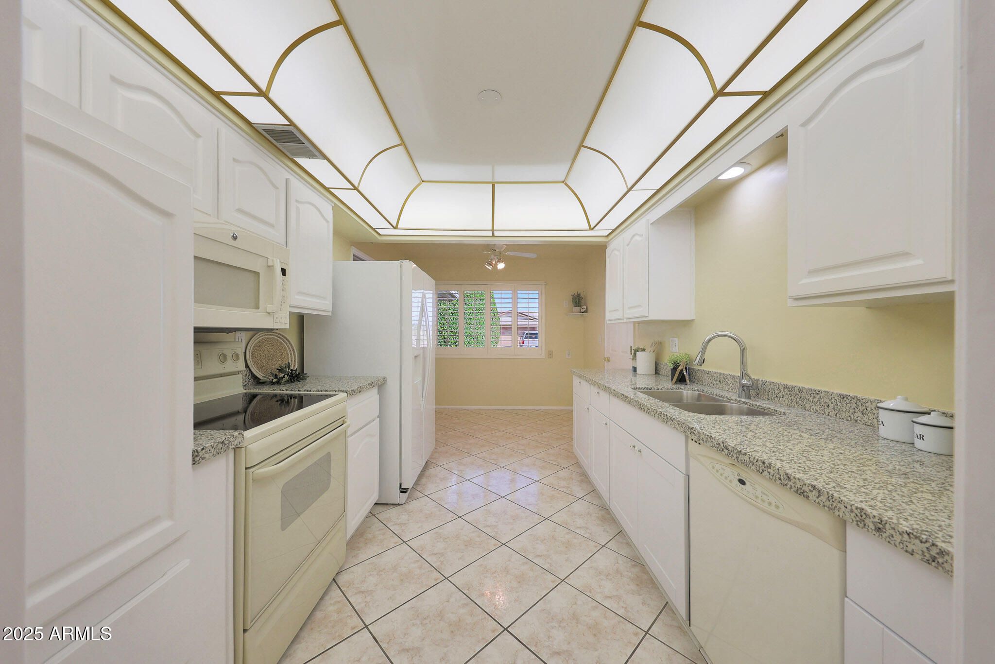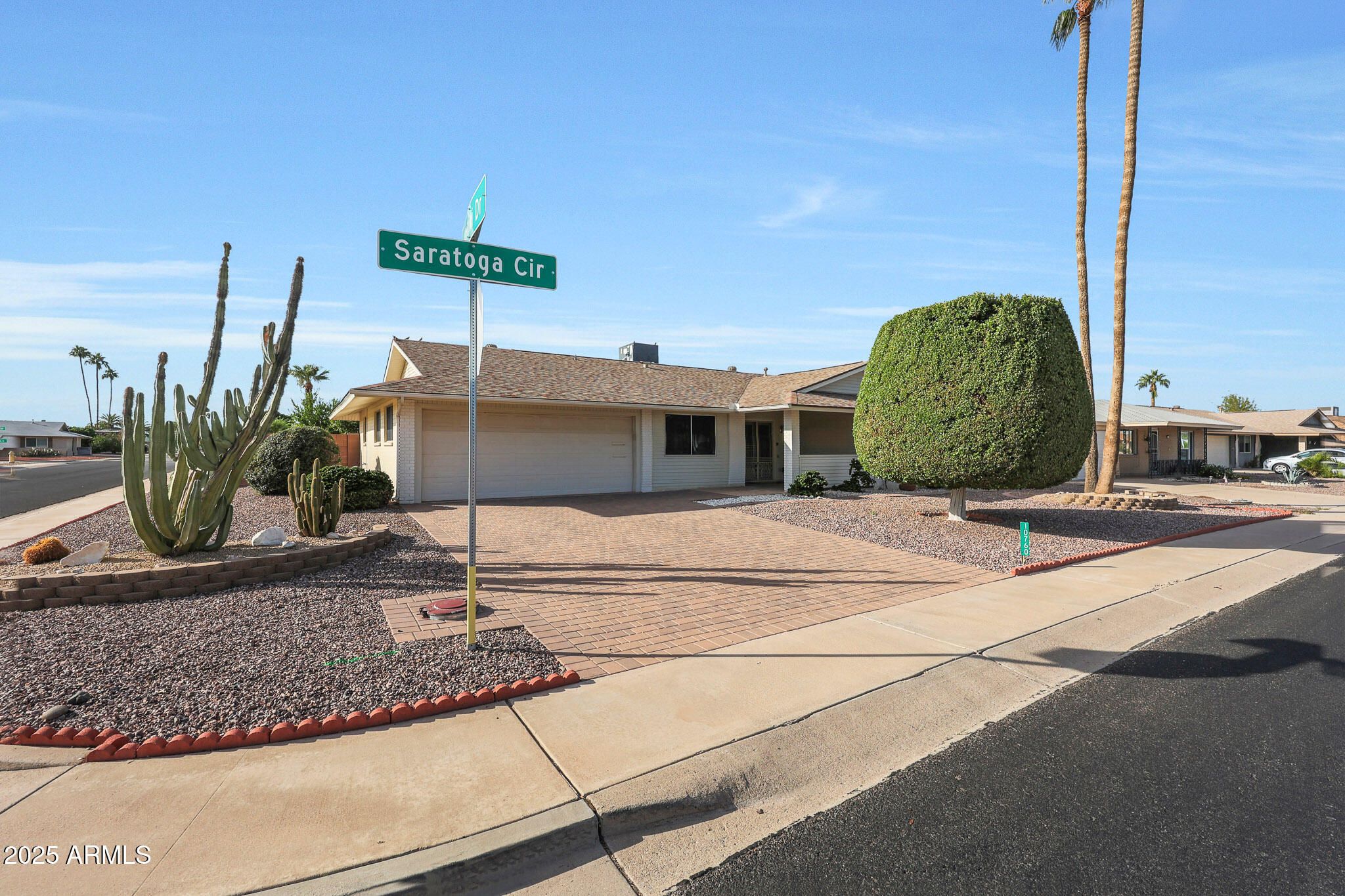 Beautifully Updated Corner Lot Home! This spacious home offers timeless charm and modern updates! The bright white kitchen features granite countertops, a pantry, and an inviting eat-in area, perfect for casual dining. Enjoy multiple living spaces with a separate family room, living room, and formal dining area, ideal for entertaining or relaxing. You'll love the thoughtful detail: ceiling fans throughout, shutters and blinds, tile and laminate flooring, and a freshly painted interior and exterior. The open front entry with elegant double glass doors sets the tone for what's inside. Recent upgrades provide peace of mind, including a new roof (2025), new AC (2025), and updated piping under the home (2023), and updated primary bath. Outside, the covered back patio overlooks a private... fenced in block wall backyard filled with mature citrus trees tangerine, grapefruit, and lemon. Additional highlights include a 2-car garage with an extra storage room and built-in cabinets, plus washer, dryer, and refrigerator included. This corner lot gem combines comfort, convenience, and quality , ready for you to call home! Check out suncityaz.org for all of the recreational activities that Sun City has to offer! Enjoy your everyday living in Sun City!