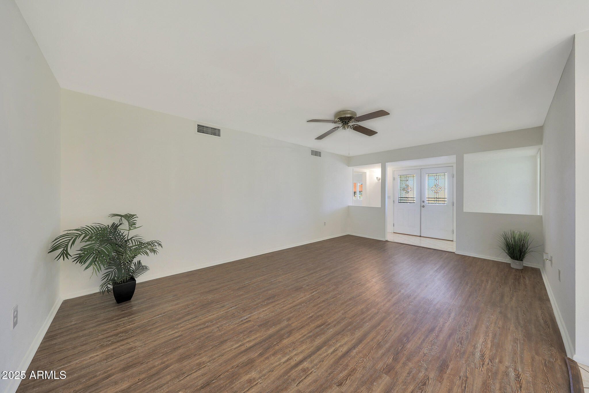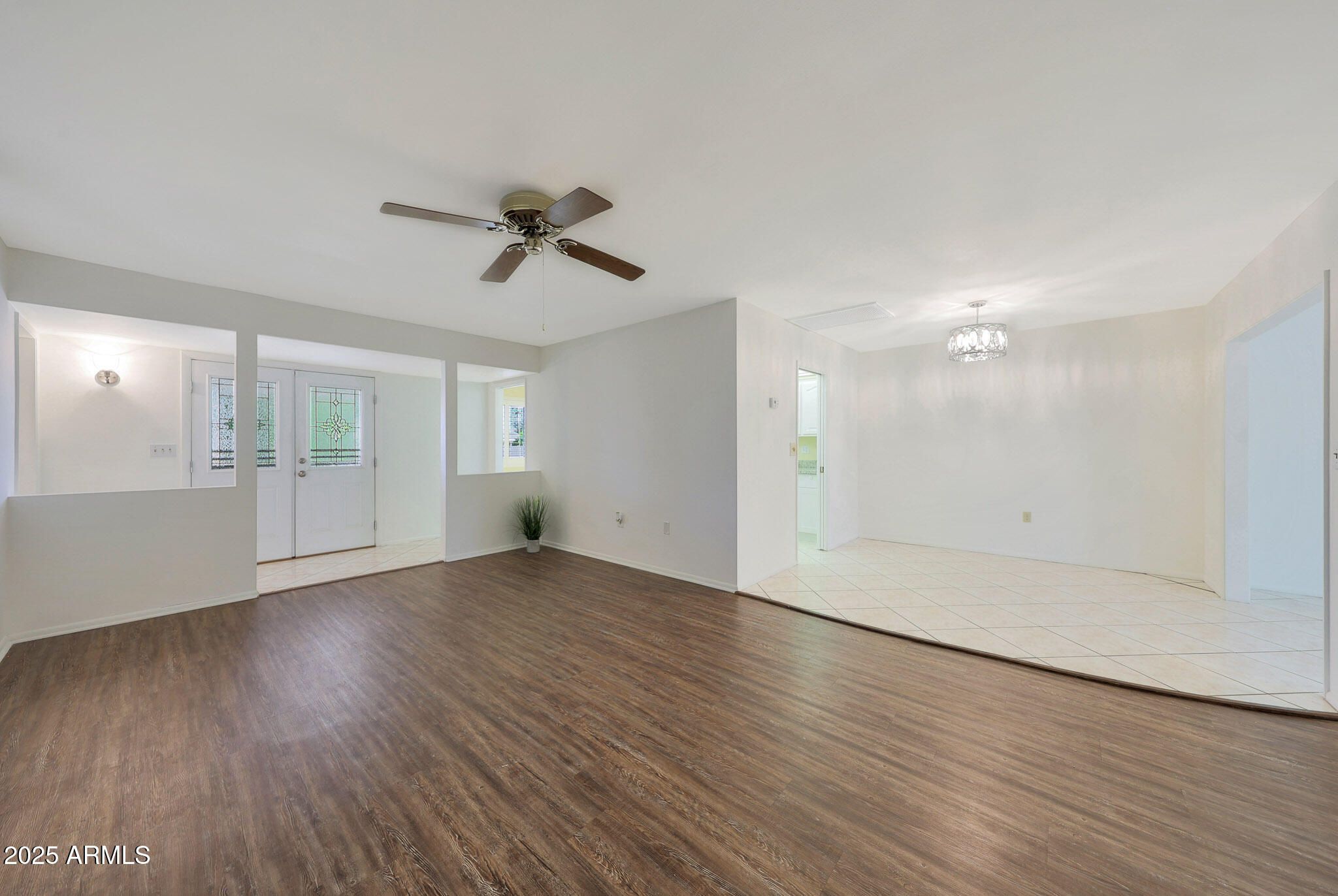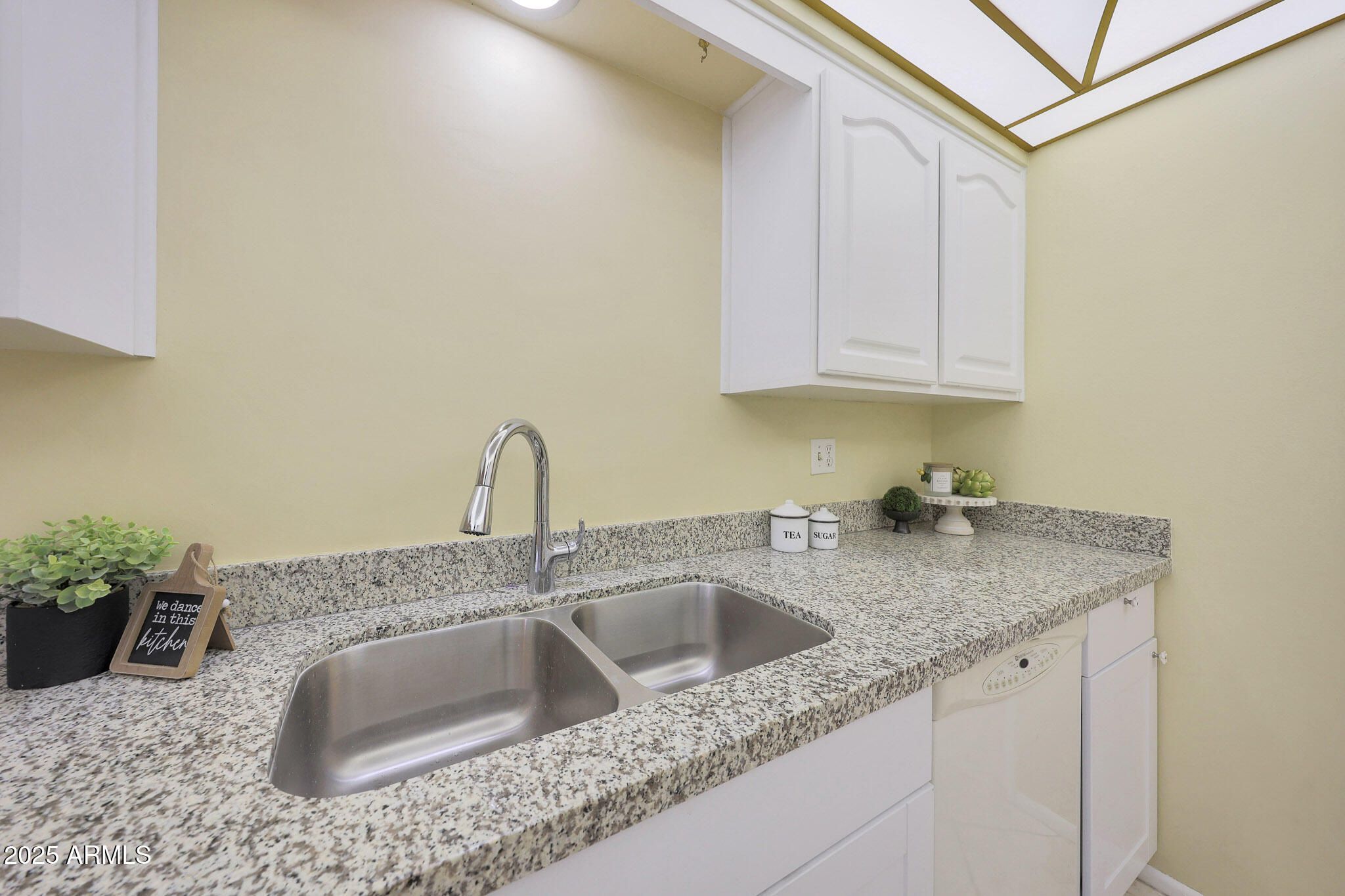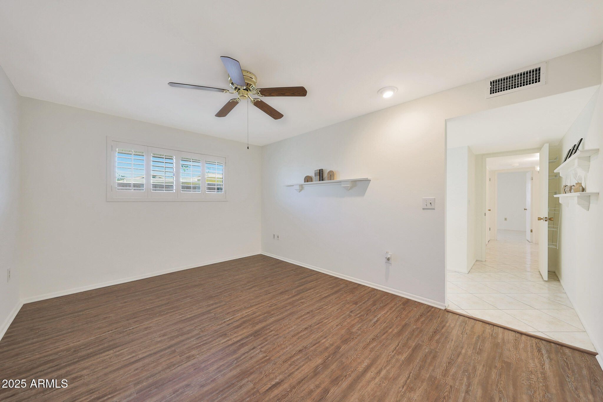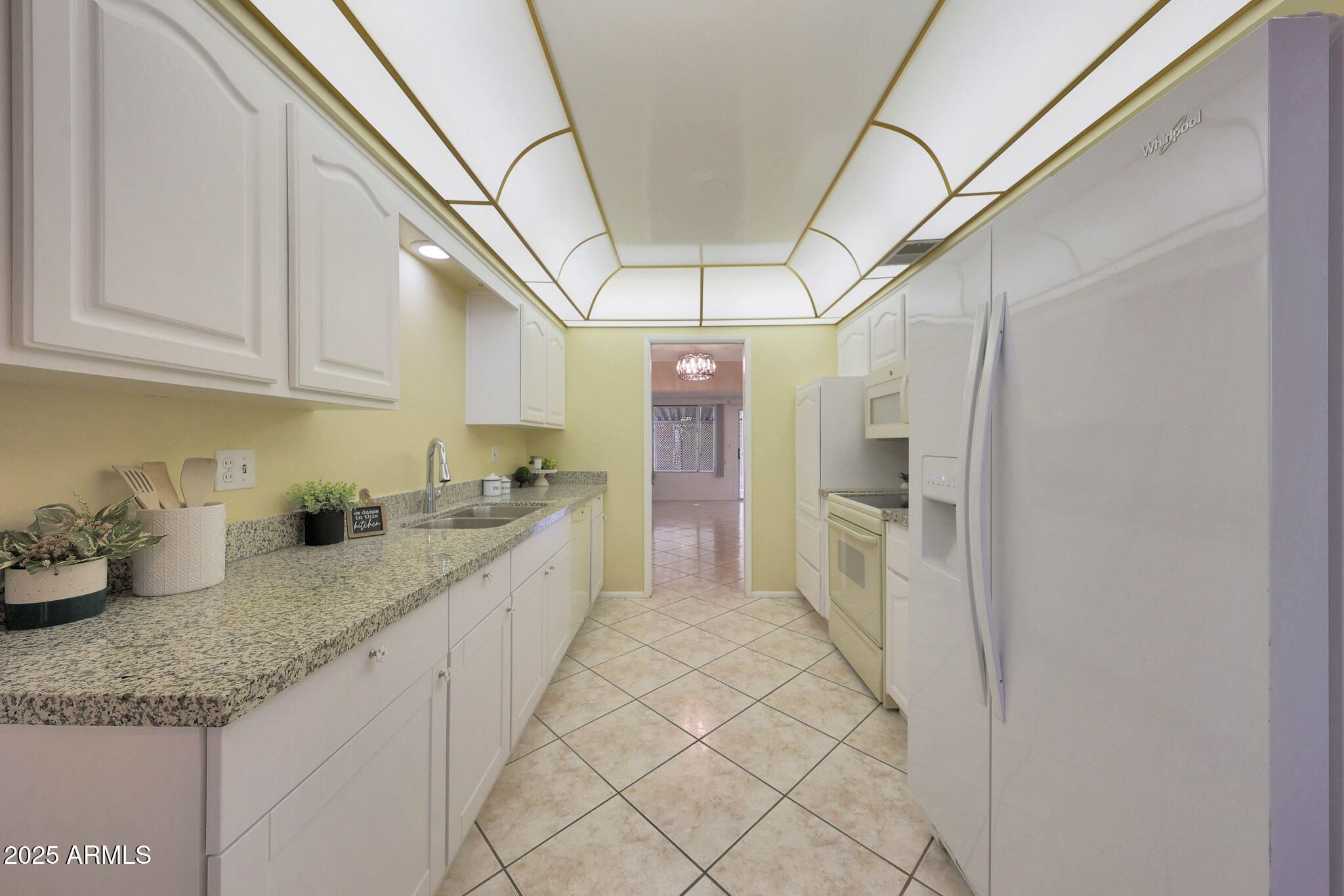 Beautifully Updated Corner Lot Home! This spacious home offers timeless charm and modern updates! The bright white kitchen features granite countertops, a pantry, and an inviting eat-in area, perfect for casual dining. Enjoy multiple living spaces with a separate family room, living room, and formal dining area, ideal for entertaining or relaxing. You'll love the thoughtful detail: ceiling fans throughout, shutters and blinds, tile and laminate flooring, and a freshly painted interior and exterior. The open front entry with elegant double glass doors sets the tone for what's inside. Recent upgrades provide peace of mind, including a new roof (2025), new AC (2025), and updated piping under the home (2023), and updated primary bath. Outside, the covered back patio overlooks a private... fenced in block wall backyard filled with mature citrus trees tangerine, grapefruit, and lemon. Additional highlights include a 2-car garage with an extra storage room and built-in cabinets, plus washer, dryer, and refrigerator included. This corner lot gem combines comfort, convenience, and quality , ready for you to call home! Check out suncityaz.org for all of the recreational activities that Sun City has to offer! Enjoy your everyday living in Sun City!