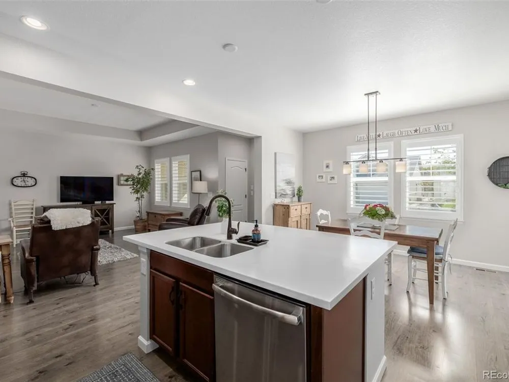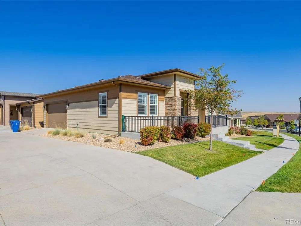 Come and explore this stunning 2-bedroom gem located in the highly sought-after 55+ community of Skyestone! From the moment you arrive, the charming curb appeal will catch your eye with its stone-accented facade, manicured lawn, and convenient side-entry garage. Step inside, and you'll immediately feel at home with the inviting interior that boasts wood-look floors and plantation shutters. The living room offers a cozy yet spacious atmosphere, perfect for relaxing or entertaining guests. The kitchen is a dream come true for any home chef! Featuring sleek stainless steel appliances, solid surface counters, and a convenient pantry for extra storage. The subway tile backsplash adds a modern touch, while the rich, chocolate-stained cabinets and center island with a breakfast bar create the perfect space for casual dining or social gatherings. Retreat to the main suite complete with a spacious walk-in closet, a sitting area to unwind, and a private bathroom offering dual sinks and a walk-in shower. The split bedroom layout ensures privacy for guests, with the second bedroom and bathroom thoughtfully situated. Enjoy your morning coffee or evening sunsets on the charming front porch, offering a tranquil space to relax and enjoy the community's peaceful surroundings. Skyestone offers fantastic amenities, including a well-appointed clubhouse, a resort-style pool, a refreshing spa, a state-of-the-art fitness center, and more, designed to complement an active and social lifestyle. Don't miss the opportunity to make this home yours. It won't disappoint!